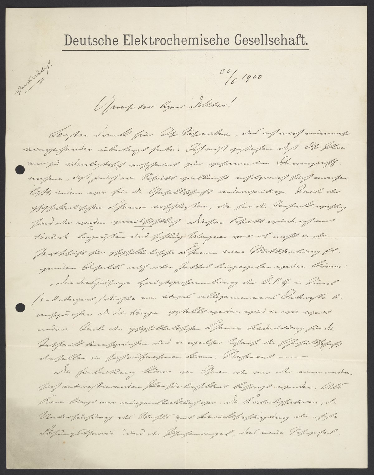 Letter from Jacobus H. van 't Hoff to Georg Bredig, June 1900