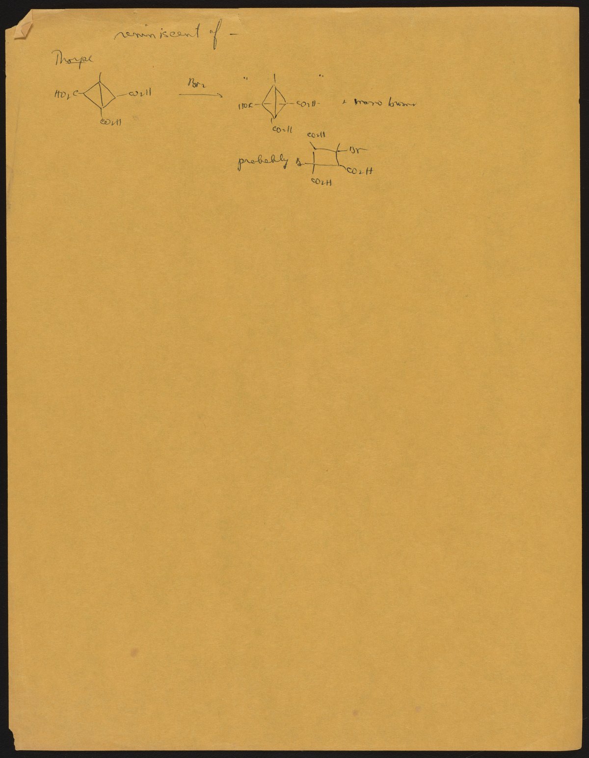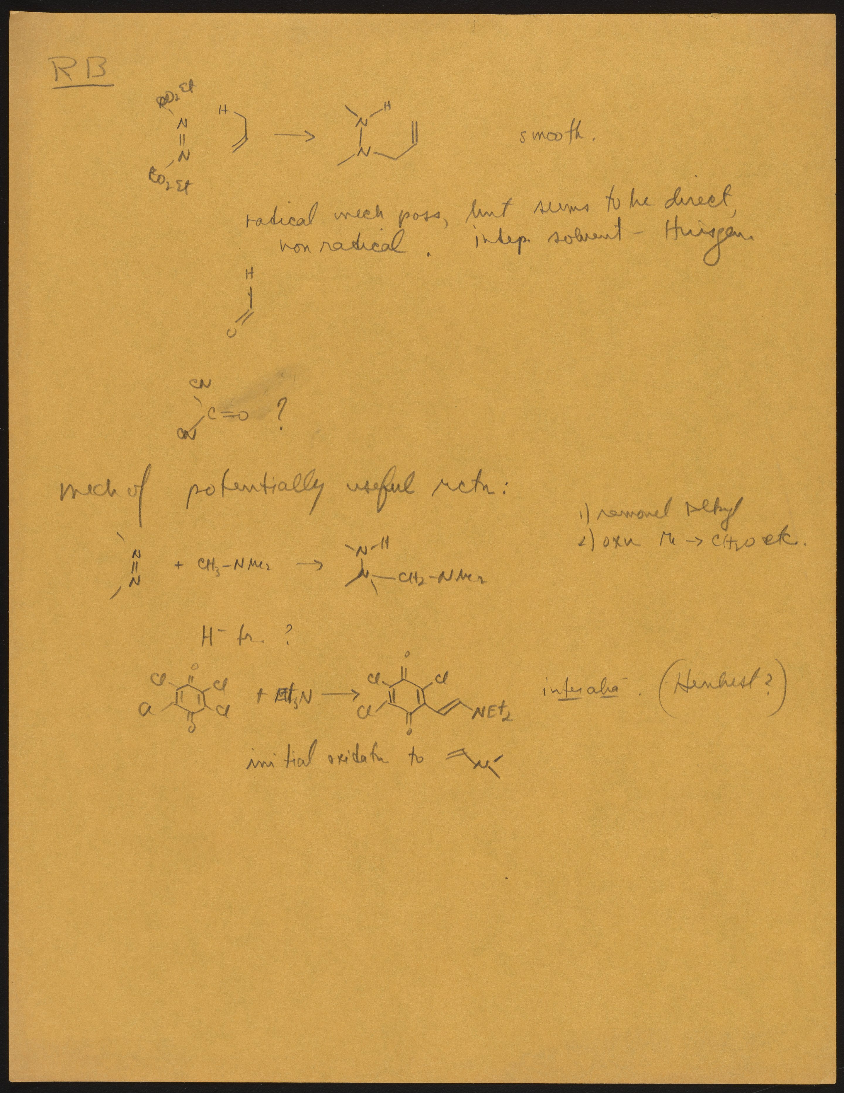 Kohler, Robert E. “Miscellaneous Pages from R. B. (Robert Burns) Woodward Seminars,” circa 1959–1966. Robert E. Kohler Papers, Folder 2. Science History Institute. Philadelphia. https://digital.sciencehistory.org/works/gt54kn932.