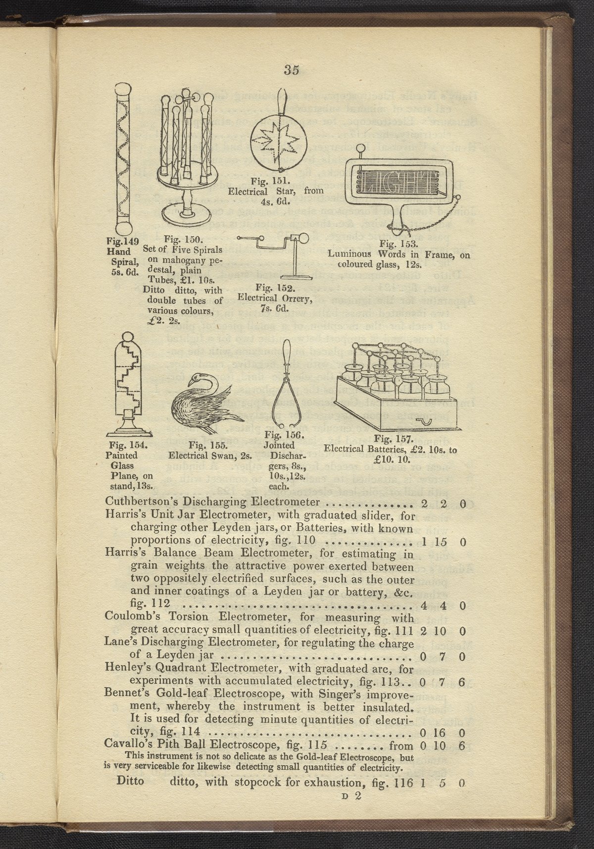 Palmer, Edward. “Figures 149-157. Plate Electrical Machines.” In Palmer's New Catalogue, with Three Hundred Engravings of Apparatus, Illustrative of Chemistry, Pneumatics, Frictional and Voltaic Electricity, Electro Magnetism, Optics, &c. London, England: William Gilbert, 1840. https://digital.sciencehistory.org/works/gyp7xpc.