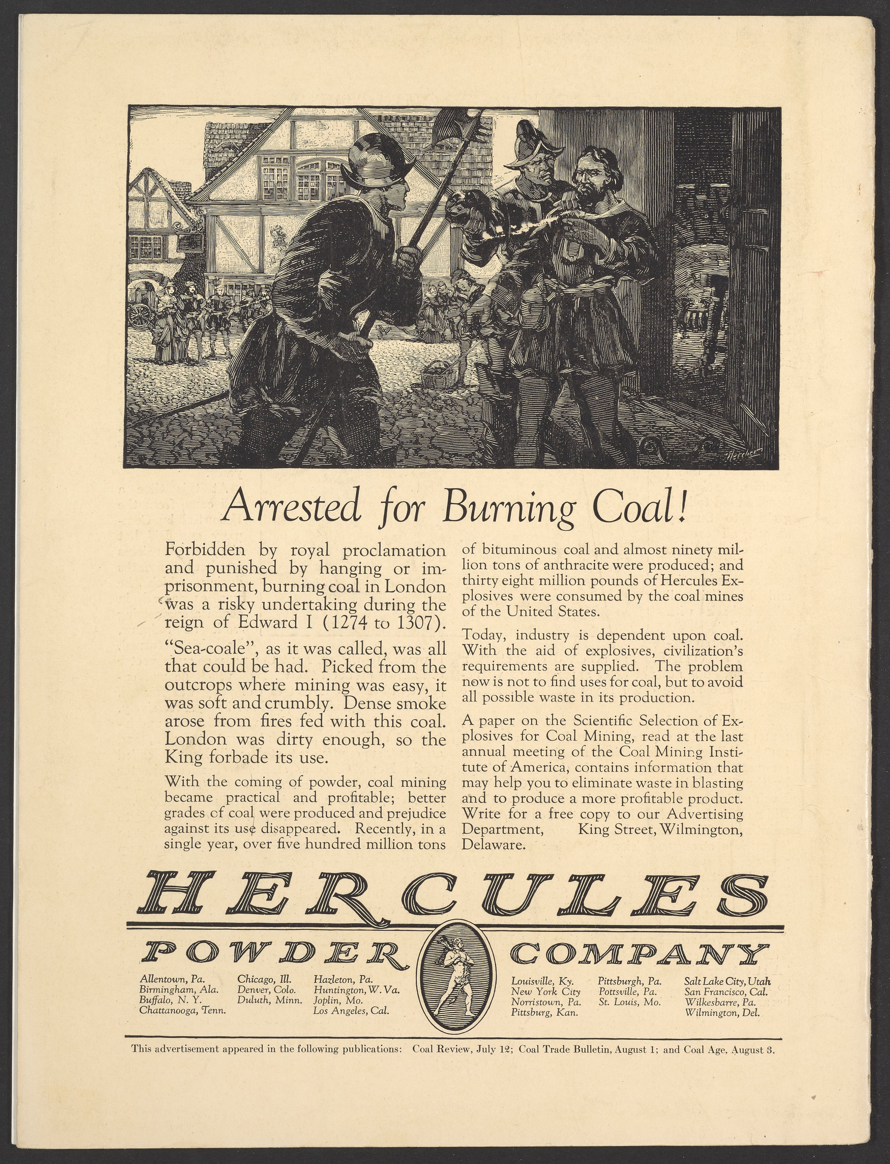 Formed in 1912 as part of an anti-trust settlement with DuPont, the Hercules Powder Company (later Hercules Inc.) initially specialized in the manufacture of explosives and smokeless powders and subsequently diversified its business to encompass a variety of industrial products, including pine and paper chemicals, synthetics, pigments, polymers, and cellulose.