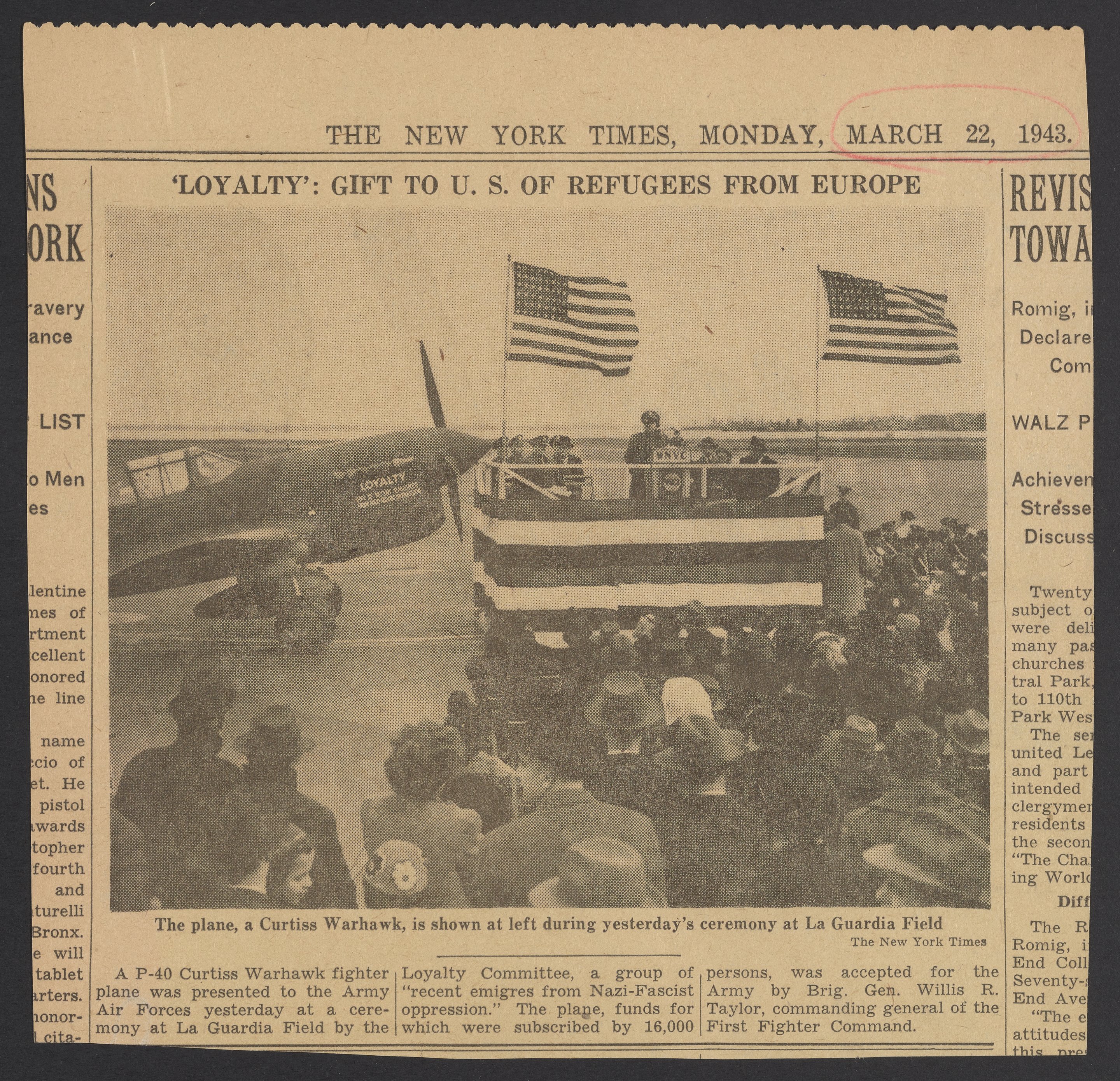 Loyalty: Gift to U.S. of Refugees from Europe