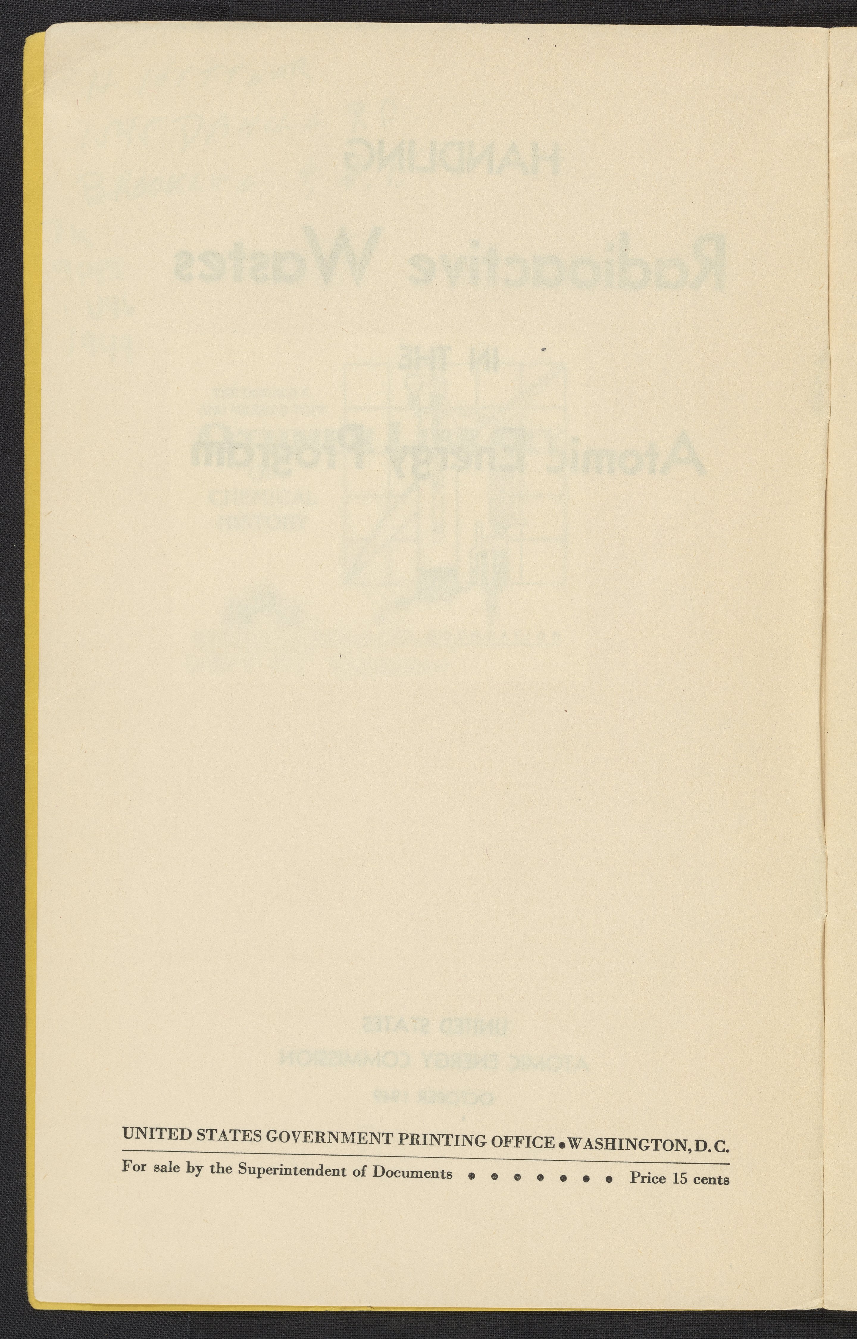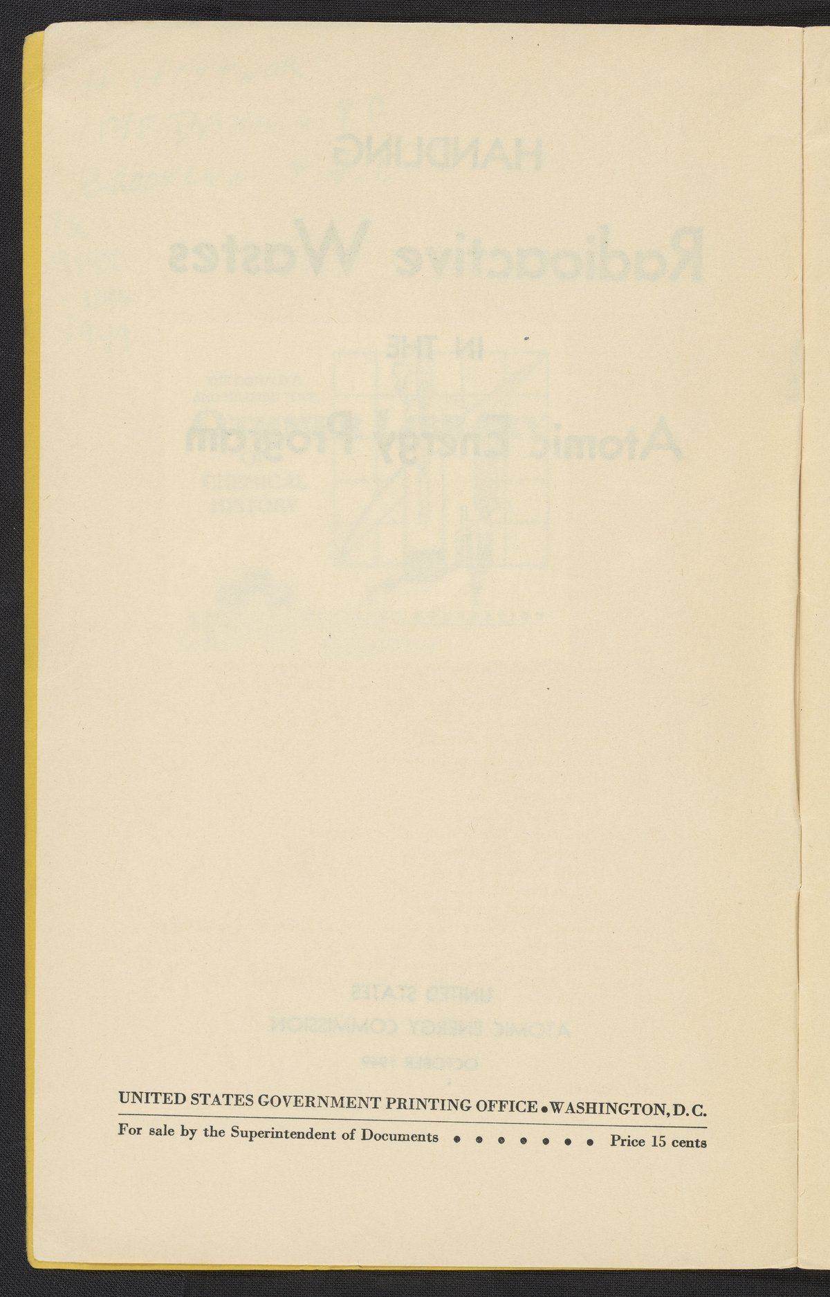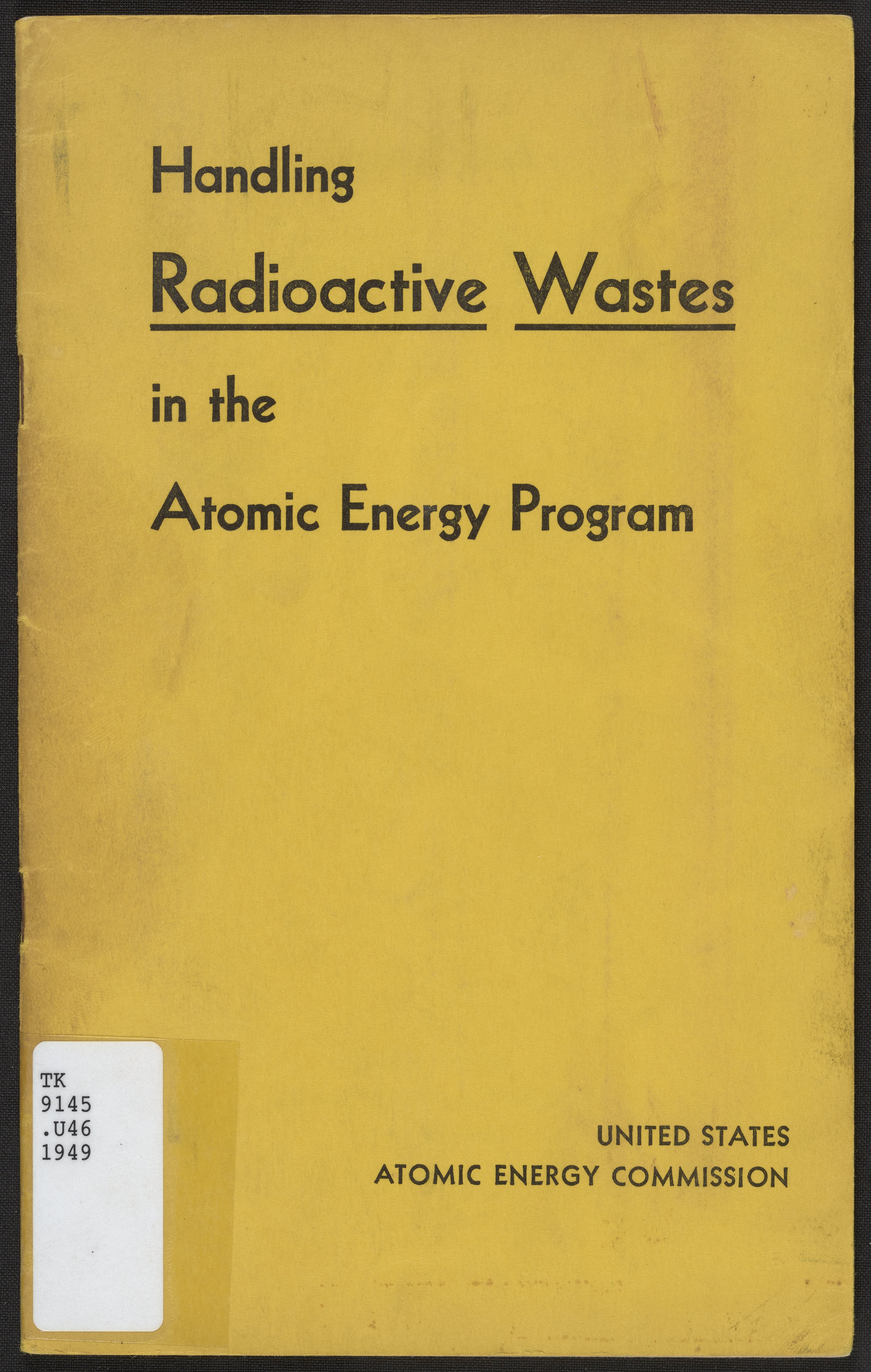 U.S. Atomic Energy Commission. “Handling Radioactive Wastes in the Atomic Energy Program.” Washington (D.C.), 1949. https://digital.sciencehistory.org/works/h415pb43w.