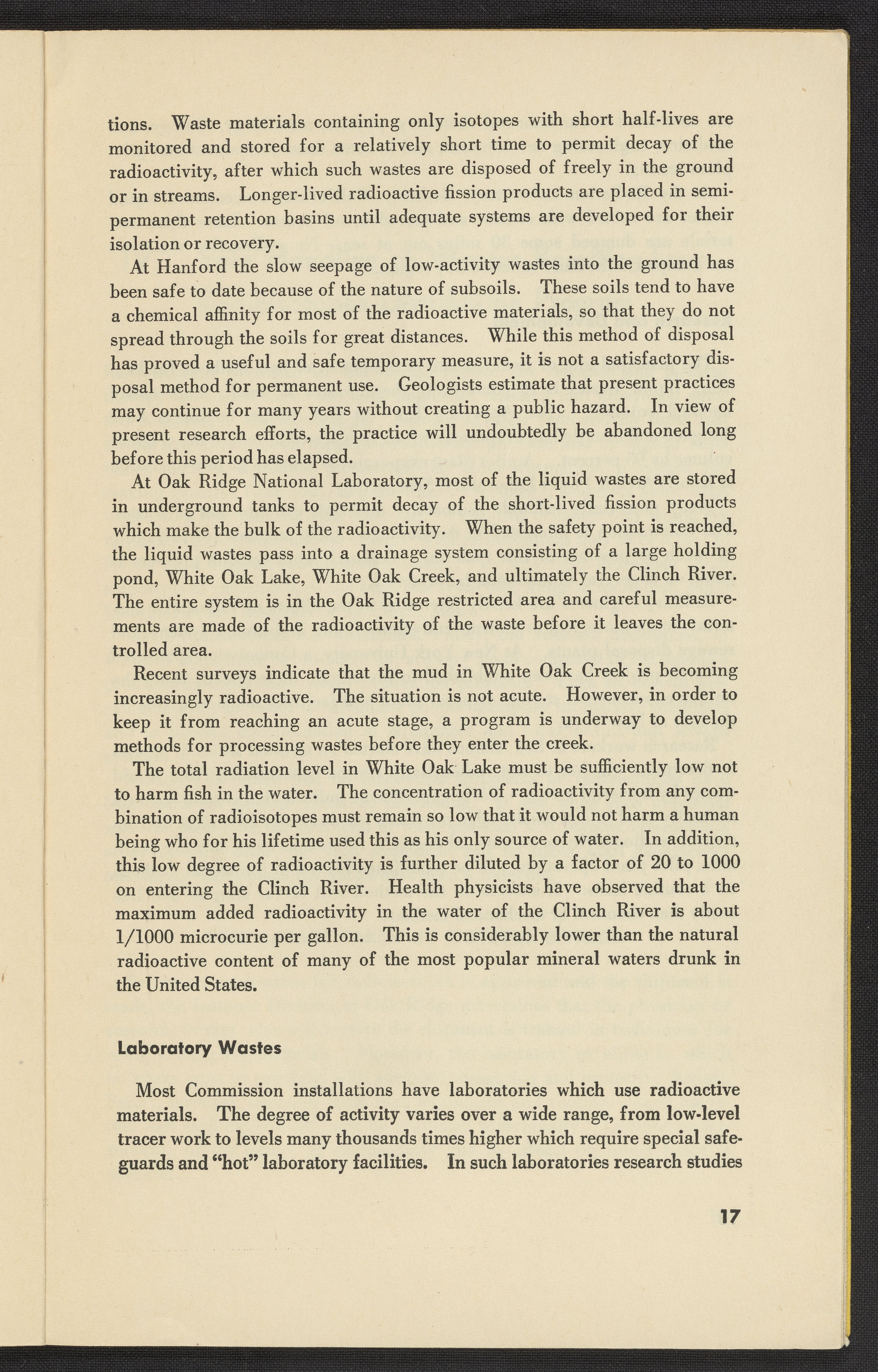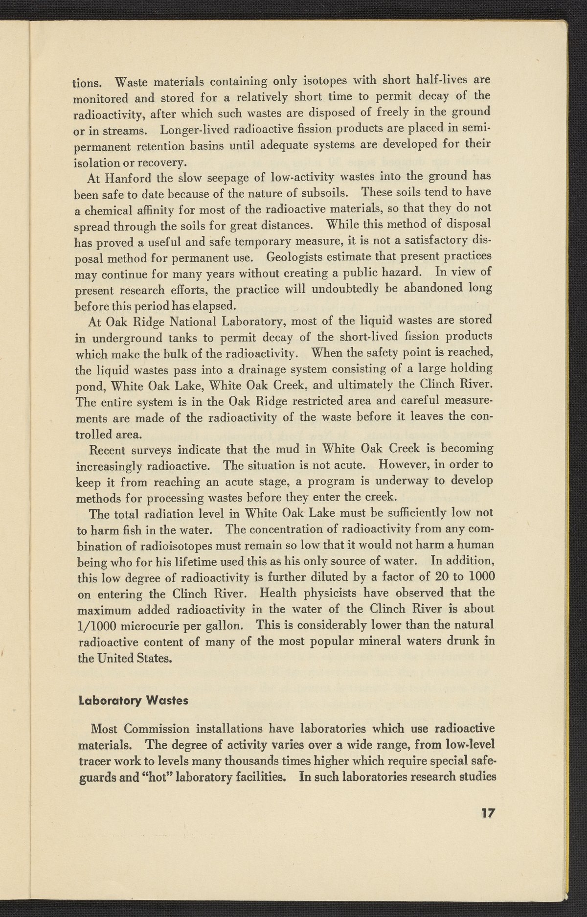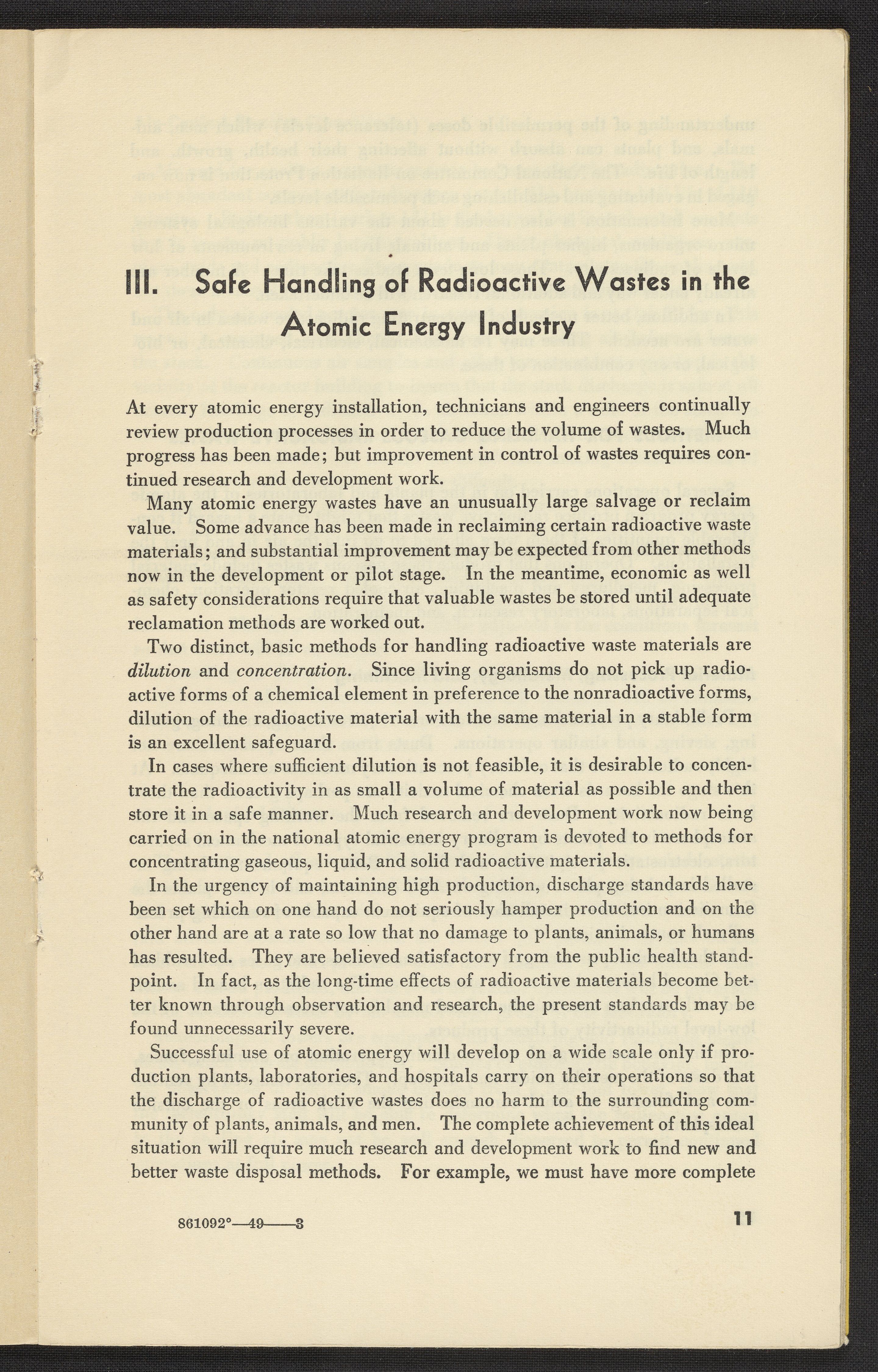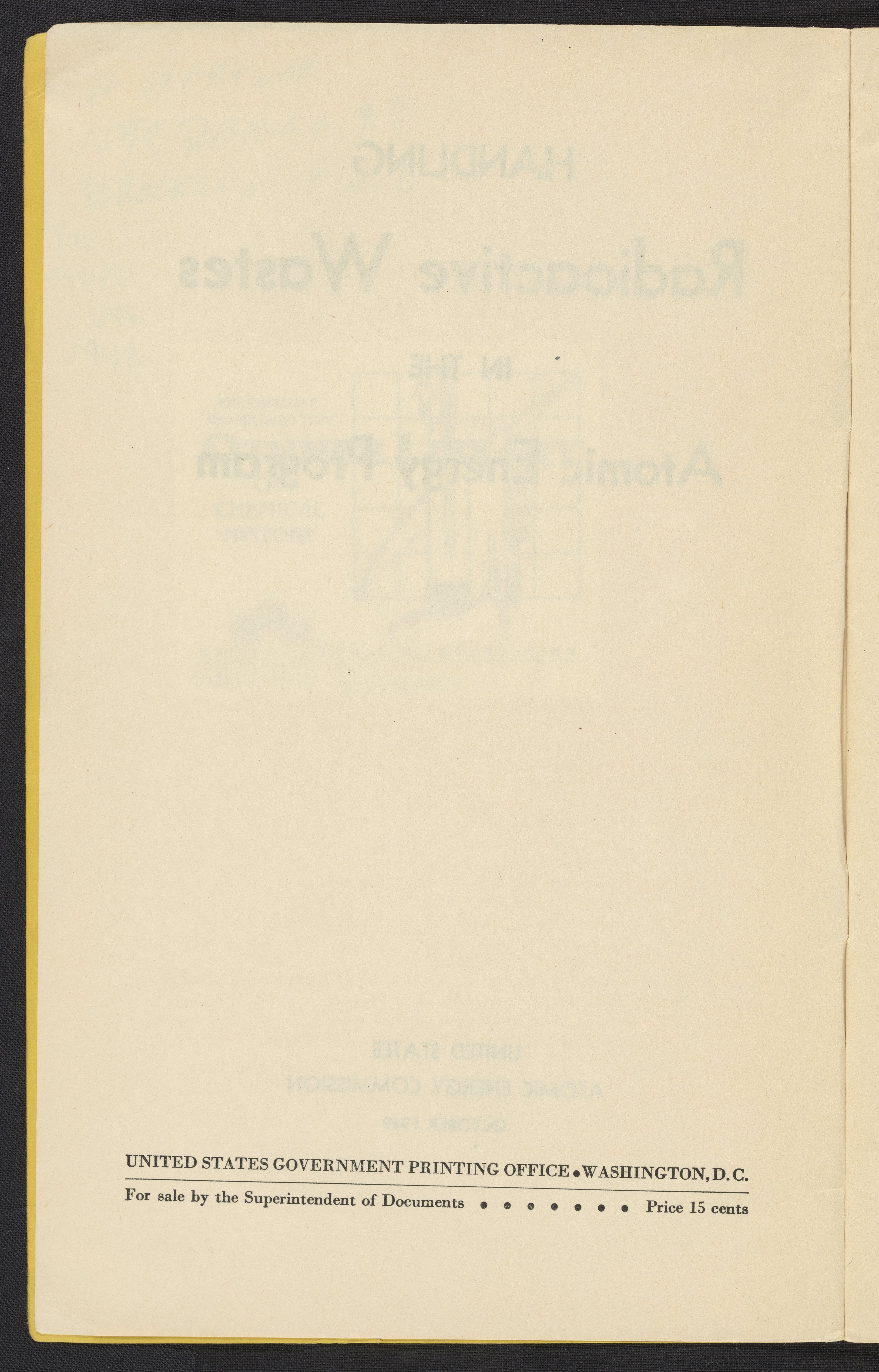 U.S. Atomic Energy Commission. “Handling Radioactive Wastes in the Atomic Energy Program.” Washington (D.C.), 1949. https://digital.sciencehistory.org/works/h415pb43w.