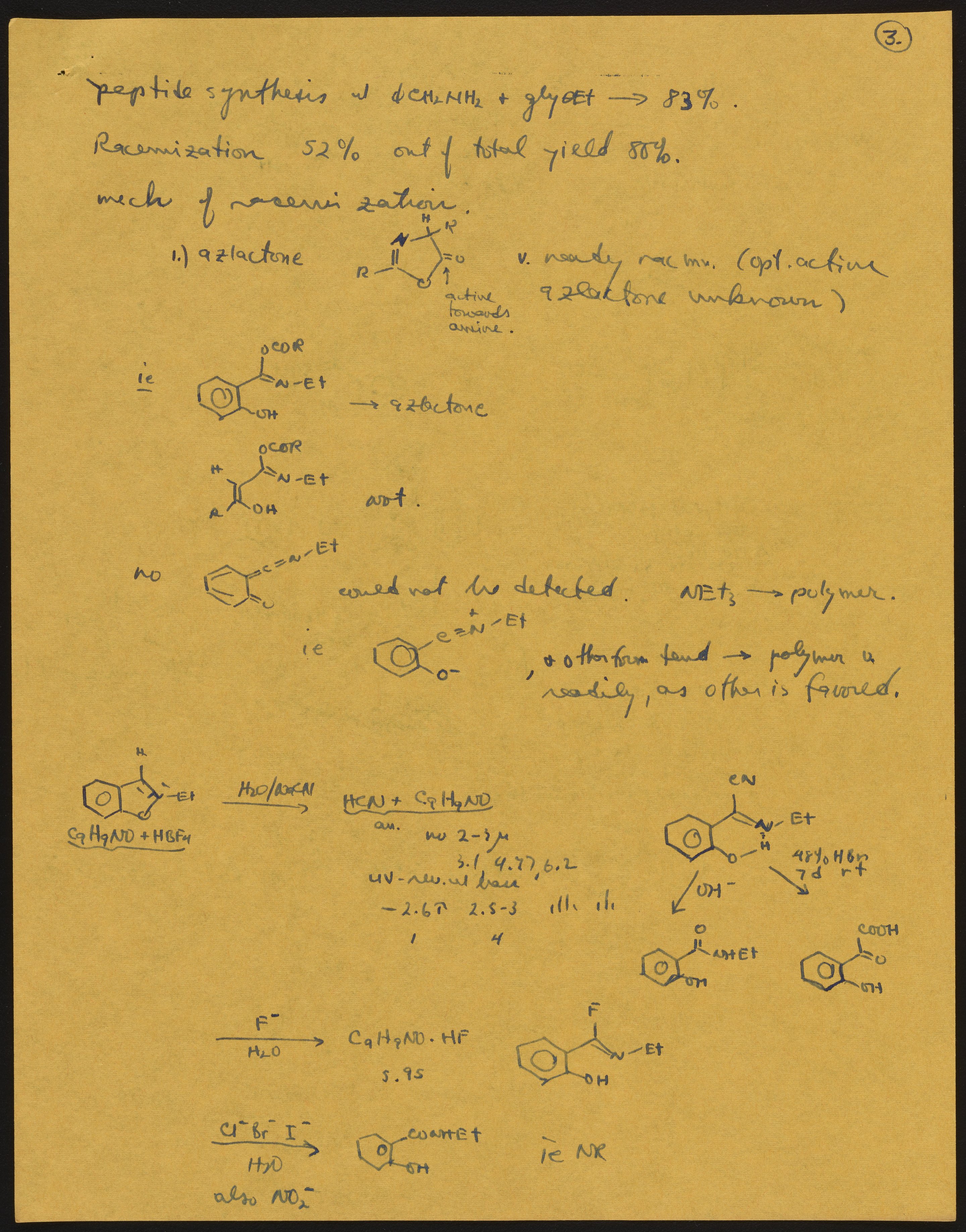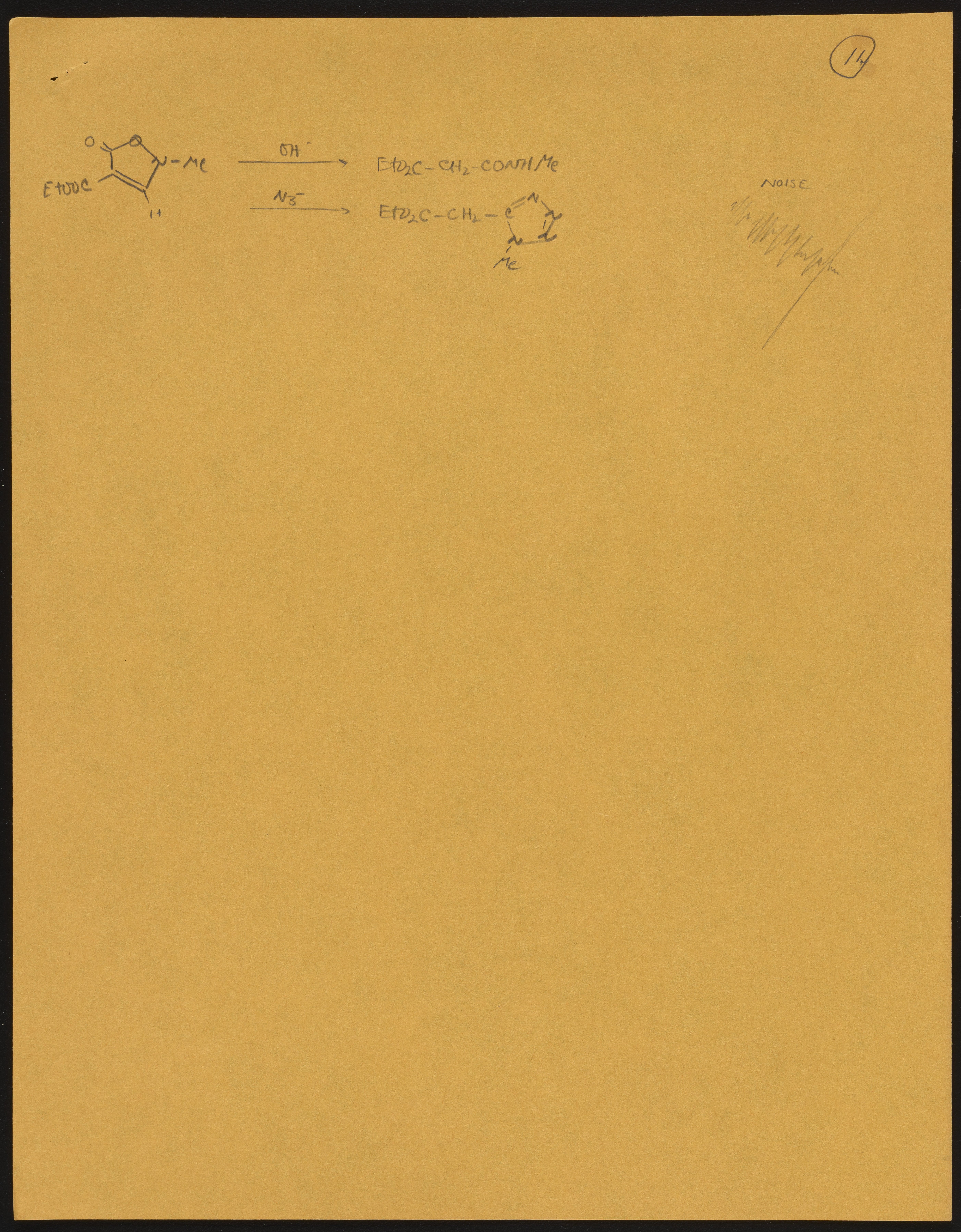 Kohler, Robert E. “R. B. (Robert Burns) Woodward Seminar Entitled ‘N-Et Benzisoxazolium Salts.’” Notes from R. B. (Robert Burns) Woodward's Seminars, circa 1959–1966. Folder 2. Science History Institute. Philadelphia. https://digital.sciencehistory.org/works/h989r4102.