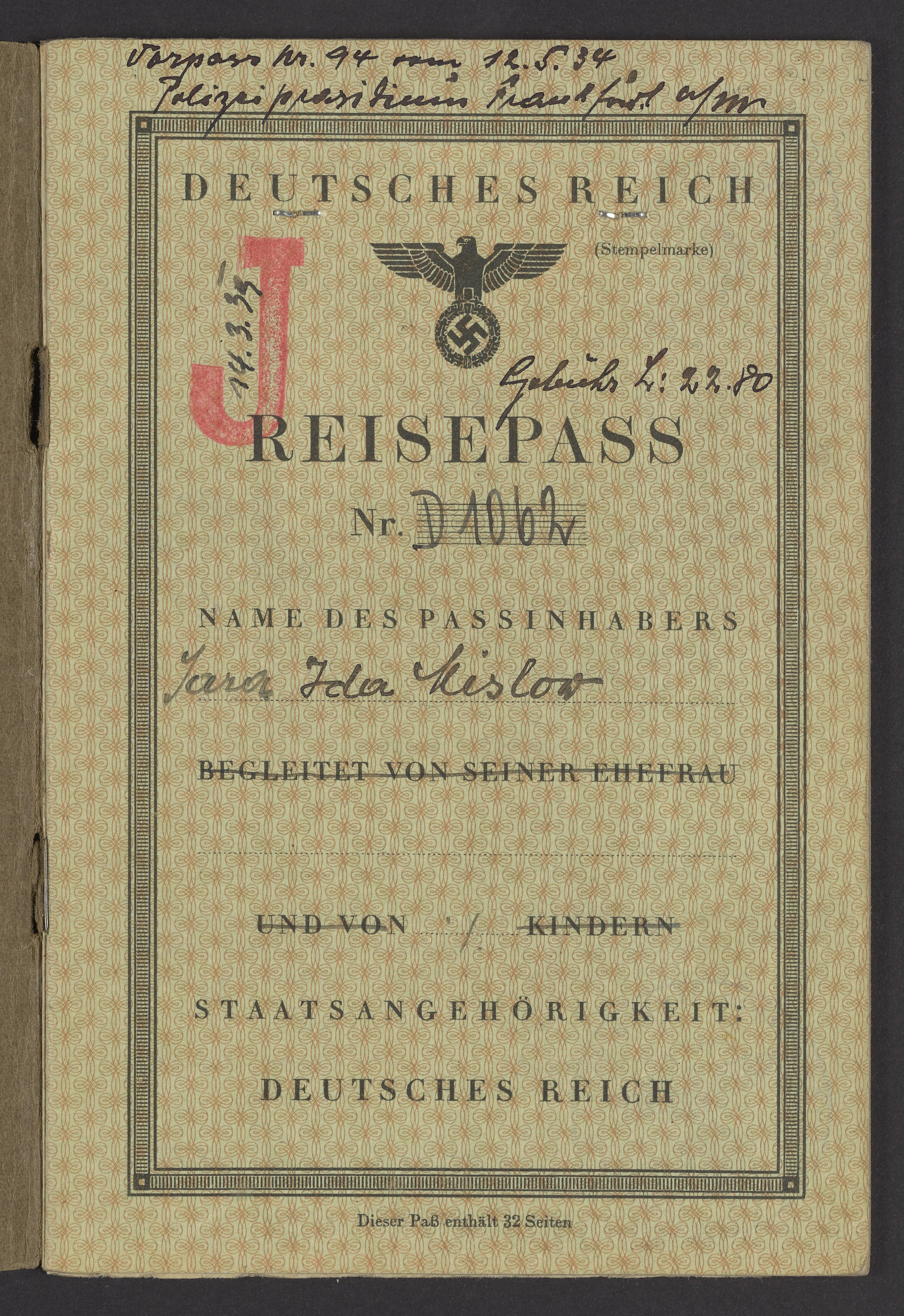 • Ida Mislow's Deutsches Reich Reisepass