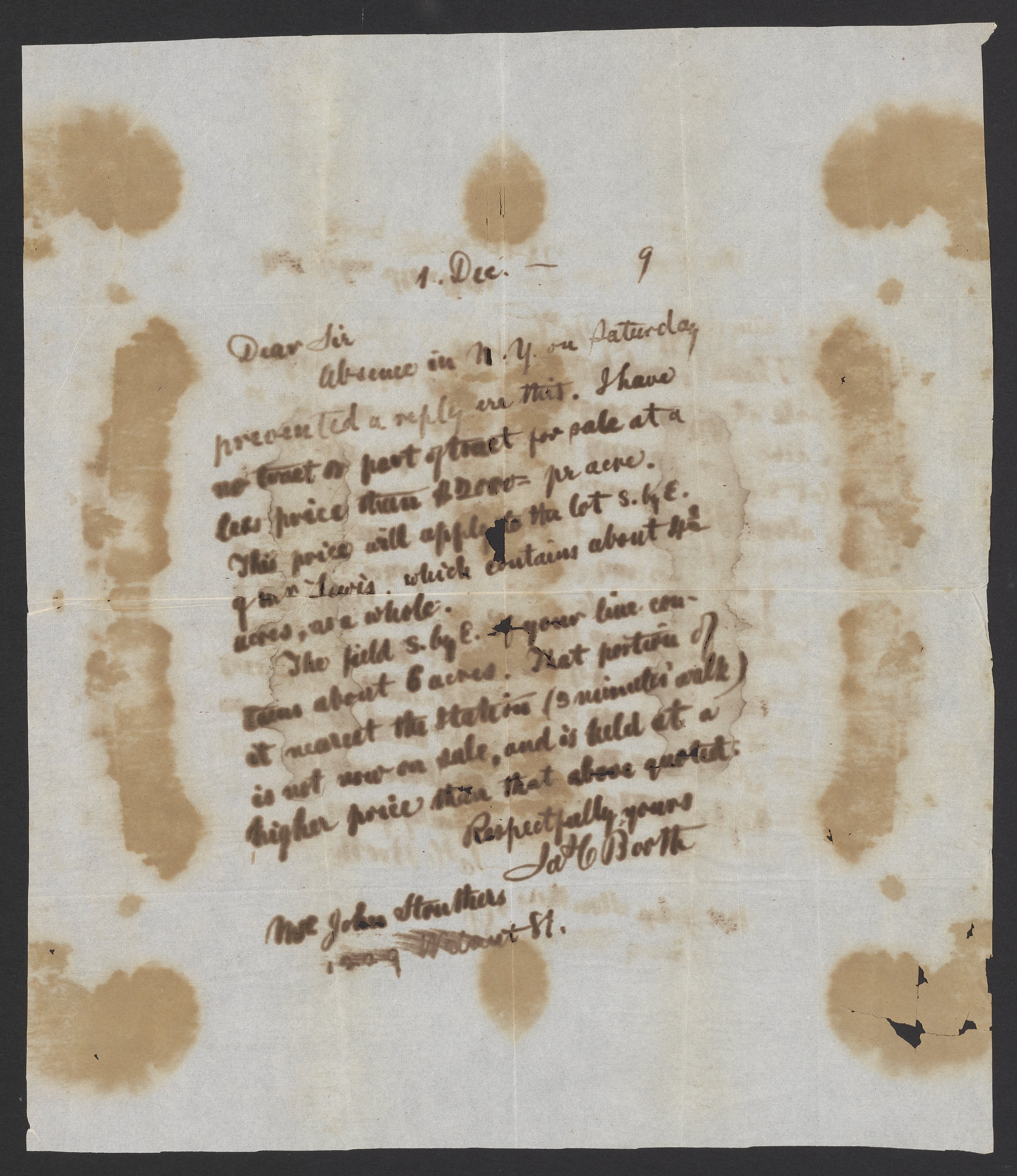 James Curtis Booth (1810-1888) responds to an inquiry for land he is selling.