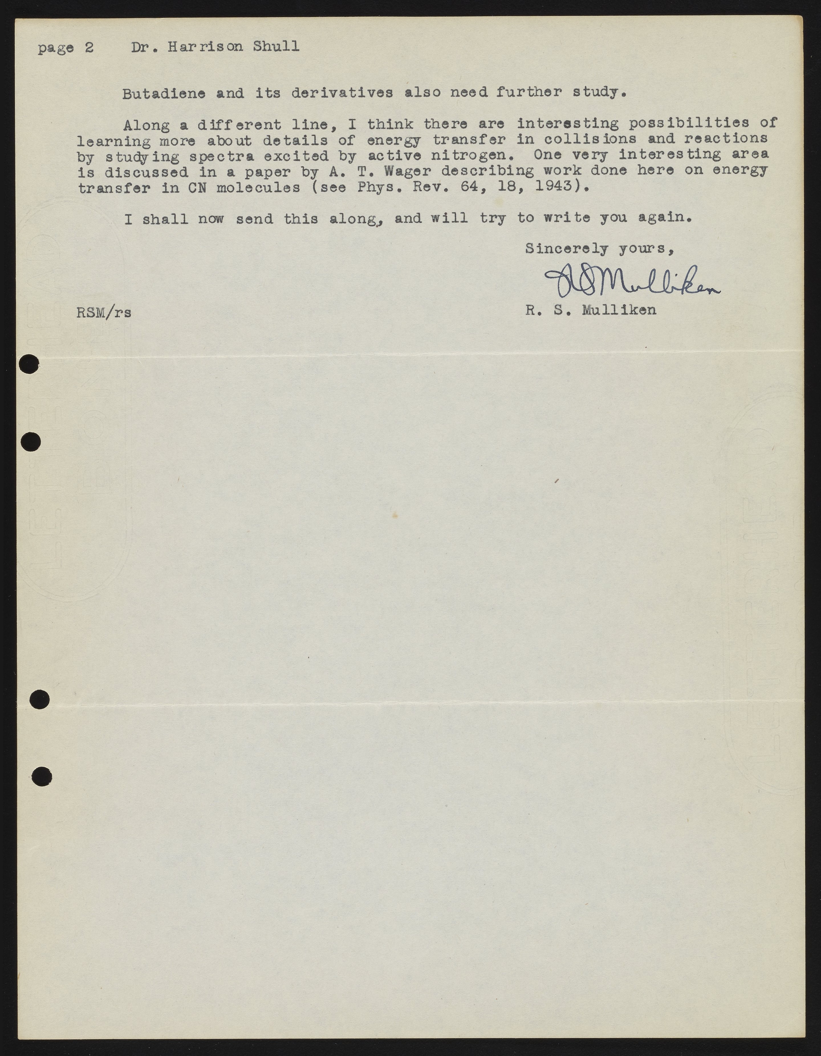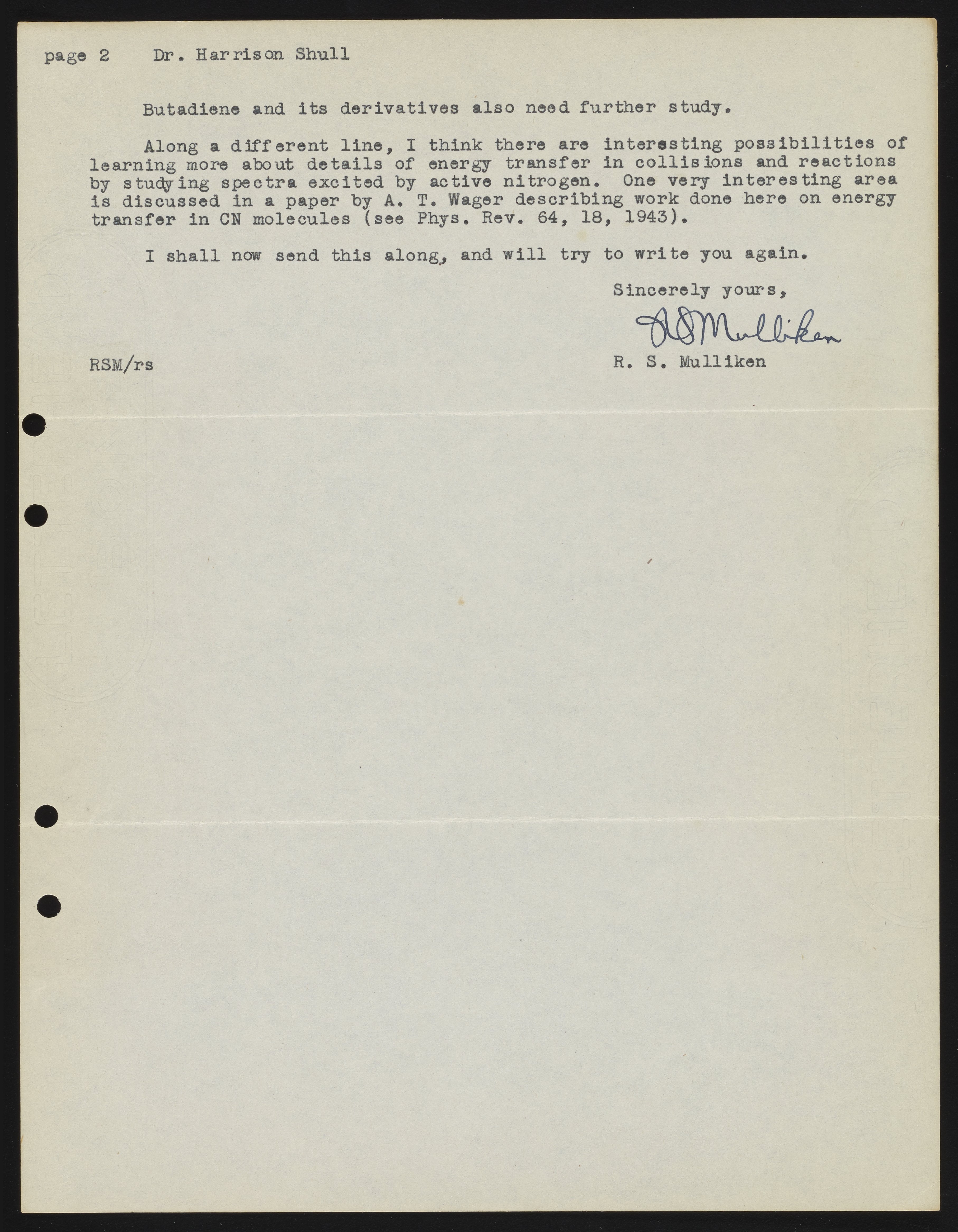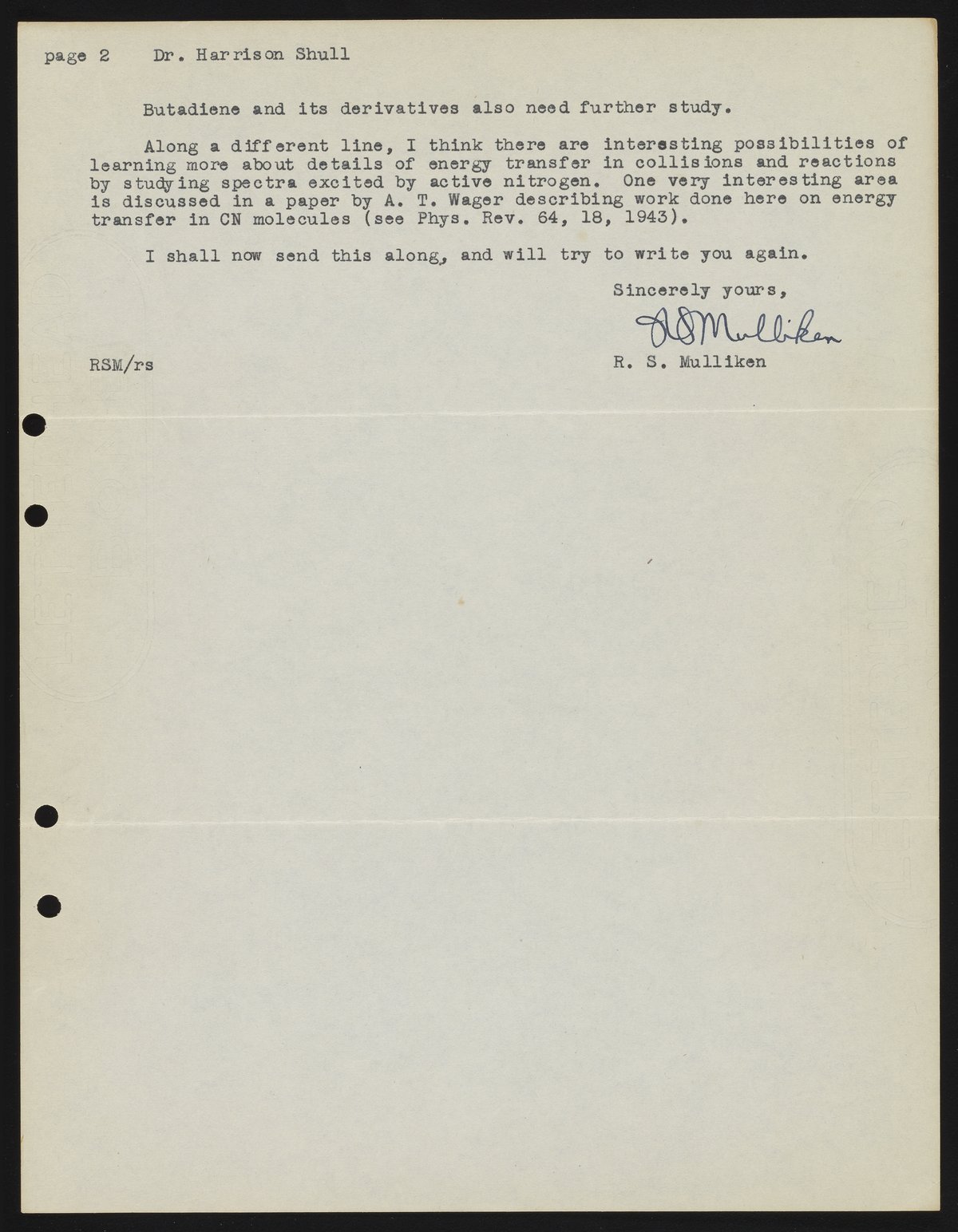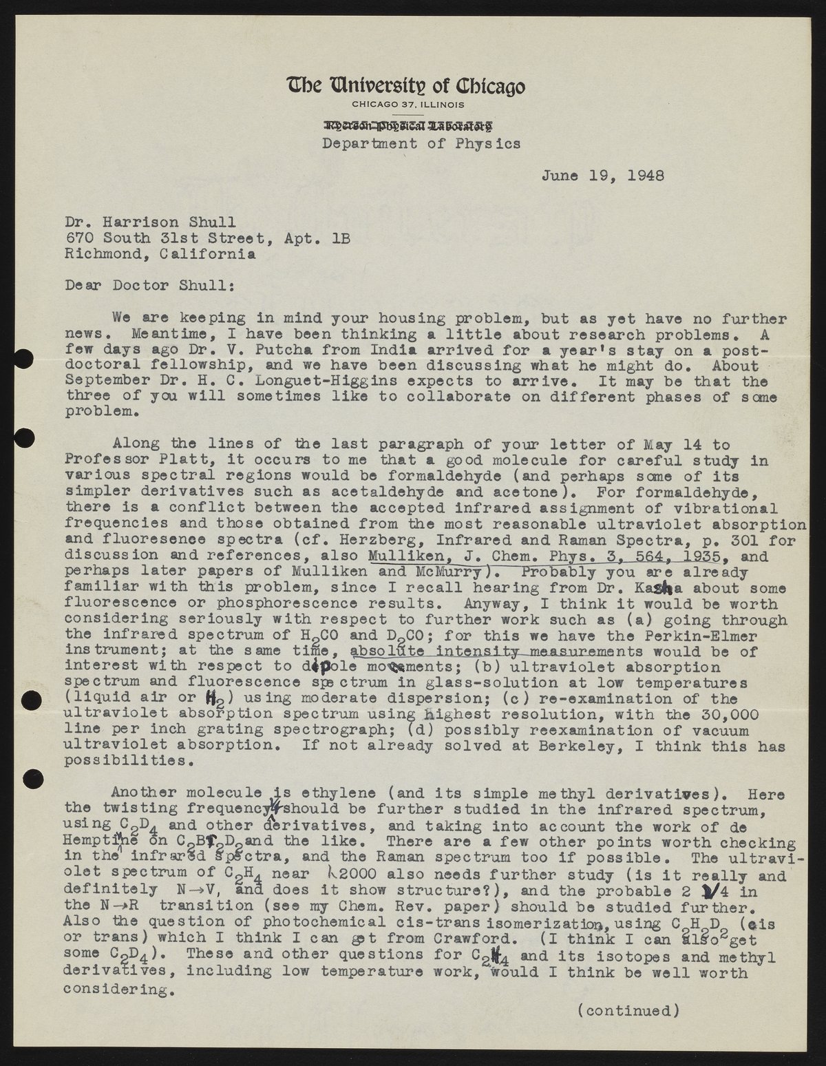 Mulliken, Robert Sanderson. “Letter from Robert S. Mulliken to Harrison Shull, 1948,” June 19, 1948. Robert S. Mulliken & Harrison Shull Correspondence, Box 1, Folder 1. Science History Institute. Philadelphia. https://digital.sciencehistory.org/works/hd76s011c.