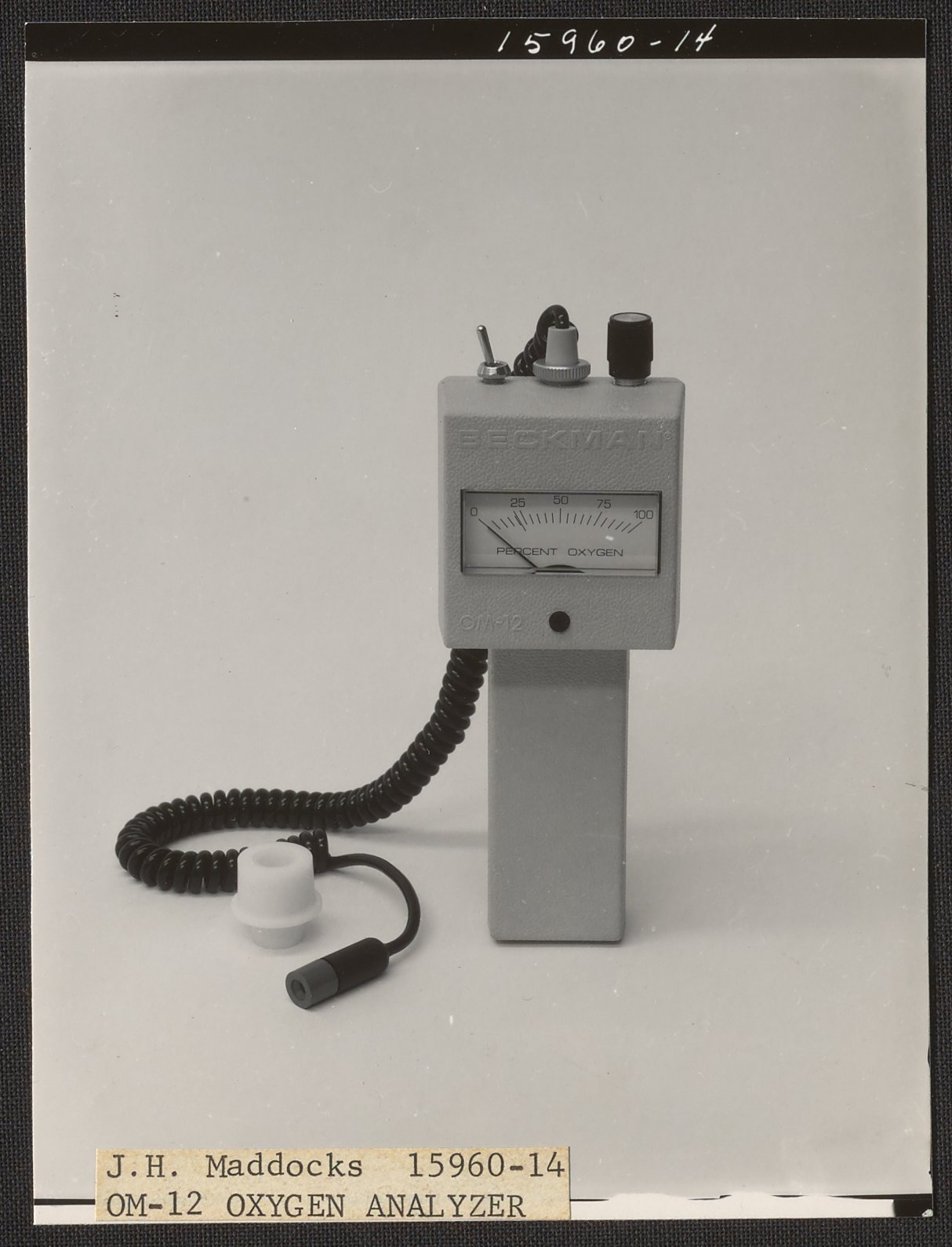 Maddocks, J. H. “Beckman OM-12 Oxygen Analyzer,” circa 1974. Beckman Historical Collection, Box 84. Science History Institute. Philadelphia. https://digital.sciencehistory.org/works/hd76s046g.