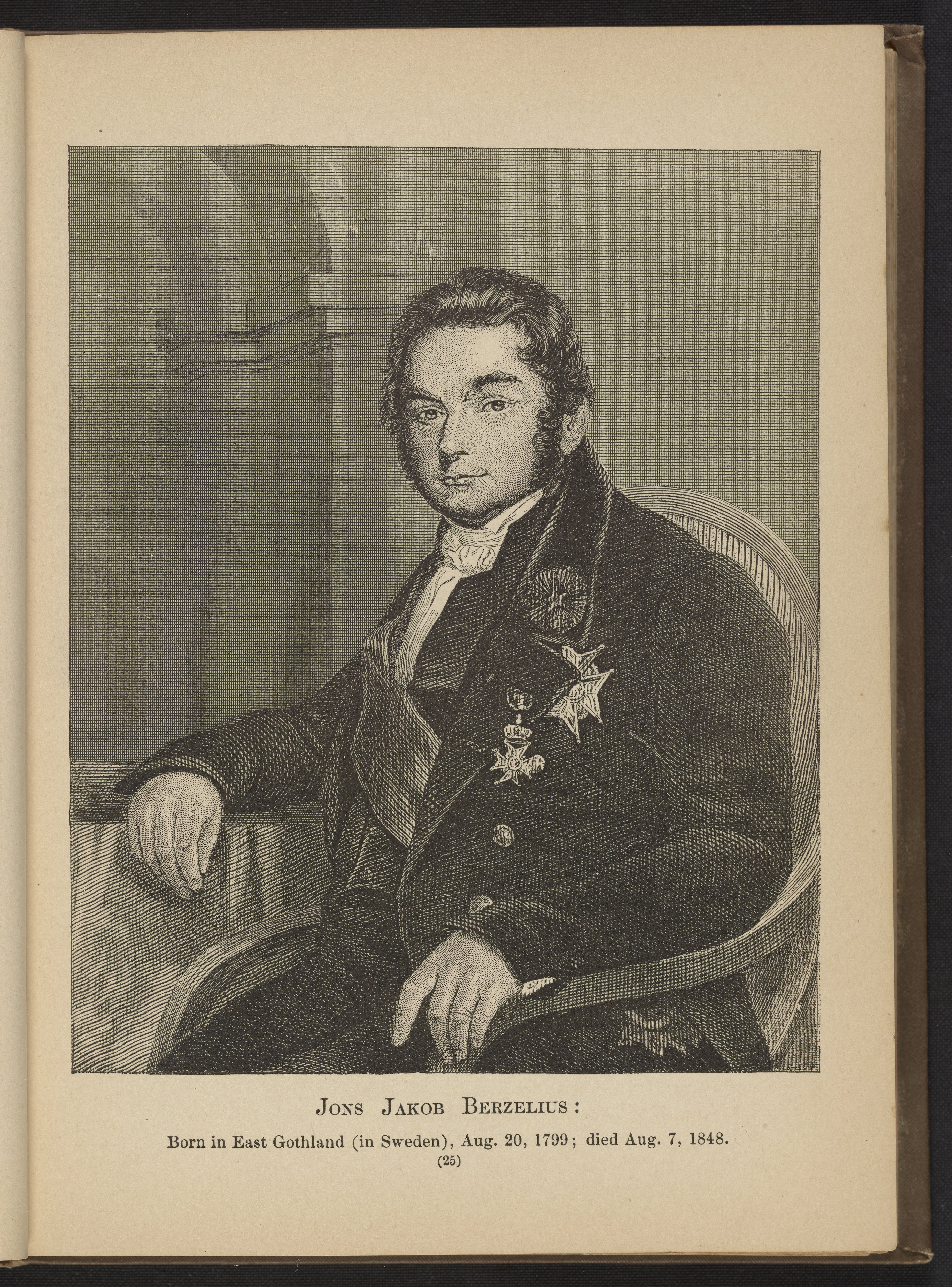 Appleton, John Howard. “Portrait of Jöns Jakob Berzelius.” Chemistry, Developed by Facts and Principles Drawn Chiefly from the Non-Metals. Providence, Rhode Island: Providence Lithograph Company, 1884. Science History Institute. Philadelphia. https://digital.sciencehistory.org/works/hgd9rxr.