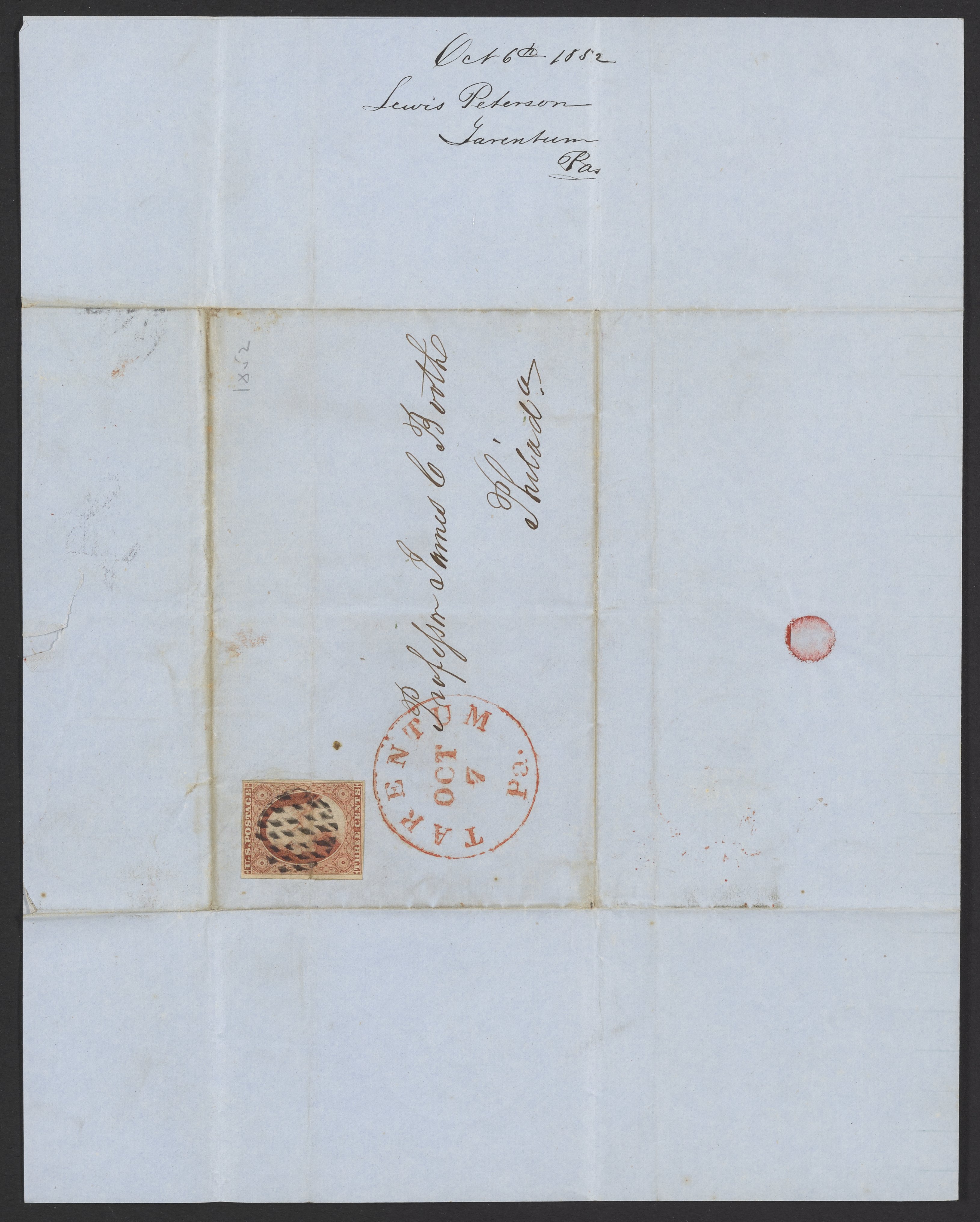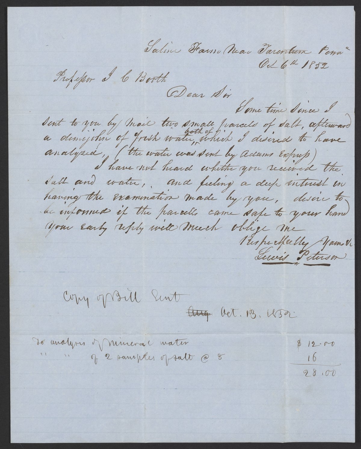 Letter from Lewis Peterson to James Curtis Booth, October 6, 1852