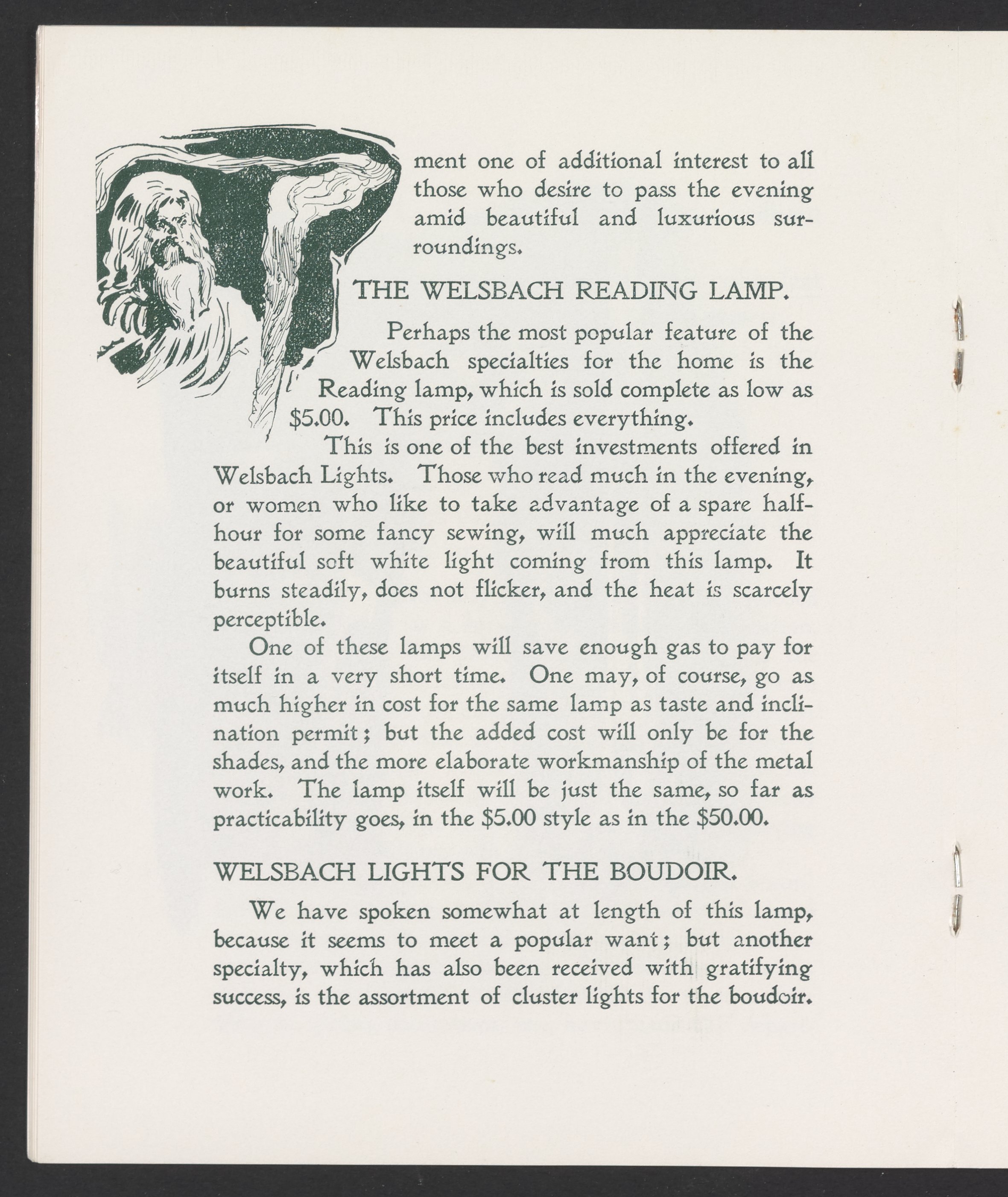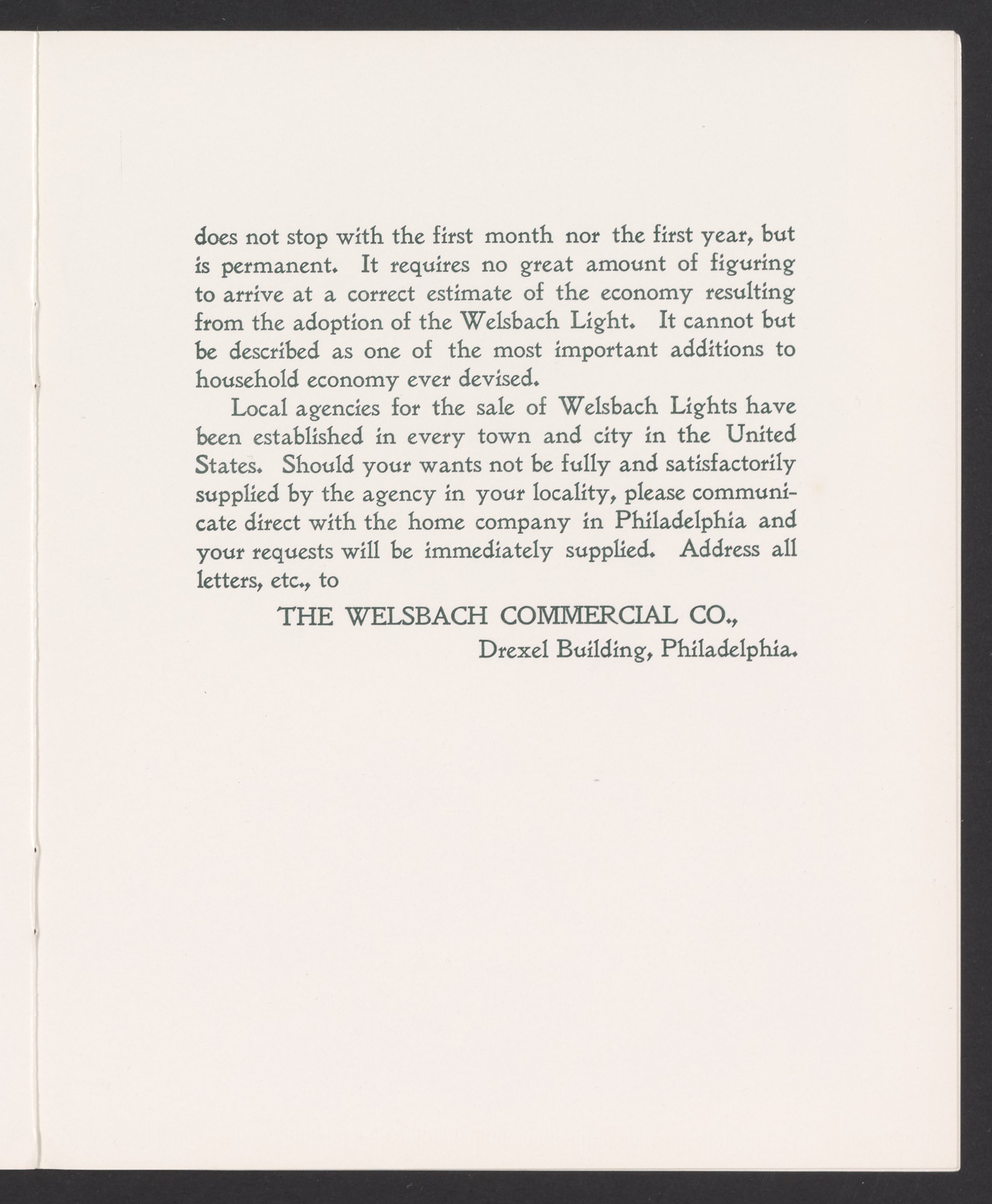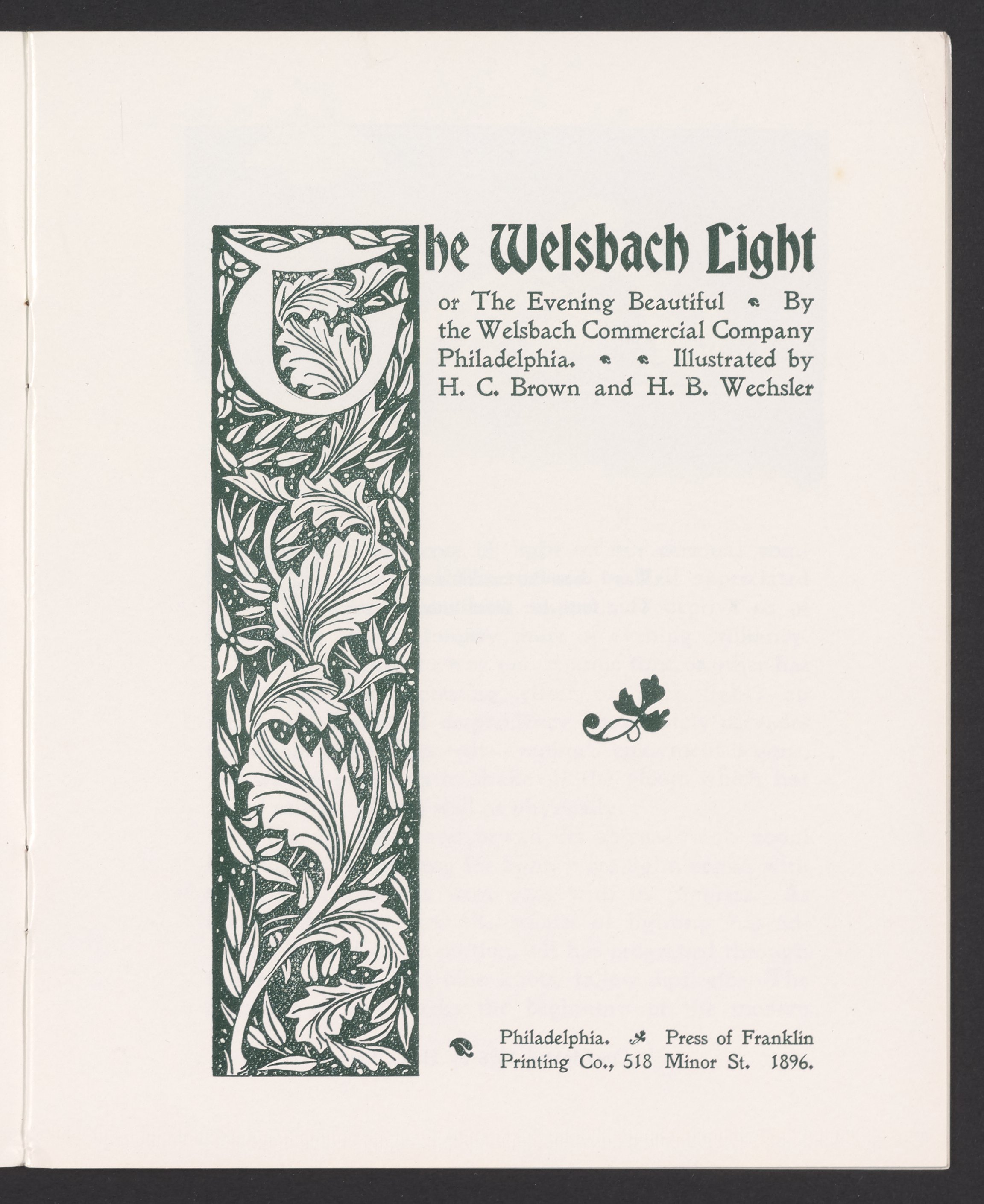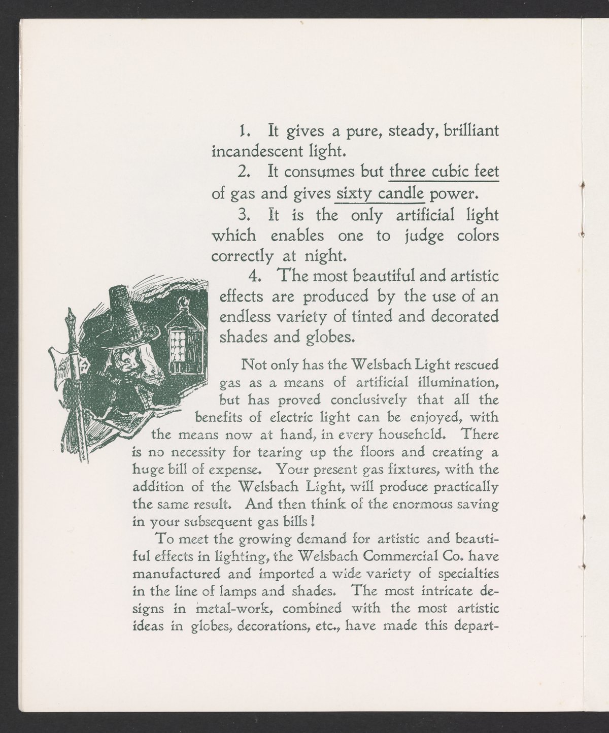 Small JPG1200 x 1457px — 341 KBFull-sized JPG2335 x 2835px — 954 KBOriginal fileTIFF — 2335 x 2835px — 19.0 MBThis is a reprint of promotional booklet produced by the Welsbach Company about the history of its light. The booklet was reprinted in 1984 by the Rushlight Club, an association of collectors and students of historic lighting.