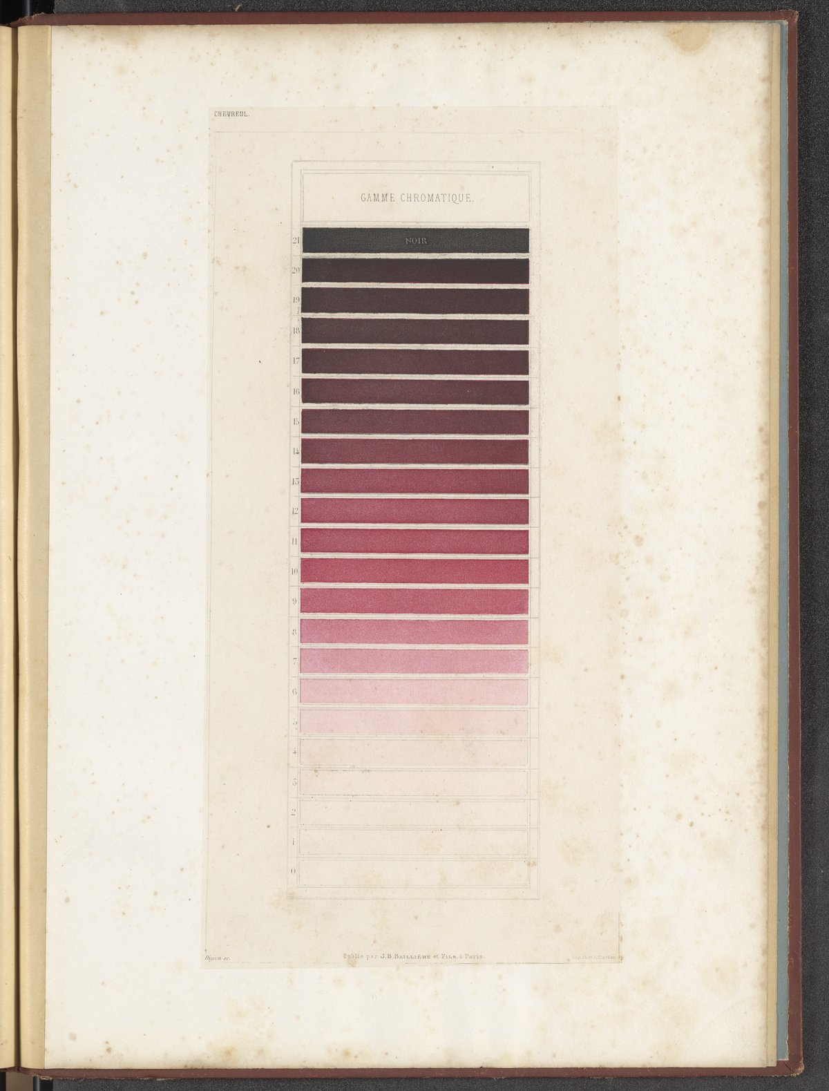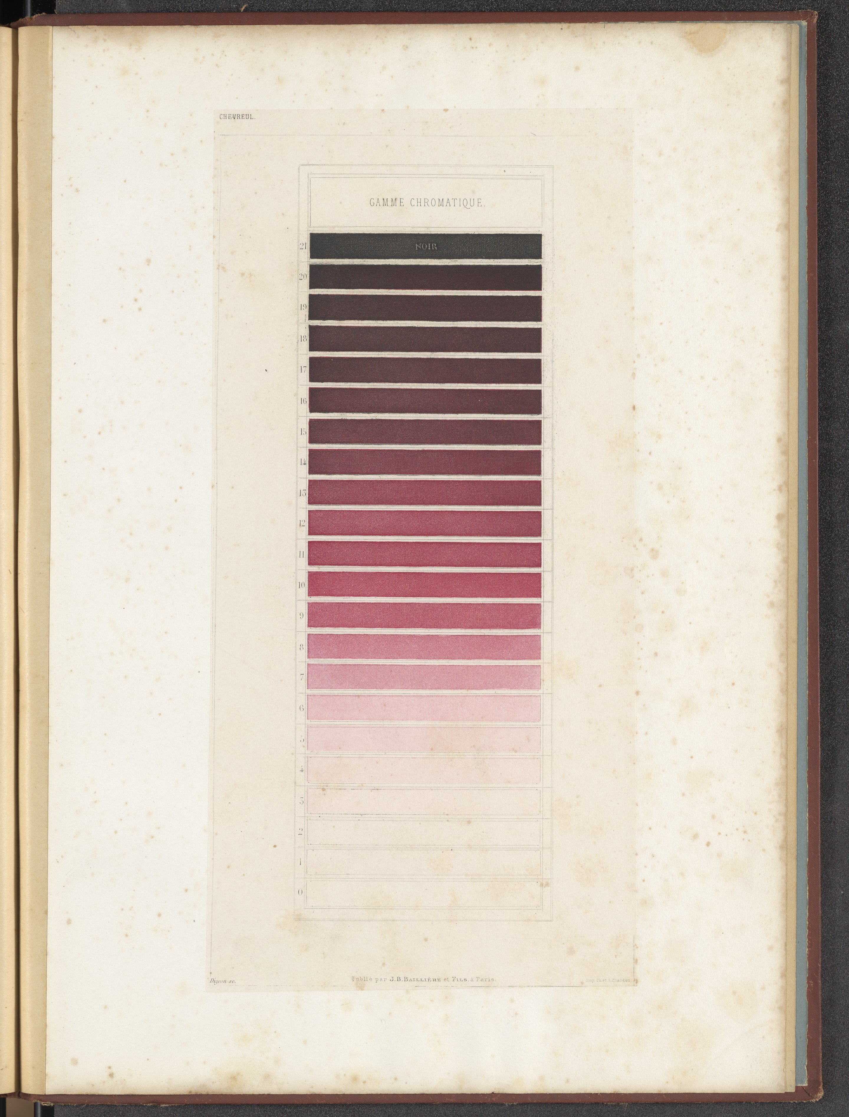 Chevreul, M. E. (Michel Eugène). “Plate XXVII: Gamme Chromatique: Violet-Rouge.” In Des Couleurs Et De Leurs Applications Aux Arts Industriels à l'Aide Des Cercles Chromatiques. Paris, France: J.-B. Baillière et fils, 1864. https://digital.sciencehistory.org/works/hm50tr904.
