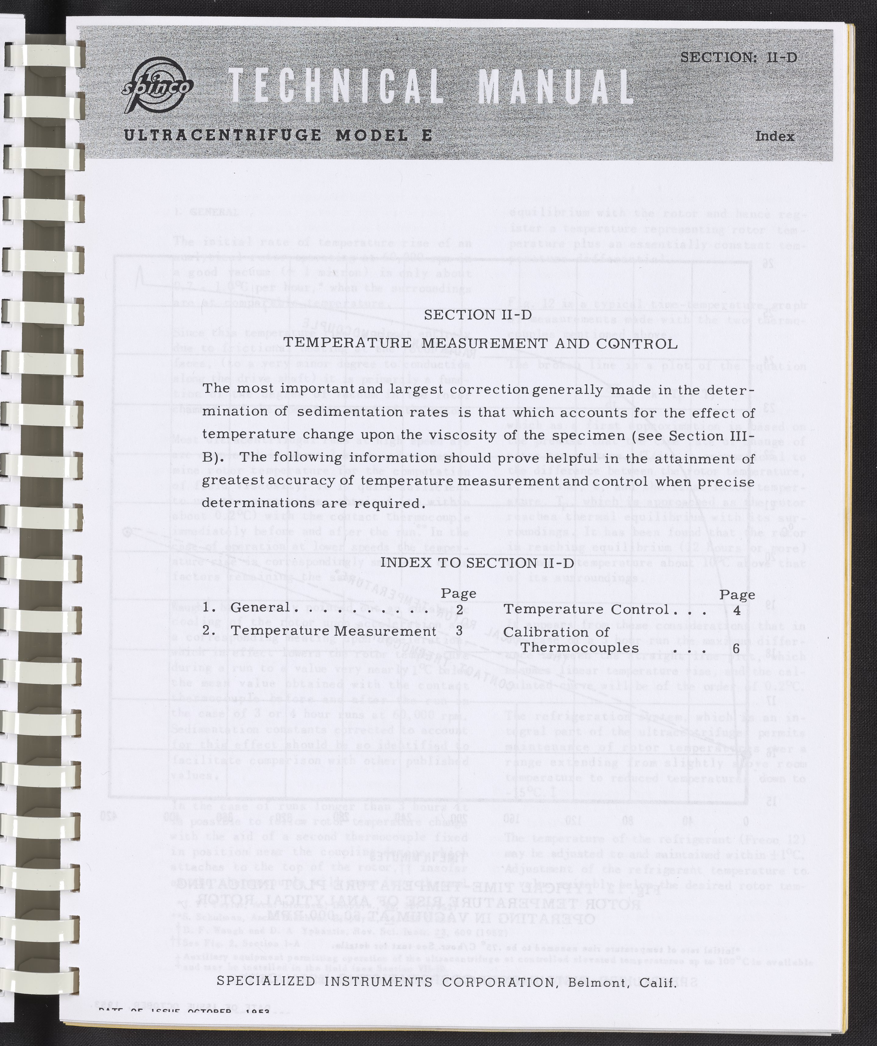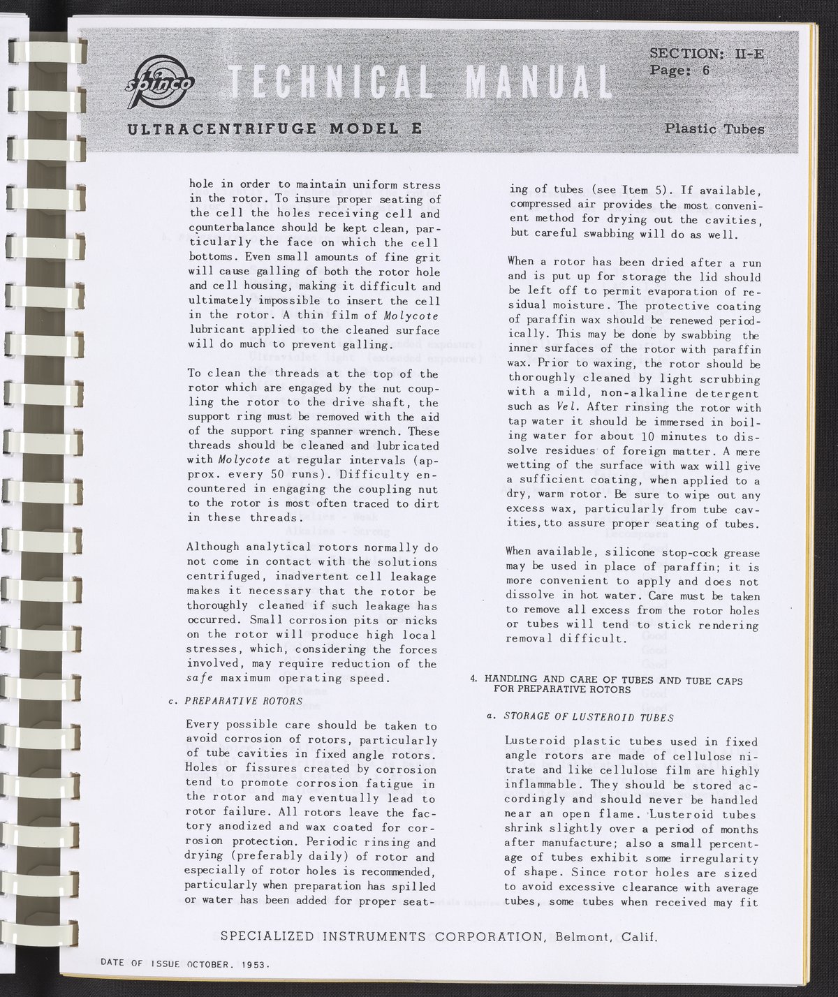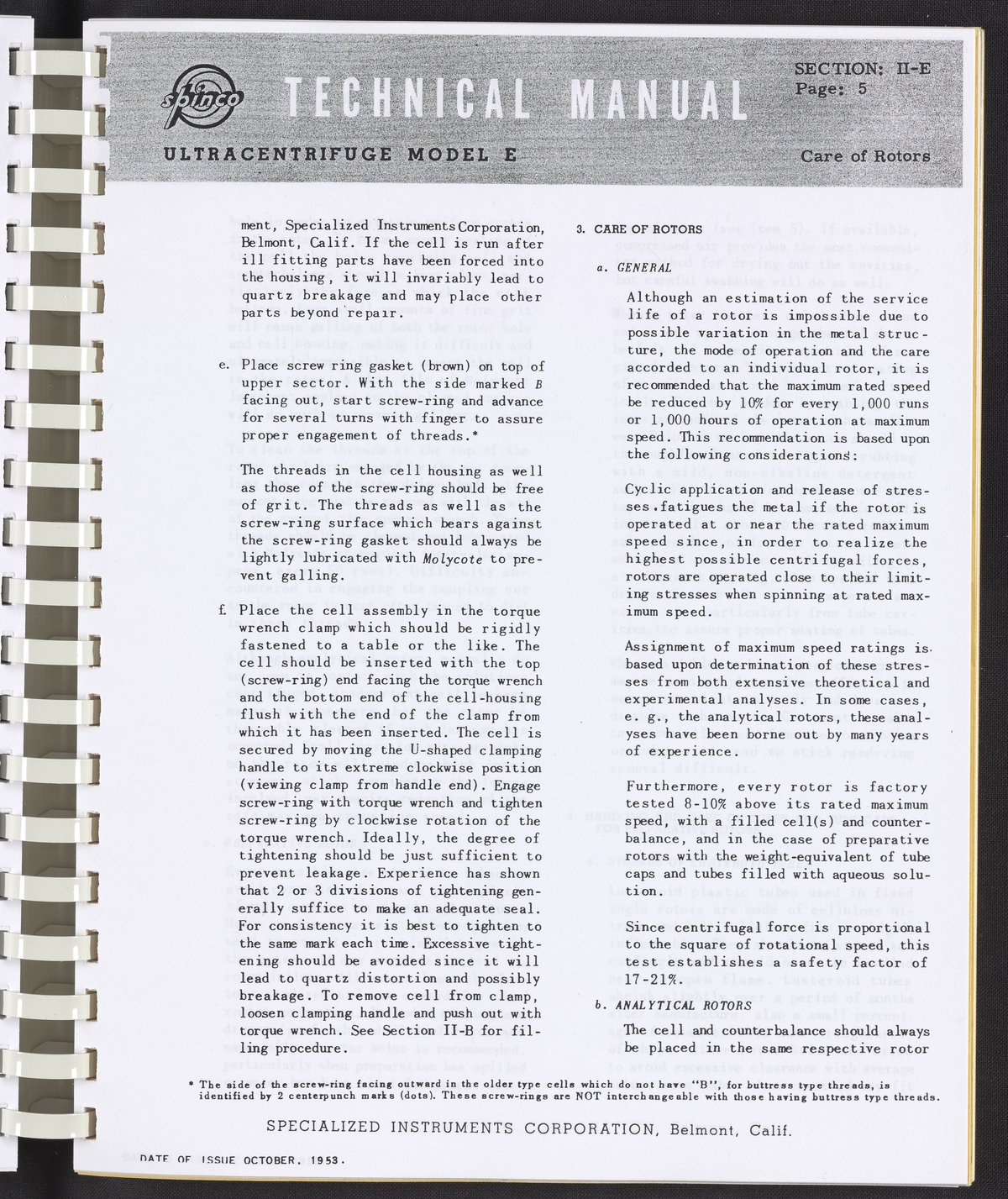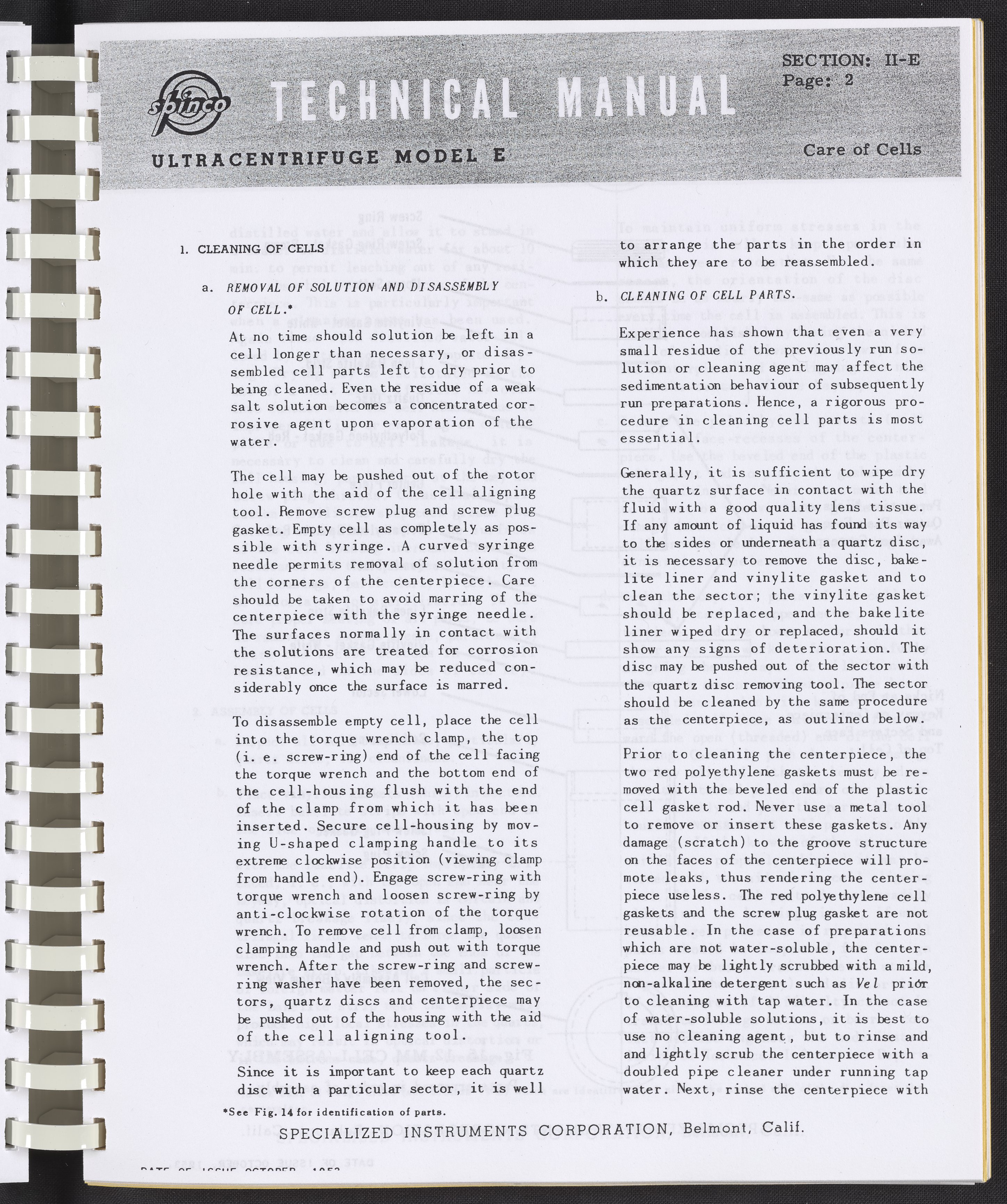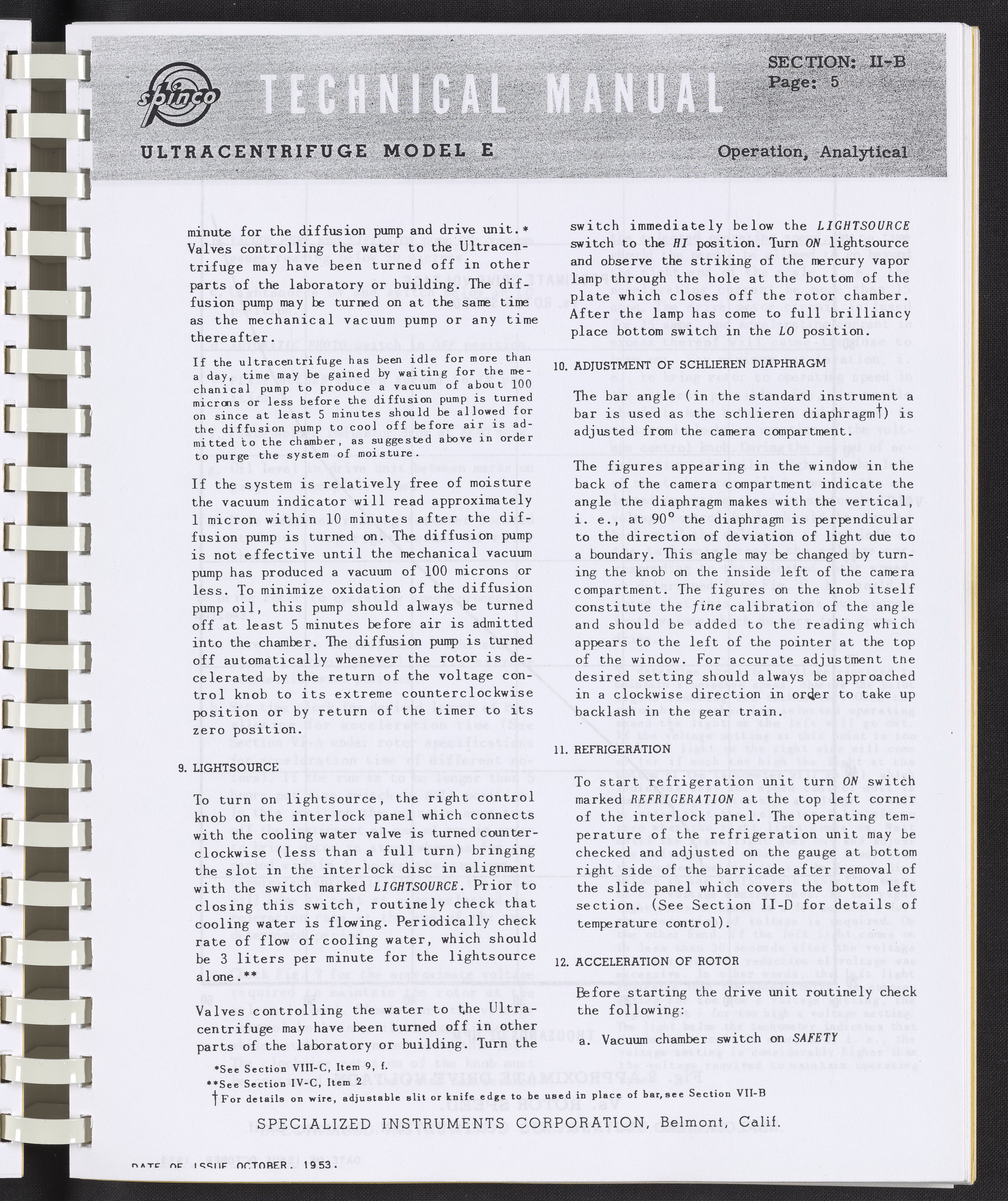 Beckman Instruments, Inc. Spinco Division. “Technical Manual, Spinco Ultracentrifuge Model E,” 1953–1954. Beckman Historical Collection, Box 121, Folder 9. Science History Institute. Philadelphia. https://digital.sciencehistory.org/works/hm50ts49m.
