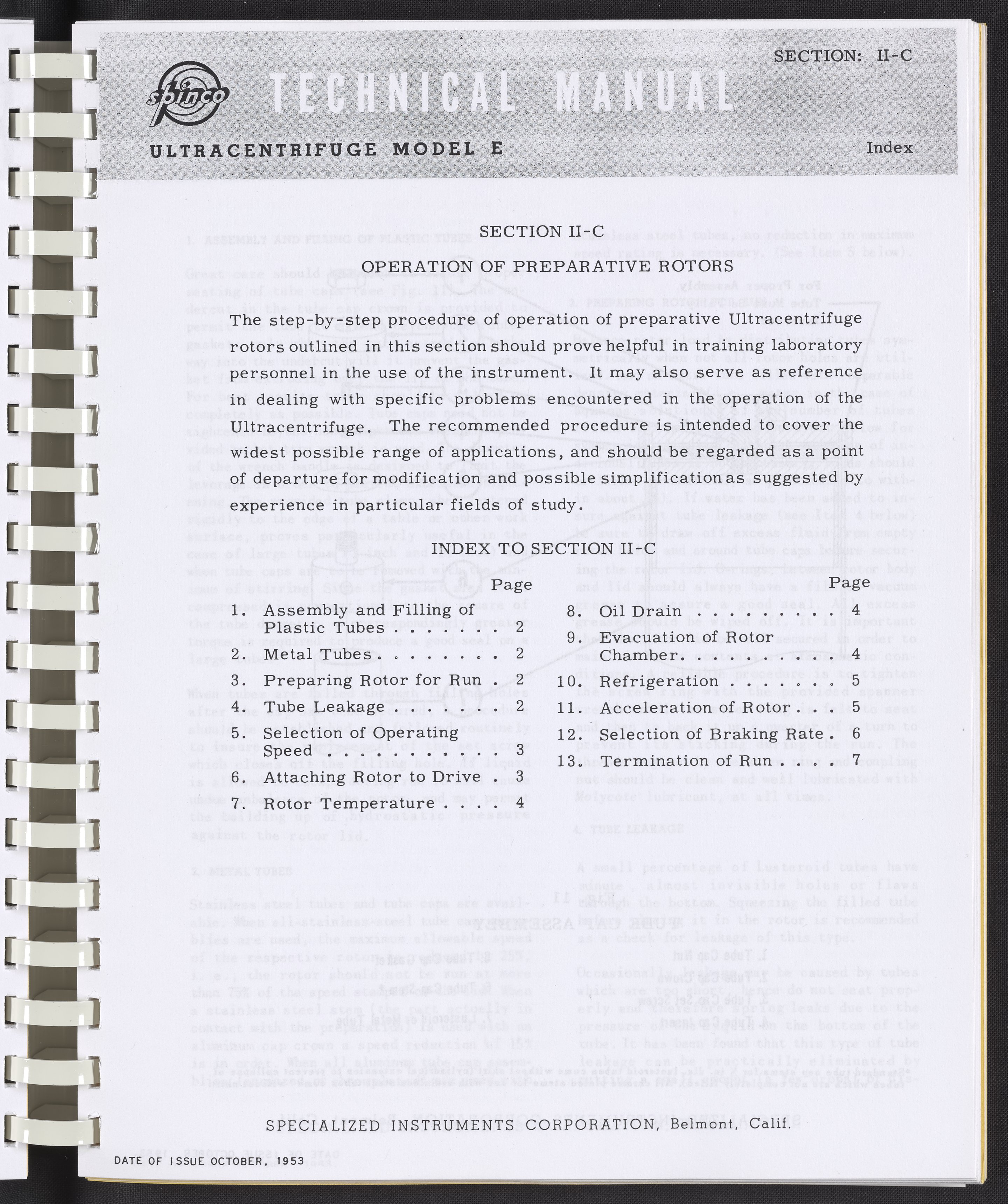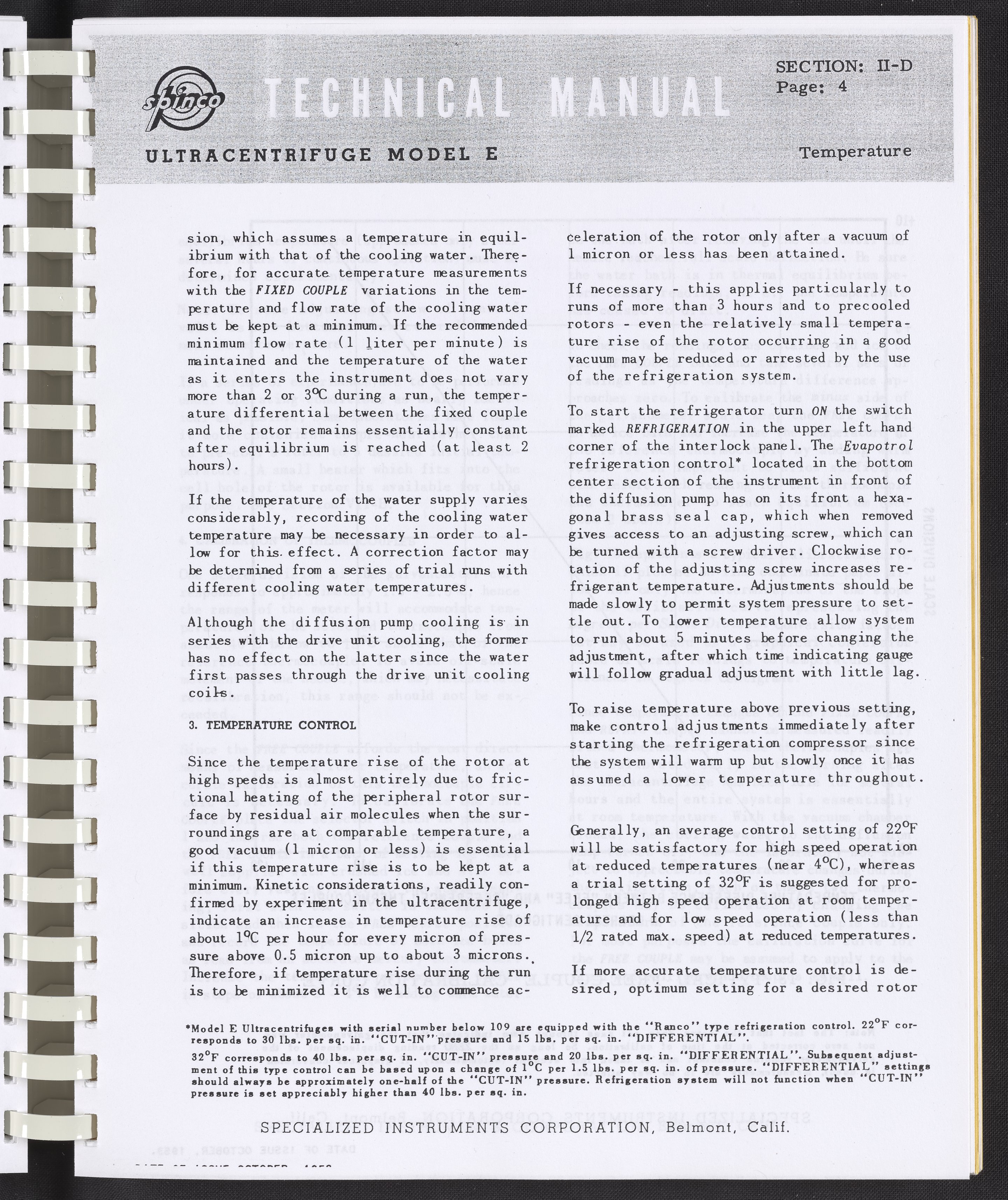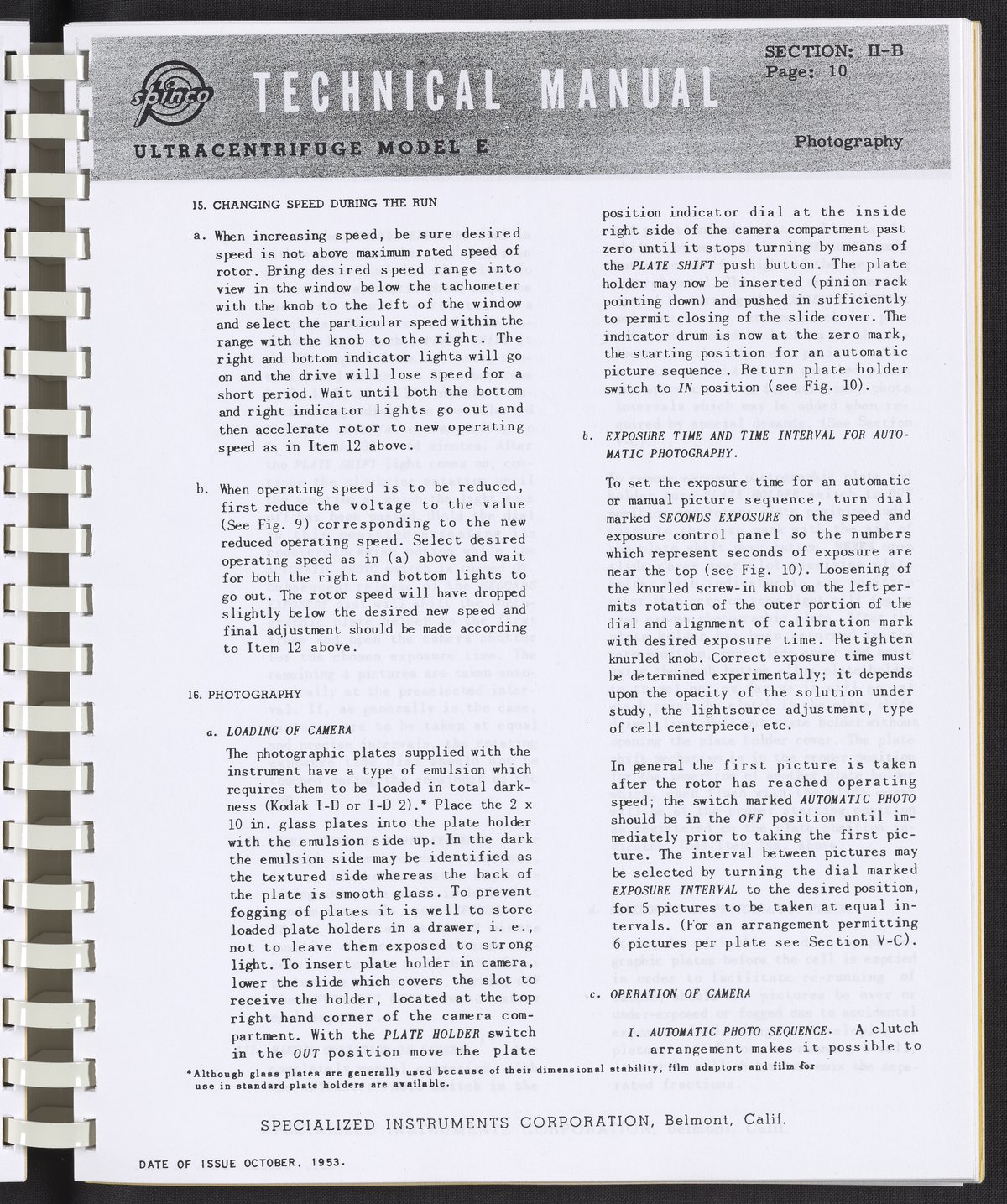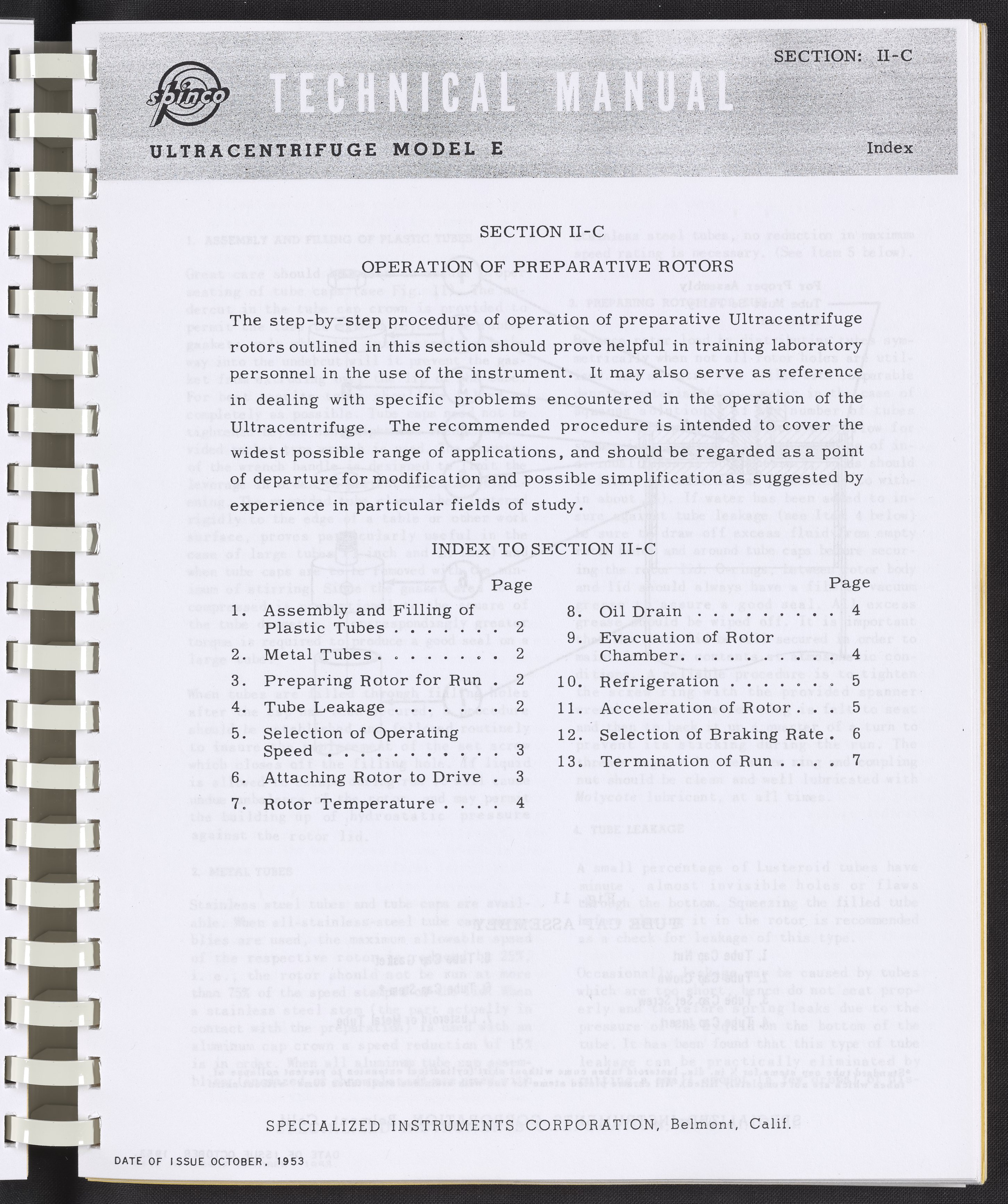 Beckman Instruments, Inc. Spinco Division. “Technical Manual, Spinco Ultracentrifuge Model E,” 1953–1954. Beckman Historical Collection, Box 121, Folder 9. Science History Institute. Philadelphia. https://digital.sciencehistory.org/works/hm50ts49m.