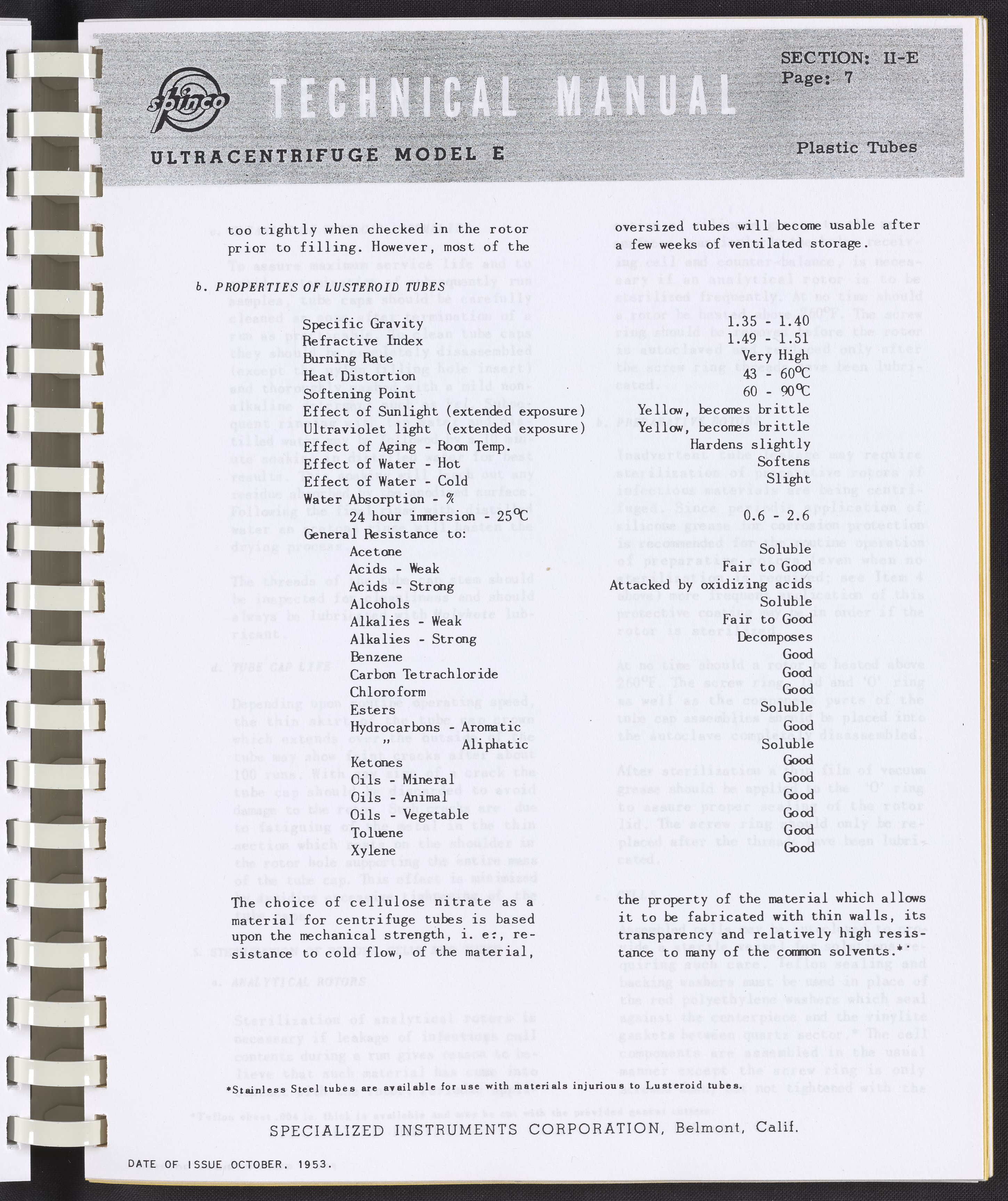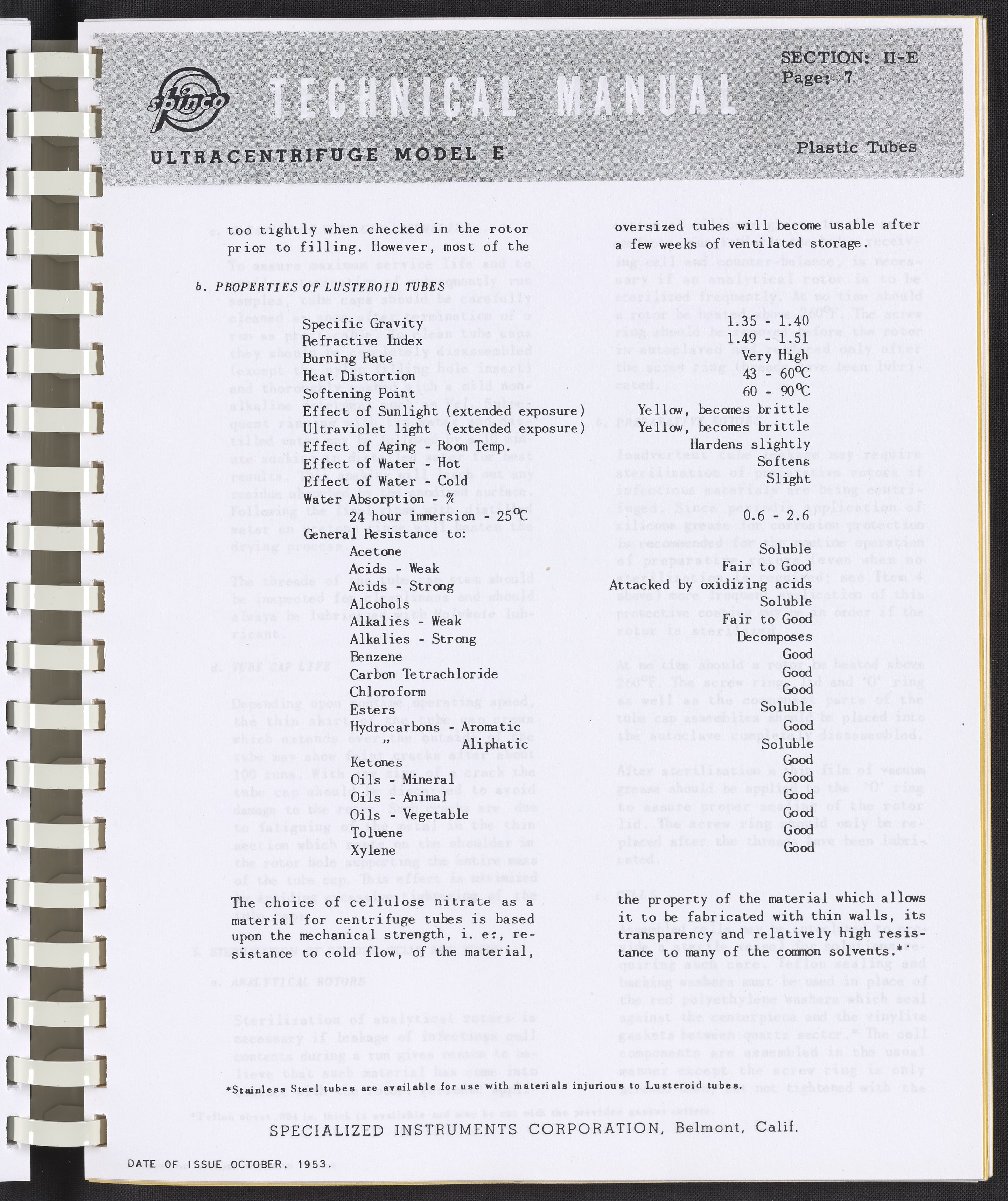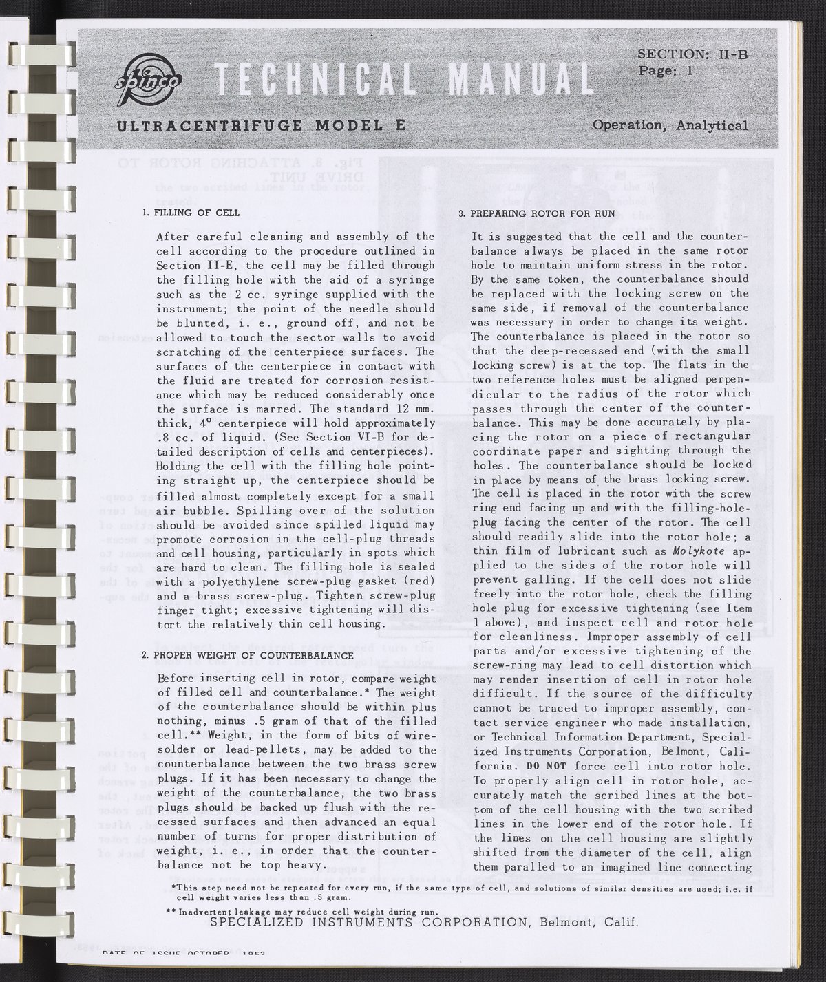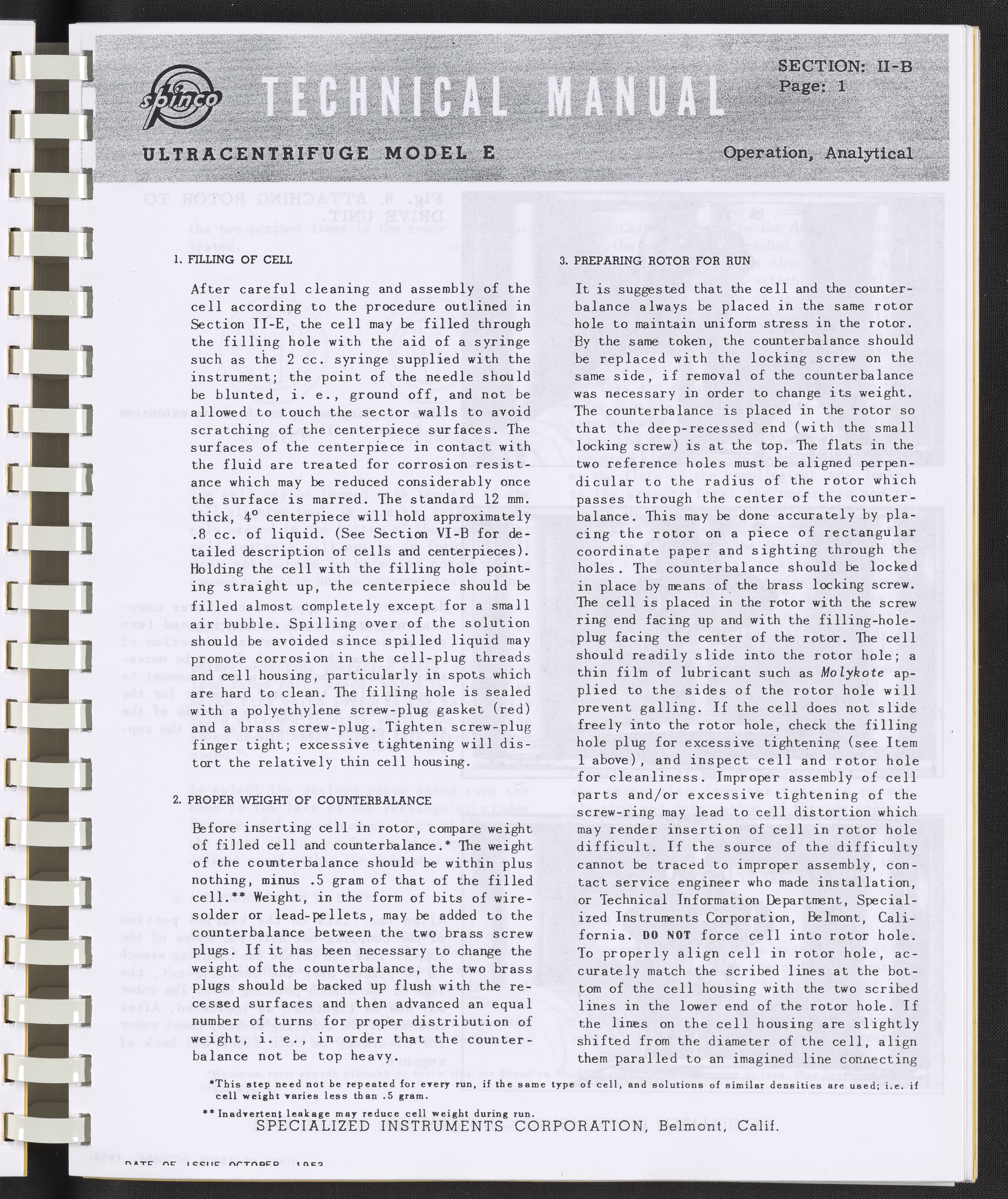 Beckman Instruments, Inc. Spinco Division. “Technical Manual, Spinco Ultracentrifuge Model E,” 1953–1954. Beckman Historical Collection, Box 121, Folder 9. Science History Institute. Philadelphia. https://digital.sciencehistory.org/works/hm50ts49m.