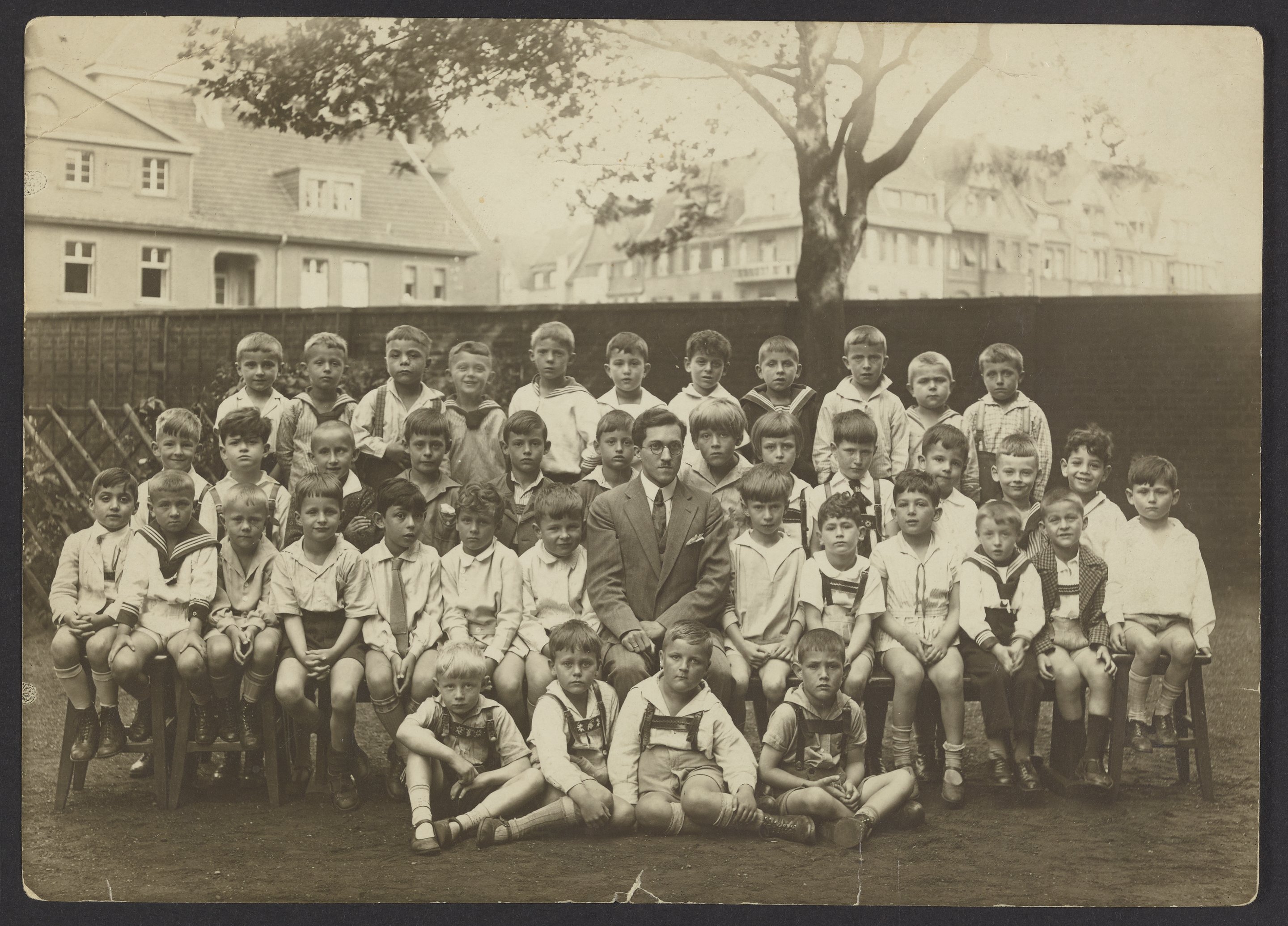 Small JPG1200 x 863px — 202 KBLarge JPG2880 x 2071px — 880 KBFull-sized JPG4356 x 3132px — 1.7 MBOriginal fileTIFF — 4356 x 3132px — 39.1 MBA group photograph of Kurt M. Mislow's (1923-2017) school class. Back of photograph reads "Kurti, 6-7 Jahre alt," suggesting that the photograph is from 1929-1930. Included is a photocopy of the photograph, with certain people labeled. Mislow is second to left, one row down.