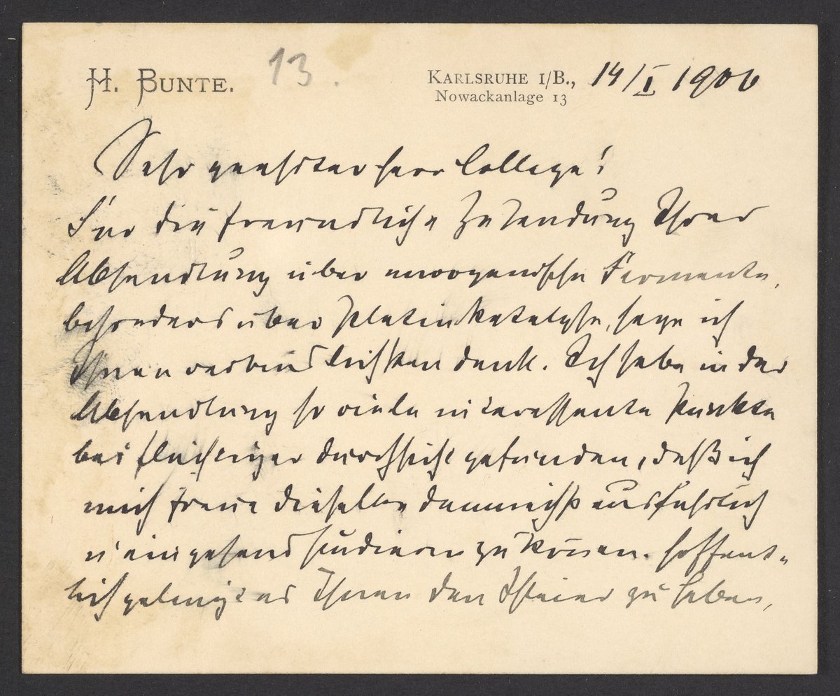 Letter from Hans Bunte to Georg Bredig, January 1900