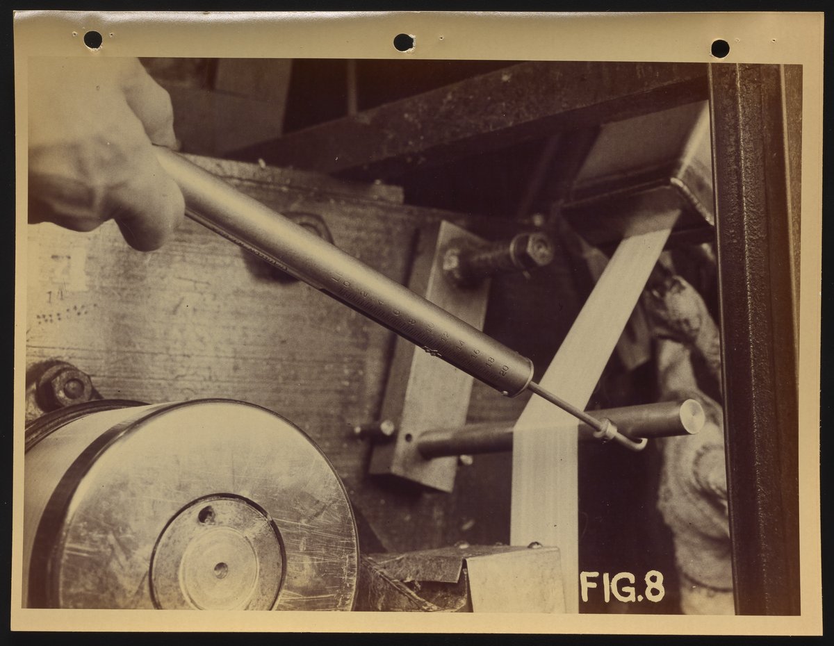 Measuring tension on drawing machine used for production of nylon
