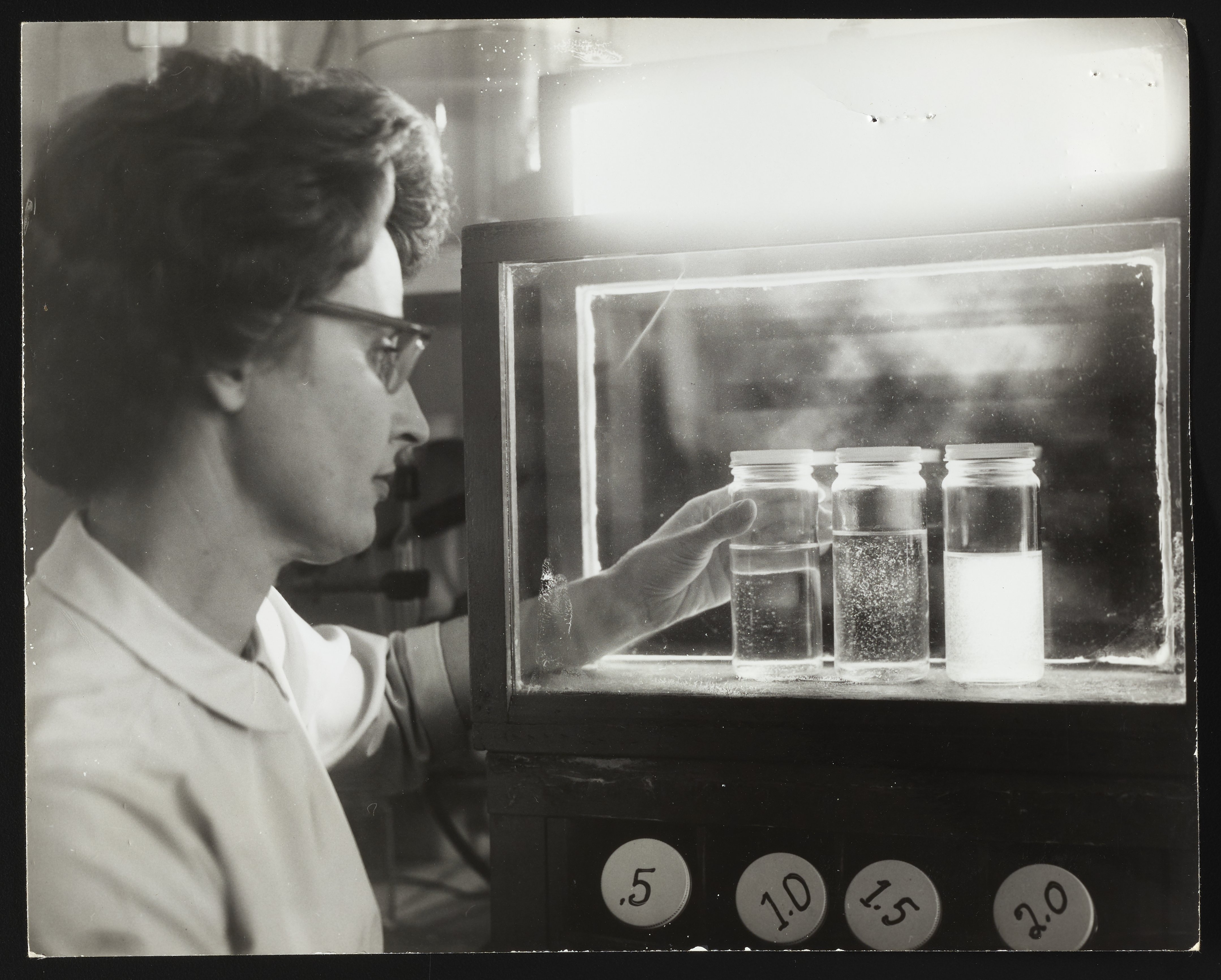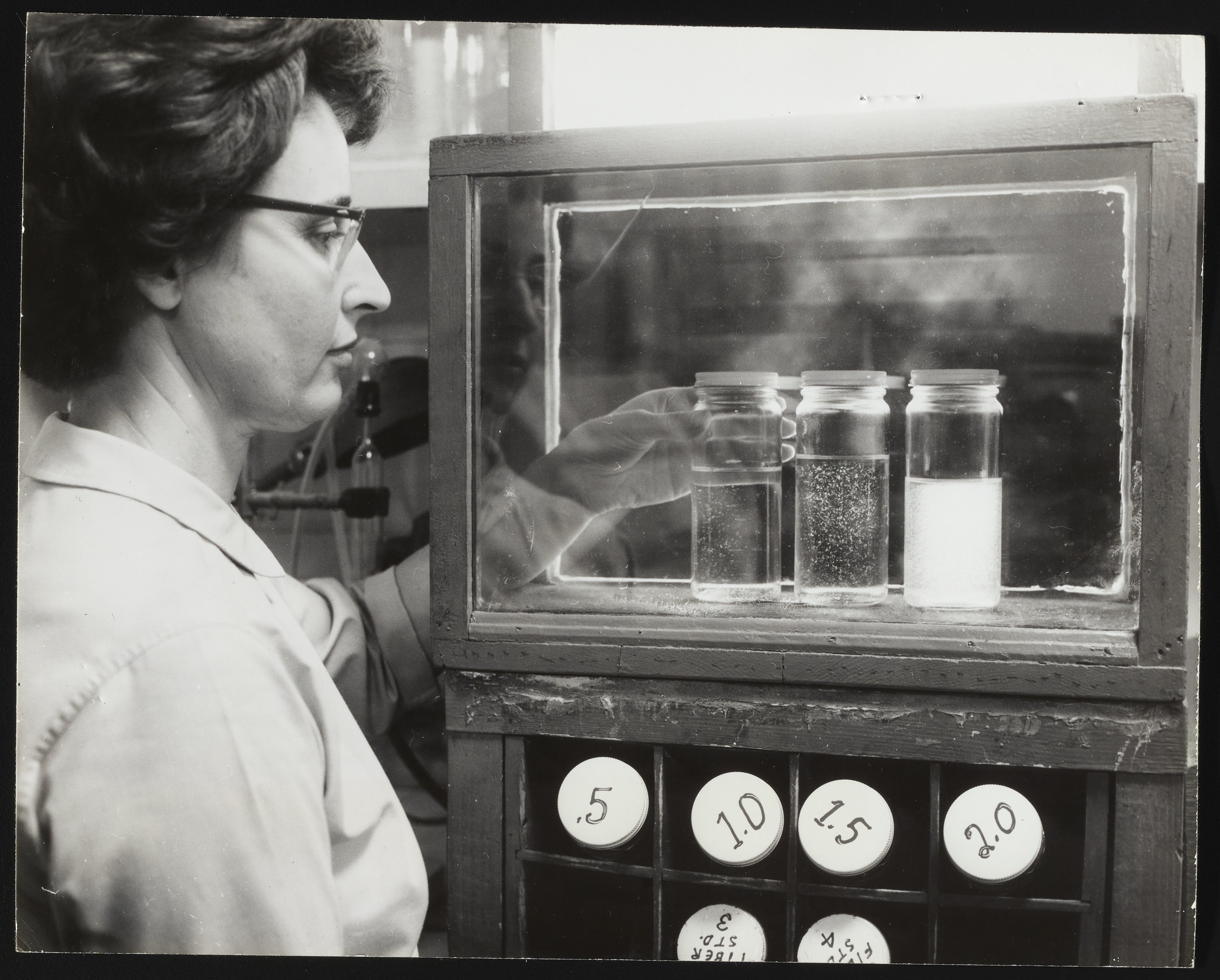 Hercules Incorporated. “Mildred Wells Testing Samples at Hercules Hopewell Plant,” November 1961. Photographs from the Records & Ephemera of Hercules Incorporated, Box 1, Folder 38. Science History Institute. Philadelphia. https://digital.sciencehistory.org/works/hq37vp273.
