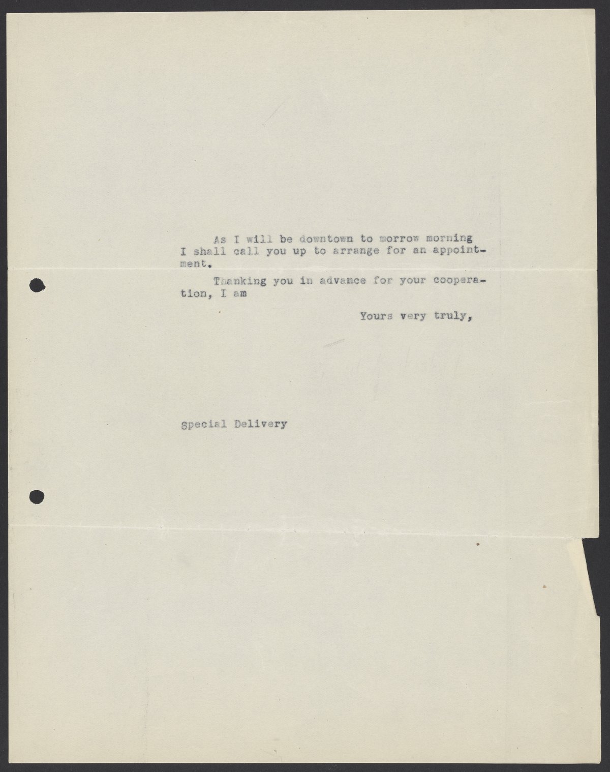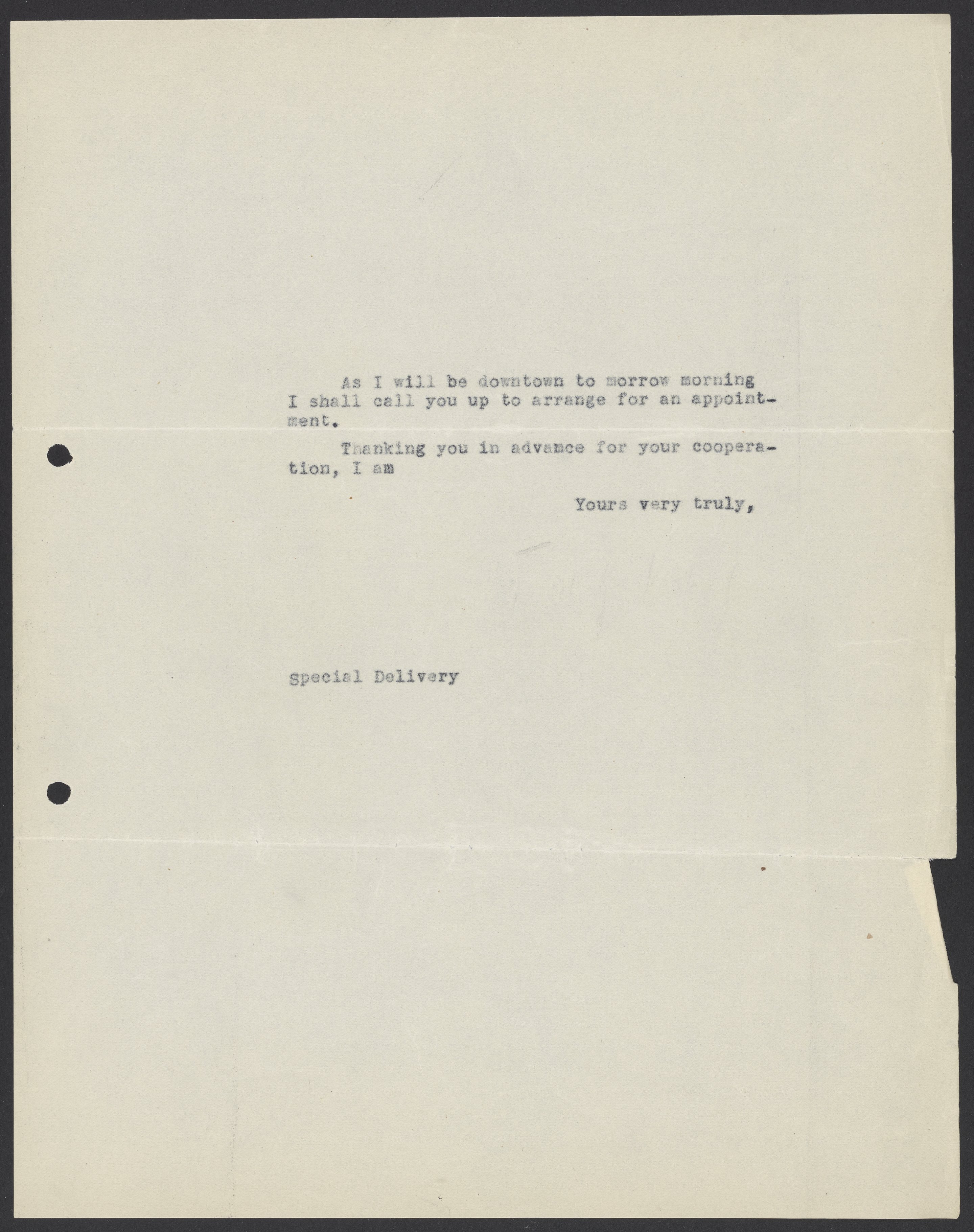 Max Bredig (1902-1977) writes to Karl Boschwitz to tell him he will call him the following day to make an appointment.