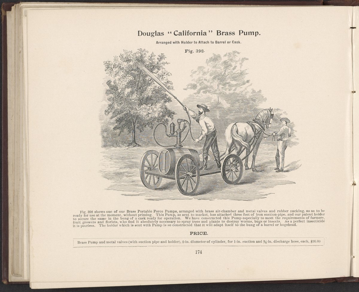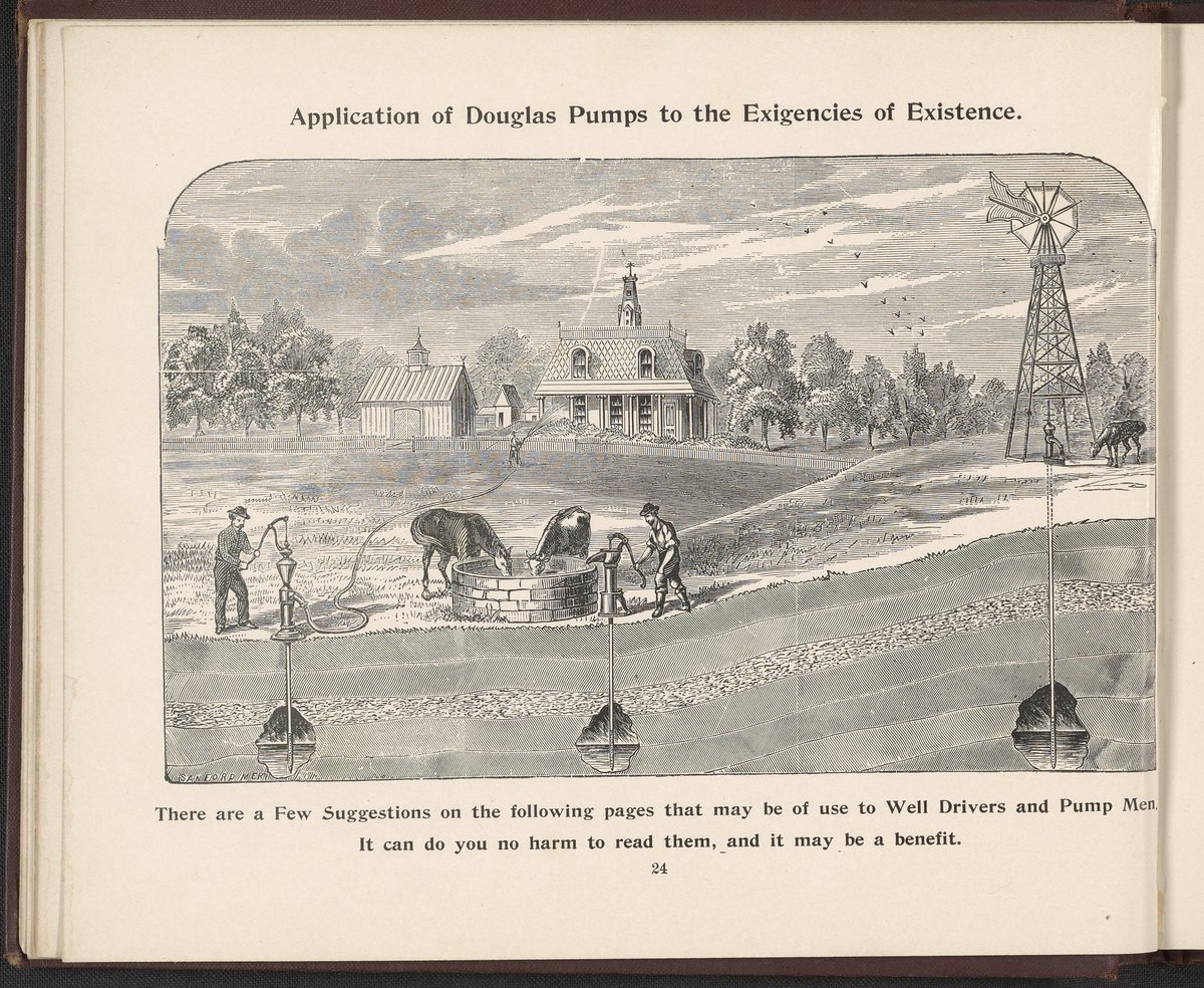 Small JPG1200 x 1006px — 232 KBLarge JPG2880 x 2414px — 1.3 MBFull-sized JPG3519 x 2950px — 1.8 MBOriginal fileTIFF — 3519 x 2950px — 29.8 MBIllustrated catalogue for Victorian water pumps, horsepower pumps, windmill pumps, and hydraulic rams. Hydraulic rams were considered one of the greatest technical innovations of the 19th-Century allowing farms and rural areas to pump water, substantially reducing the back-breaking work of lugging water up slopes or hills. The W. & B. Douglas Company was a foundry and machine shop from 1839 until 1842 when they invented a revolving stand pump. W. & B. Douglass was also an early innovator in developing fire hydrants and small fire fighting engines, as well as pumps used by fruit orchards and growers in spraying trees and plants. Digitized content includes select illustrations.