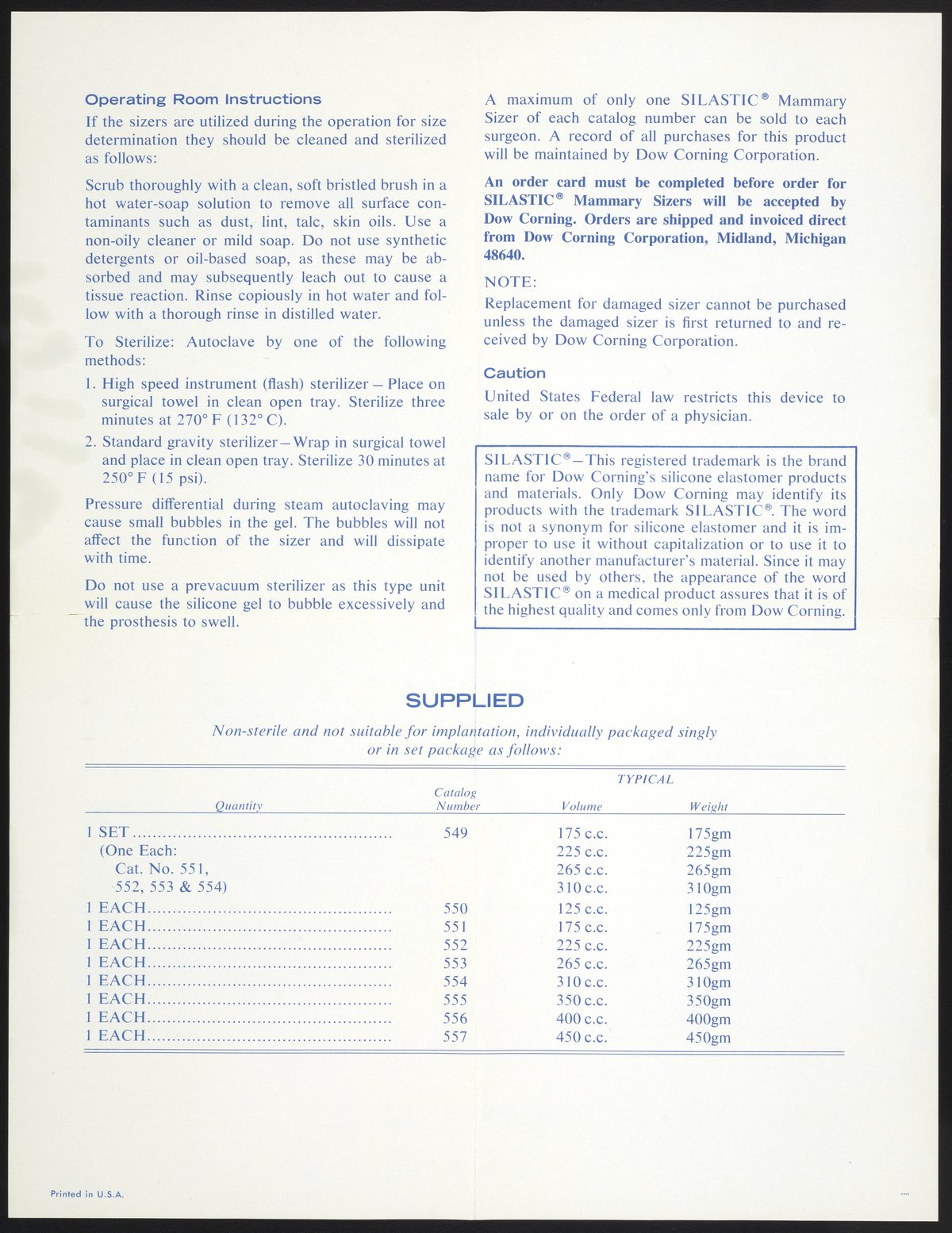 SILASTIC demonstration mammary sizer implant seamless design 350 CC