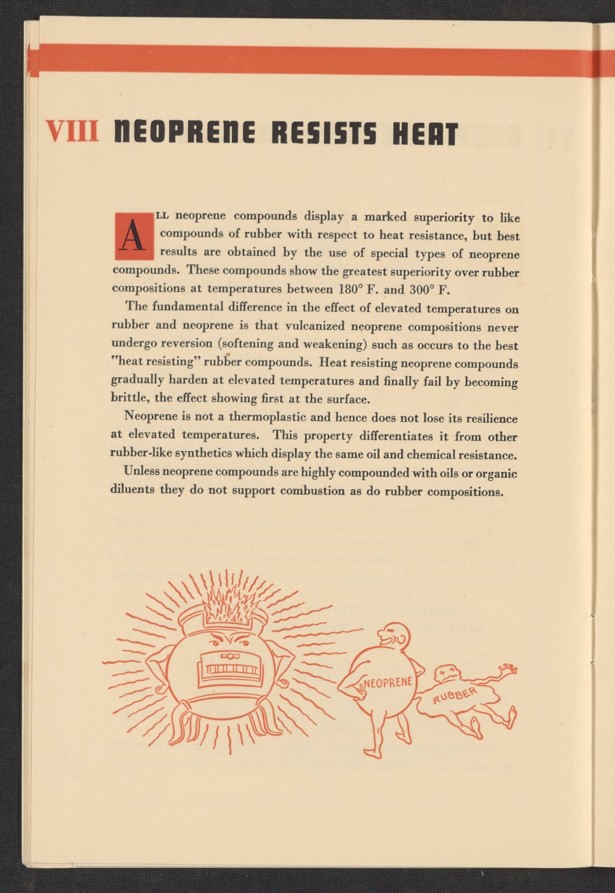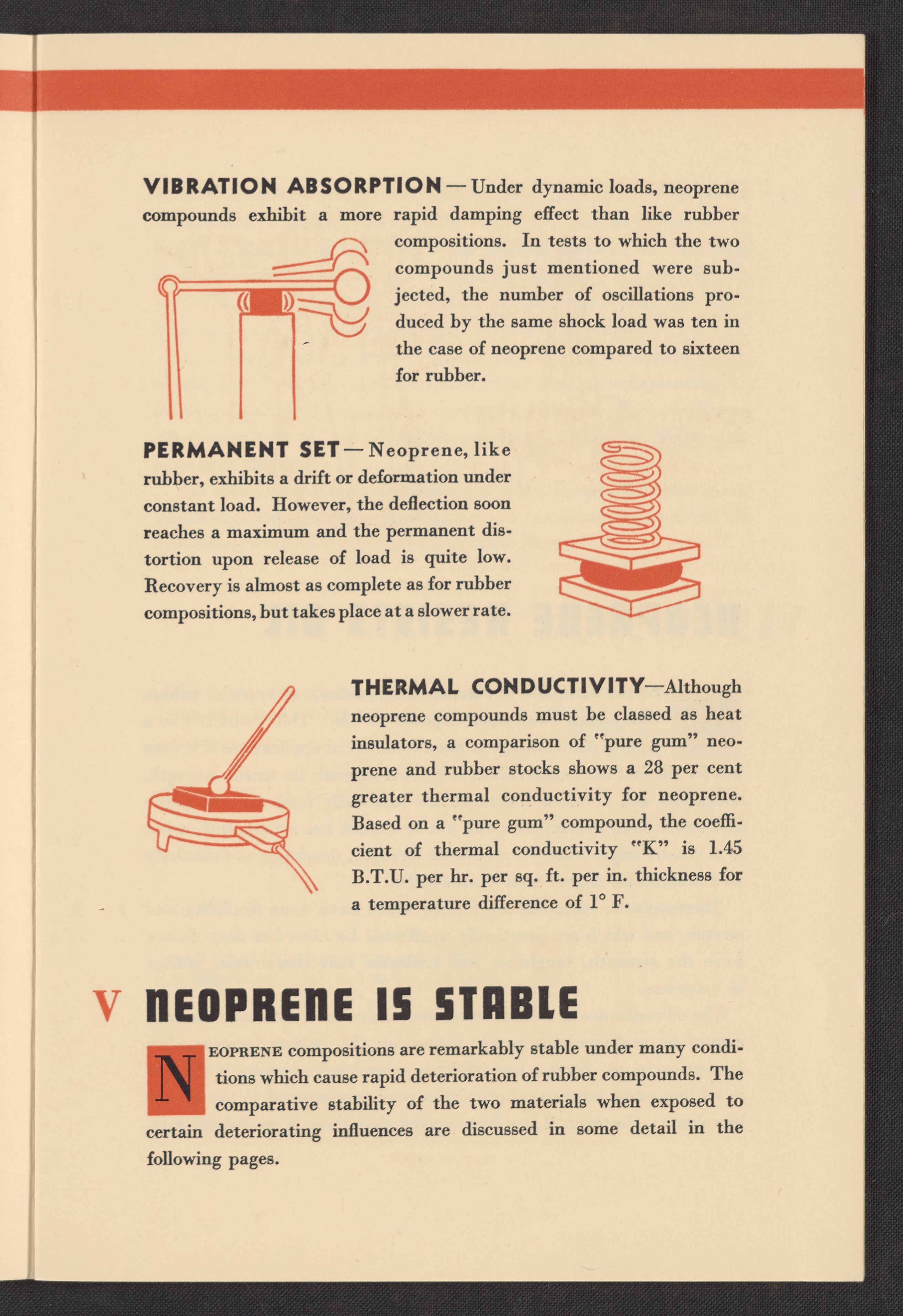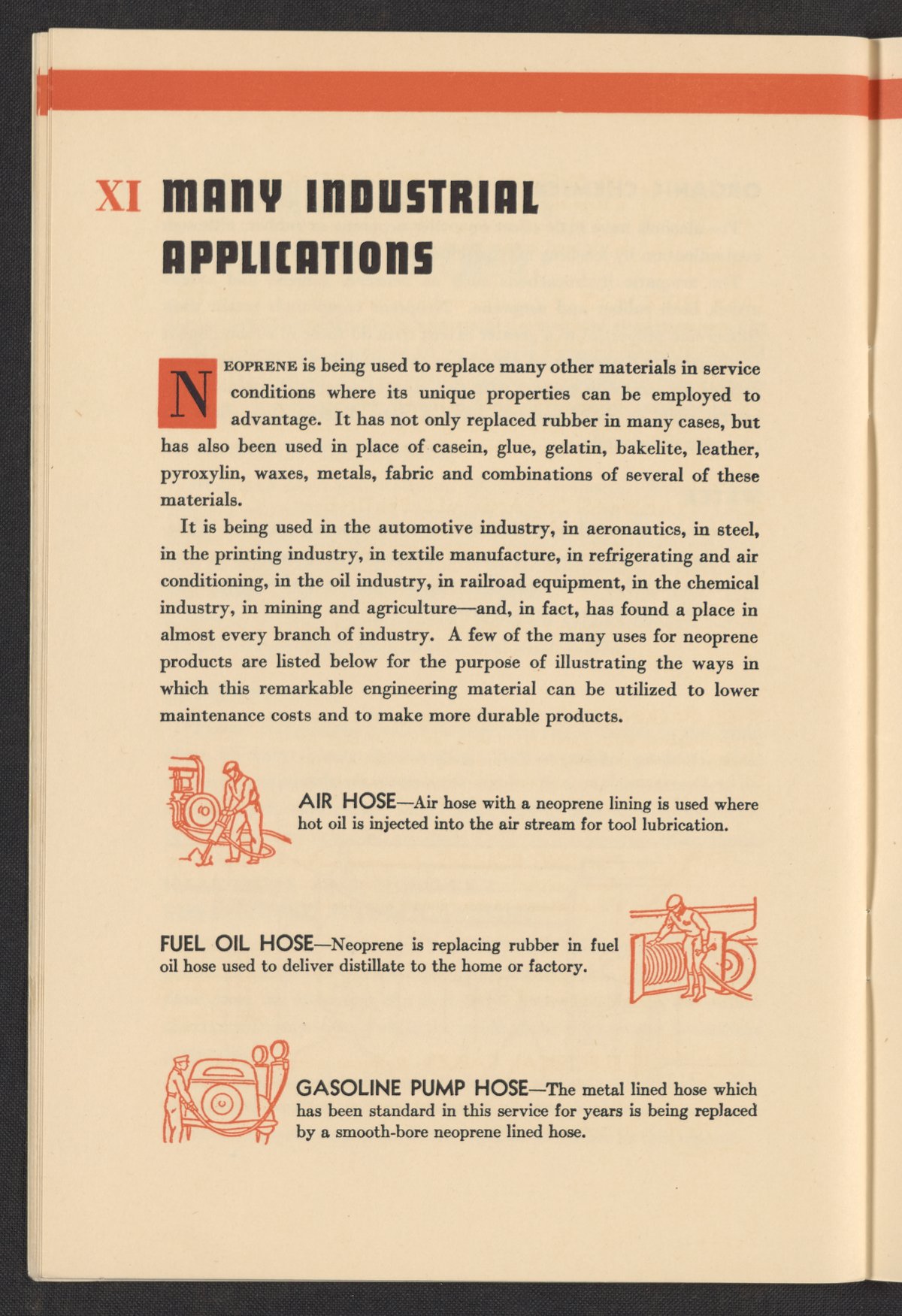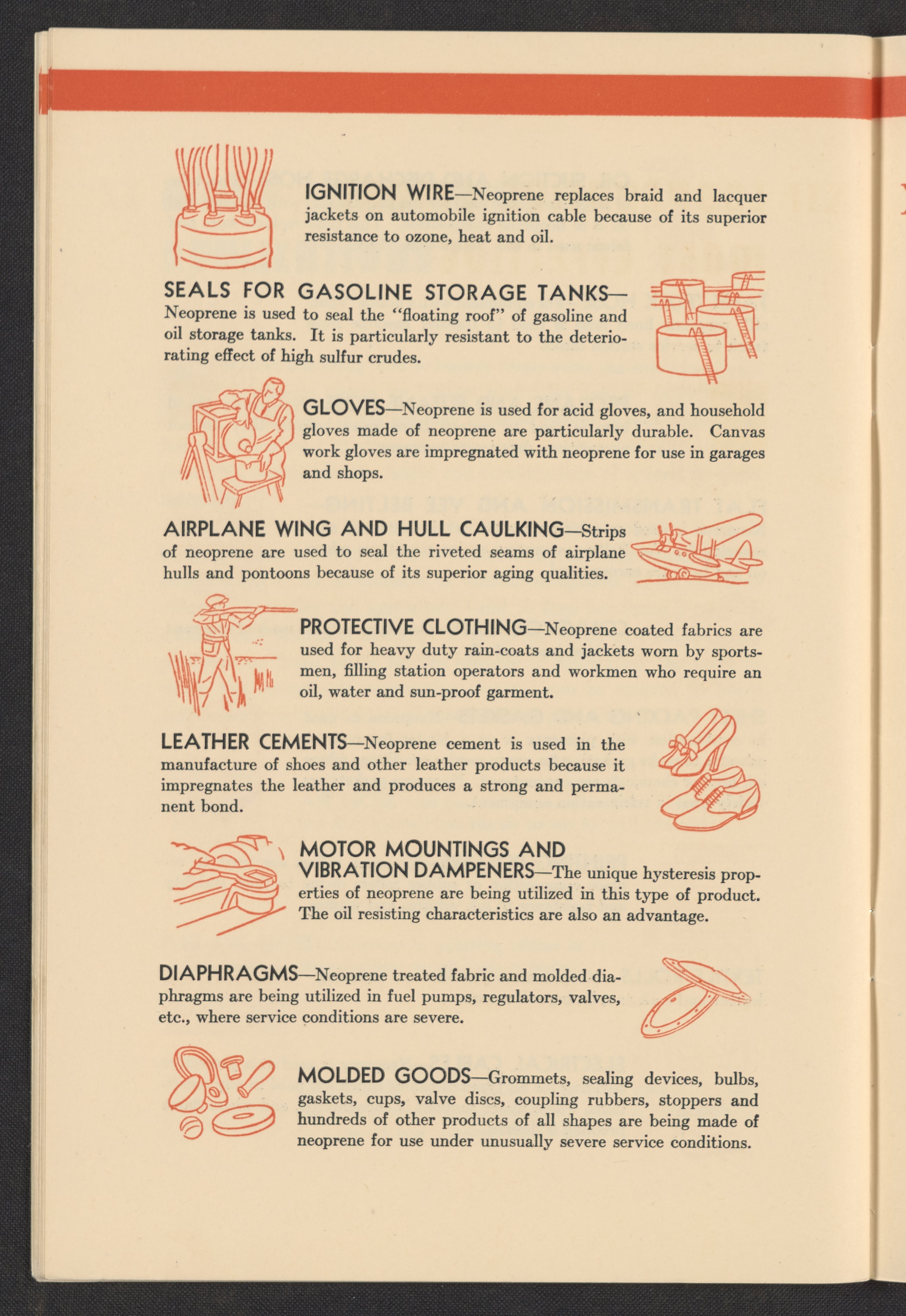 E.I. du Pont de Nemours & Company. Rubber Chemicals Division. “Neoprene A Remarkable Engineering Material.” Wilmington, Delaware, 1943. TS1925 .D87 1943. Science History Institute. Philadelphia. https://digital.sciencehistory.org/works/hw7347x.