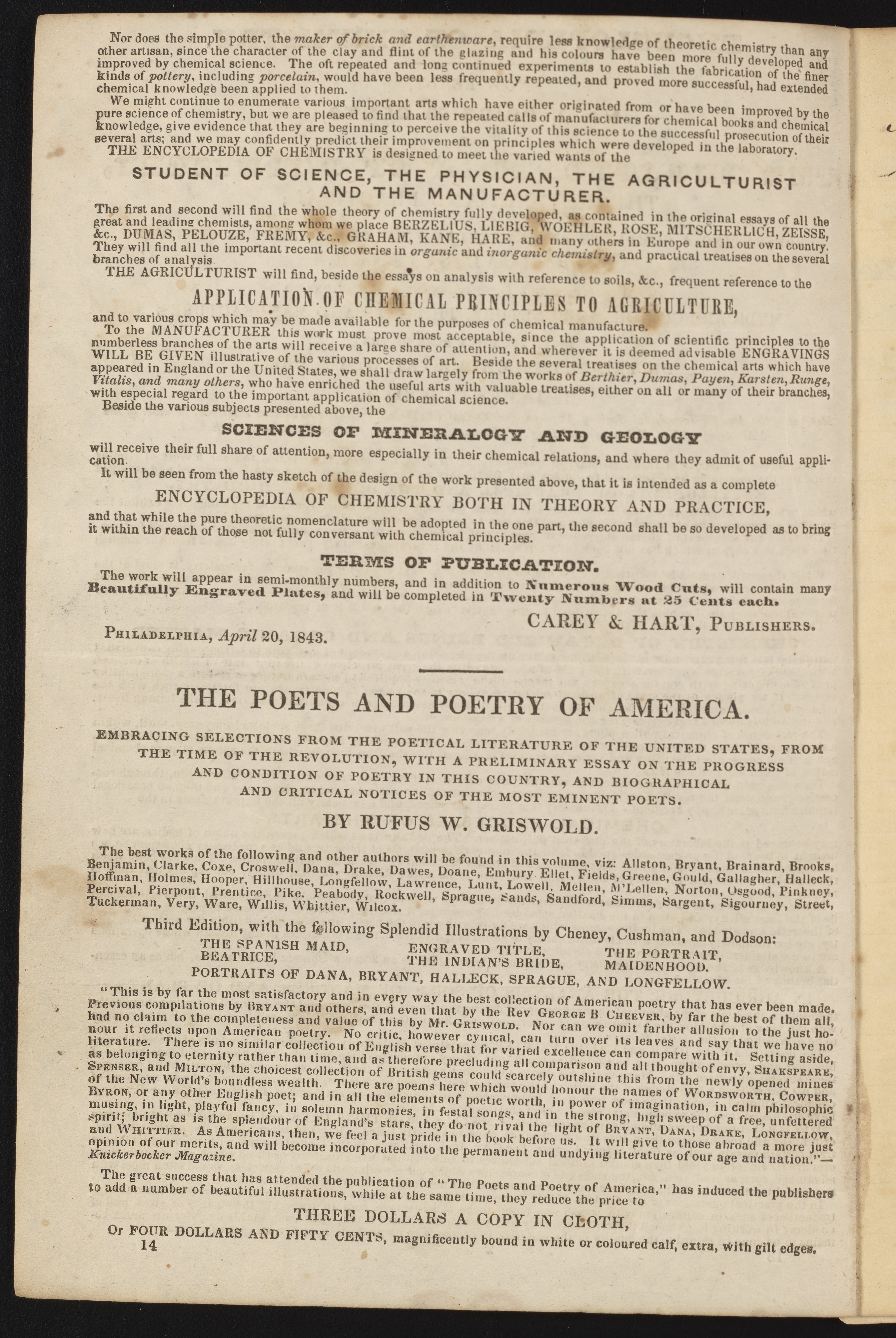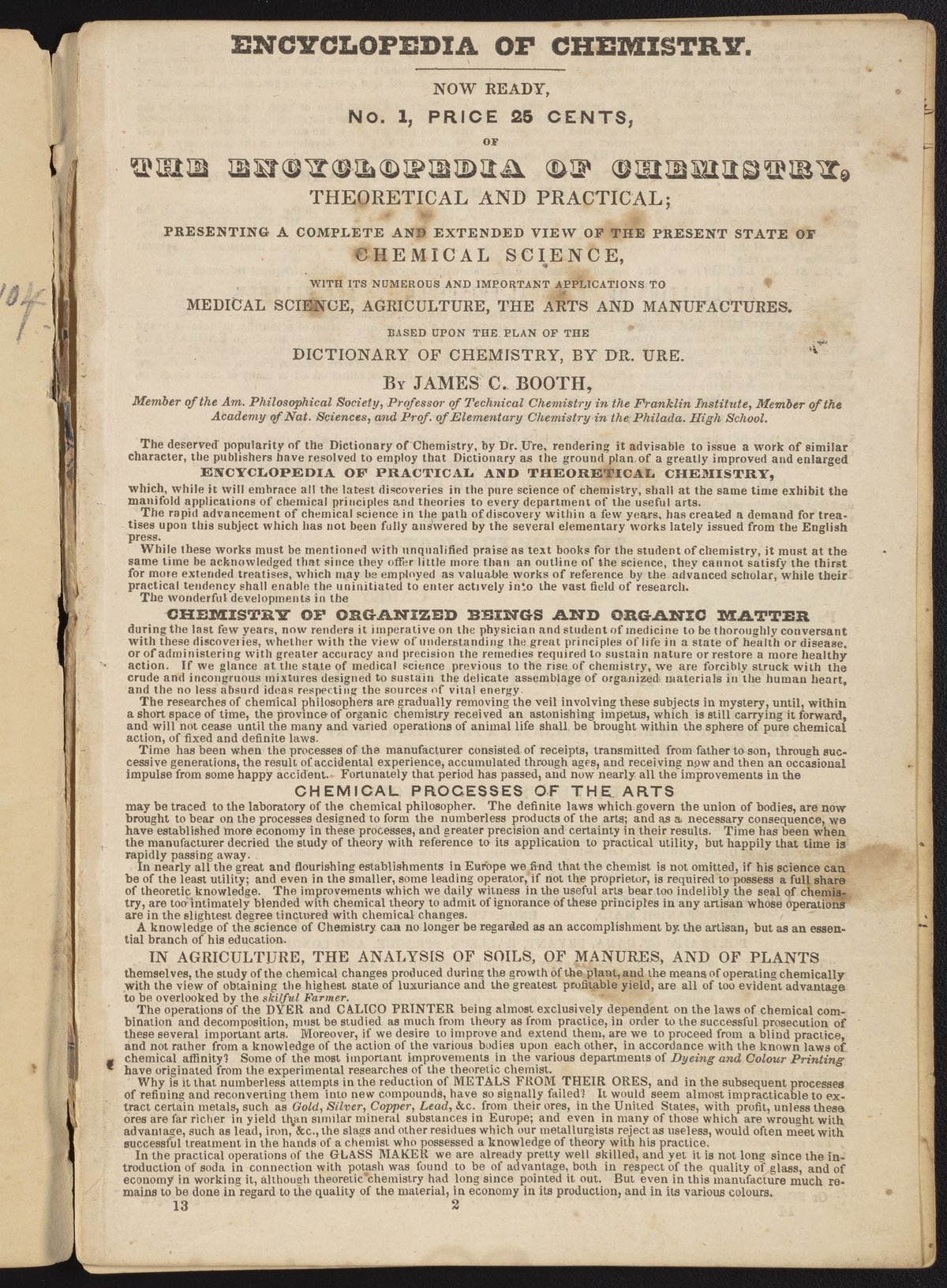 “Notebook Containing an Advertisement for The Encyclopedia of Chemistry, Theoretical and Practical,” 1850. Papers of James Curtis Booth, Box 8, Folder 7. Science History Institute. Philadelphia. https://digital.sciencehistory.org/works/hyq5wkd.