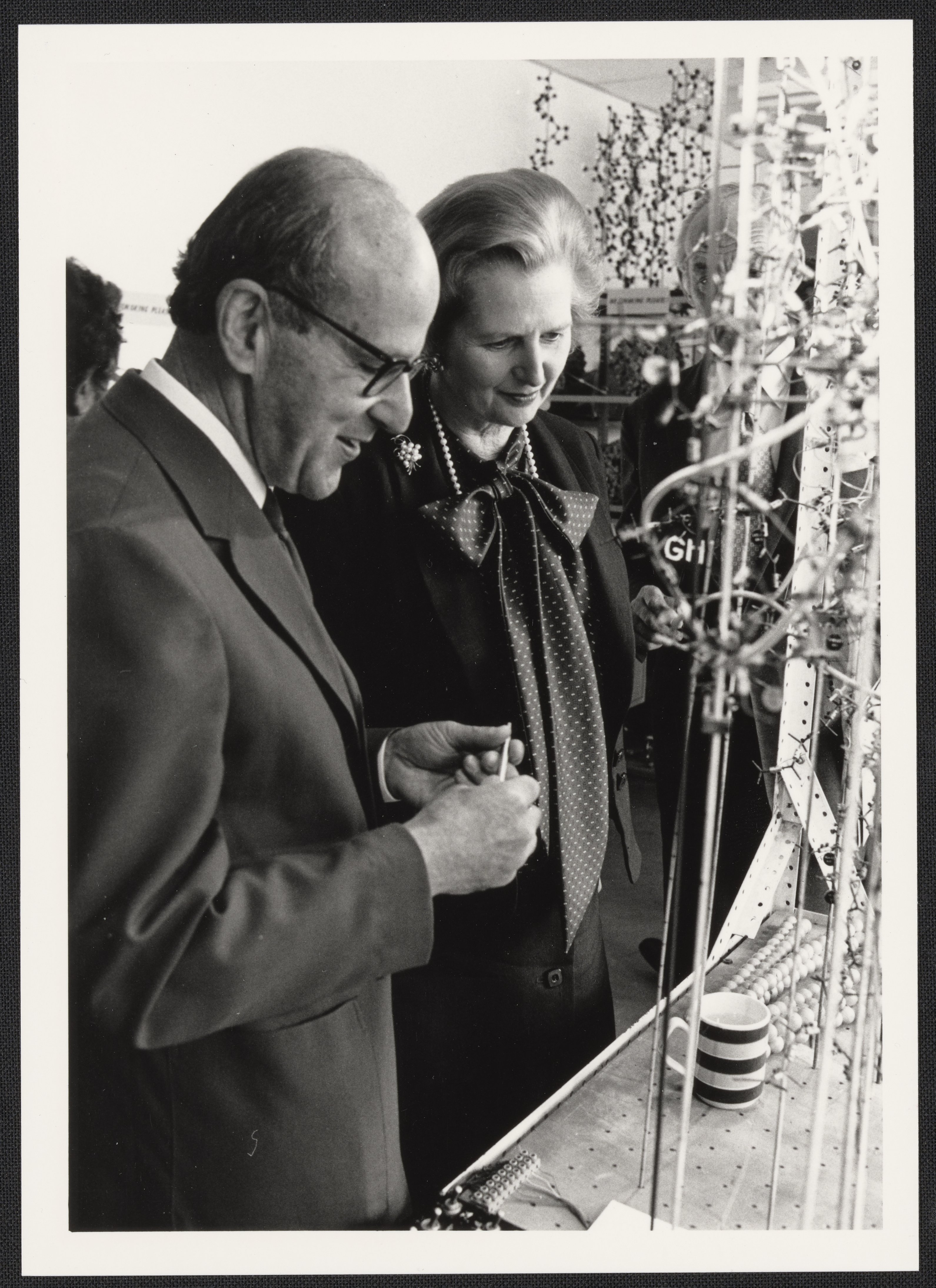 Margaret Thatcher and Max Perutz in the Laboratory of Molecular Biology Model Room, 1980.