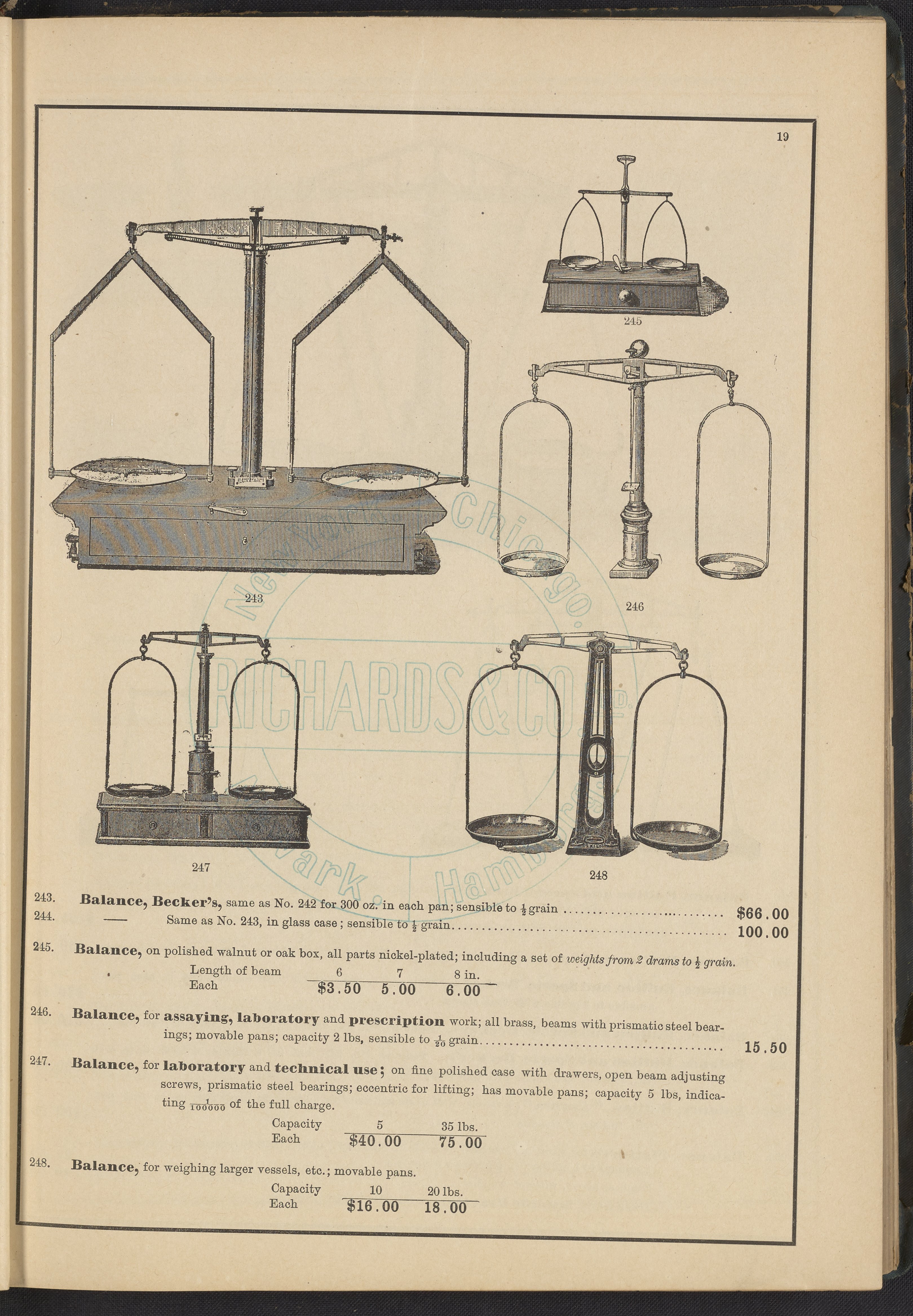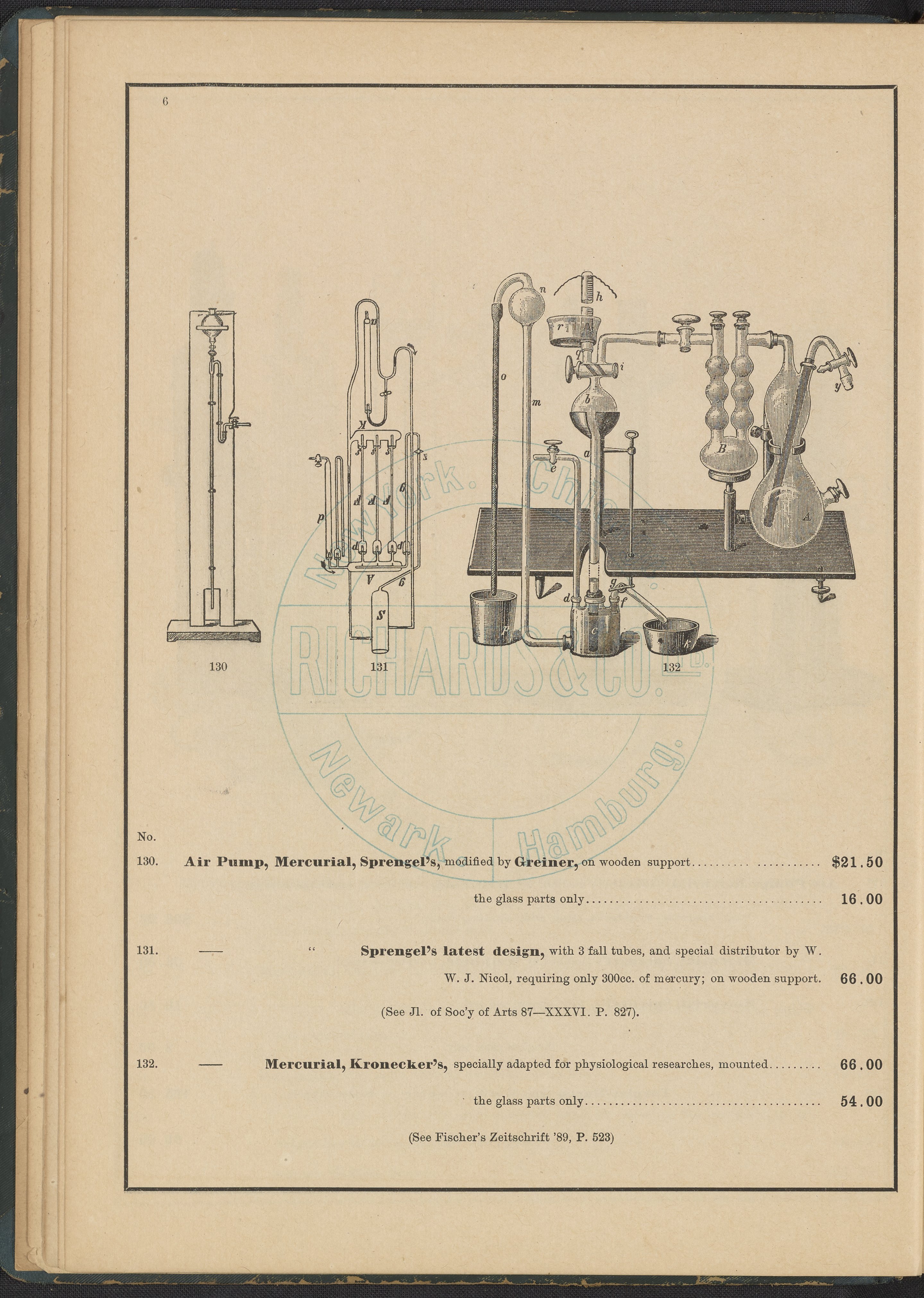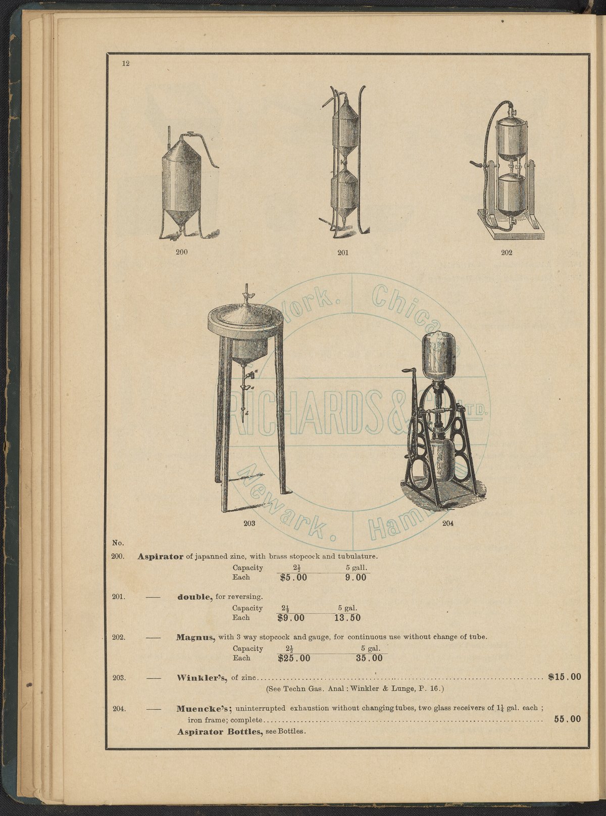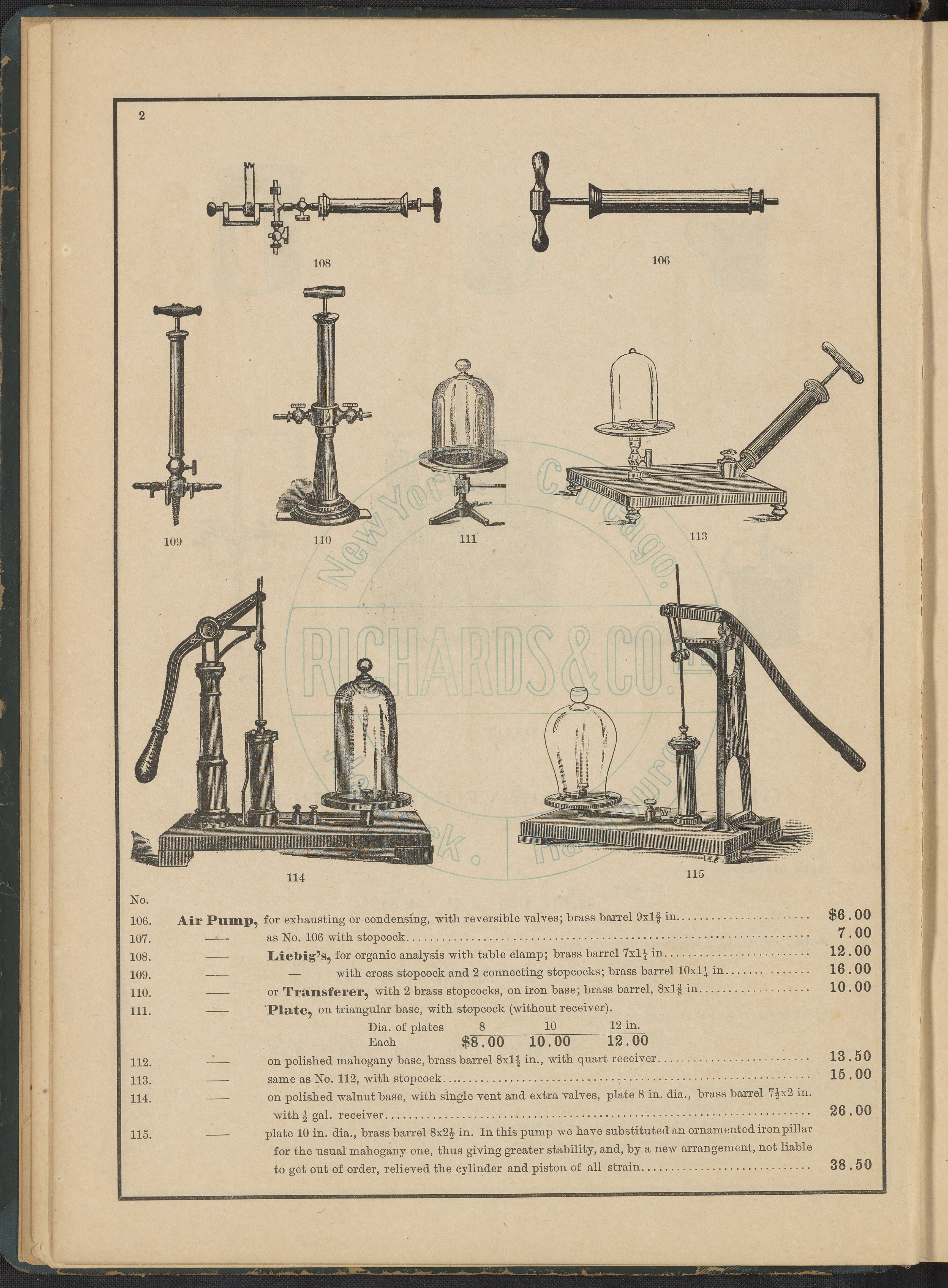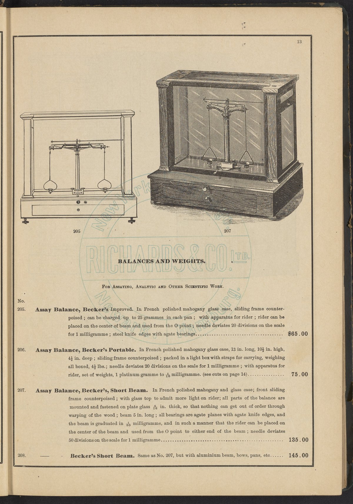 Richards & Co. (New York, N.Y.). “Illustrated Catalogue of Chemical and Physical Apparatus and Assay Goods, Manufactured and Imported by Richards & Co., Limited.” New York, New York: Richards & Co. (New York, N.Y.), 1890–1899. Q184 .R53. Science History Institute. Philadelphia. https://digital.sciencehistory.org/works/ip5xqsz.