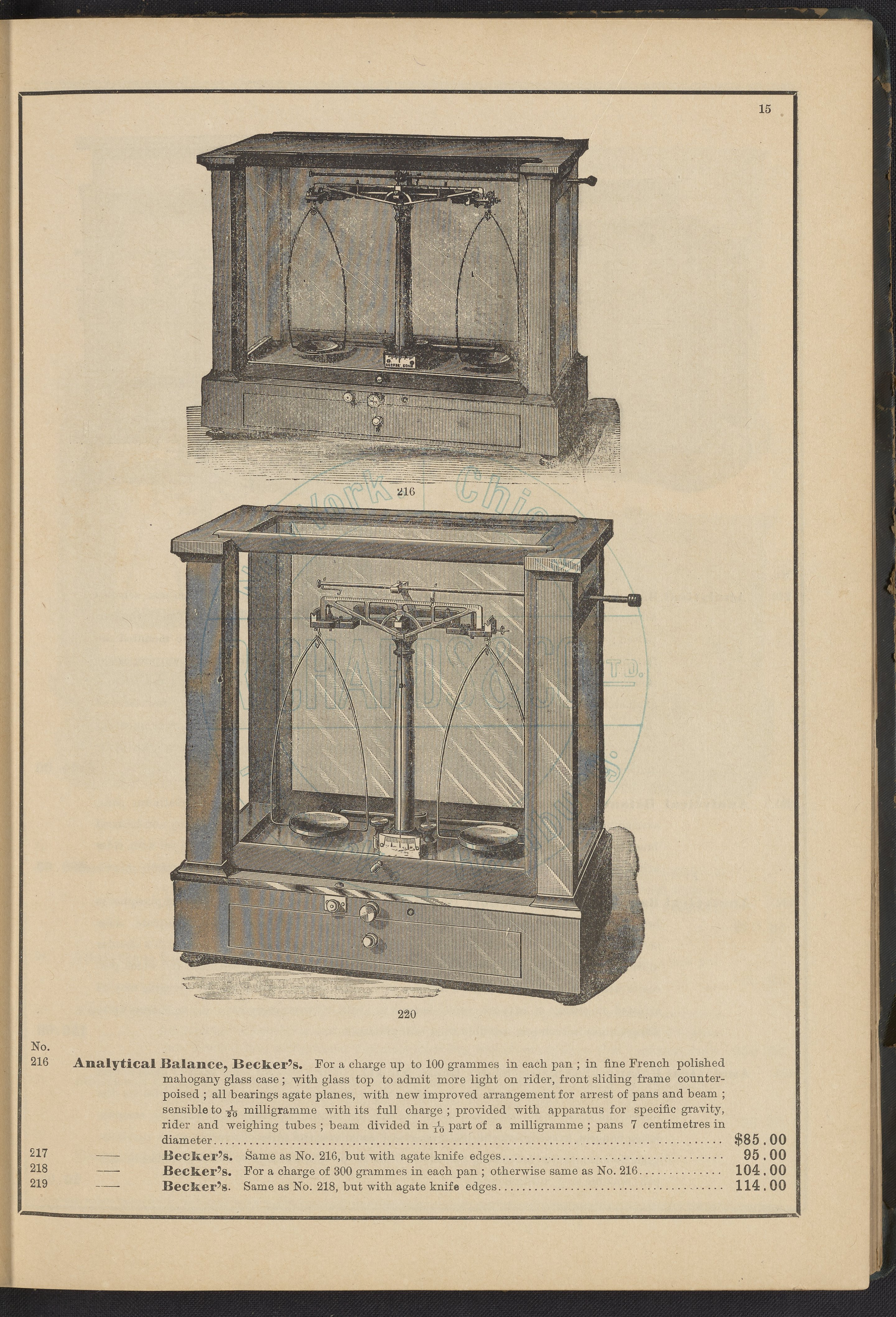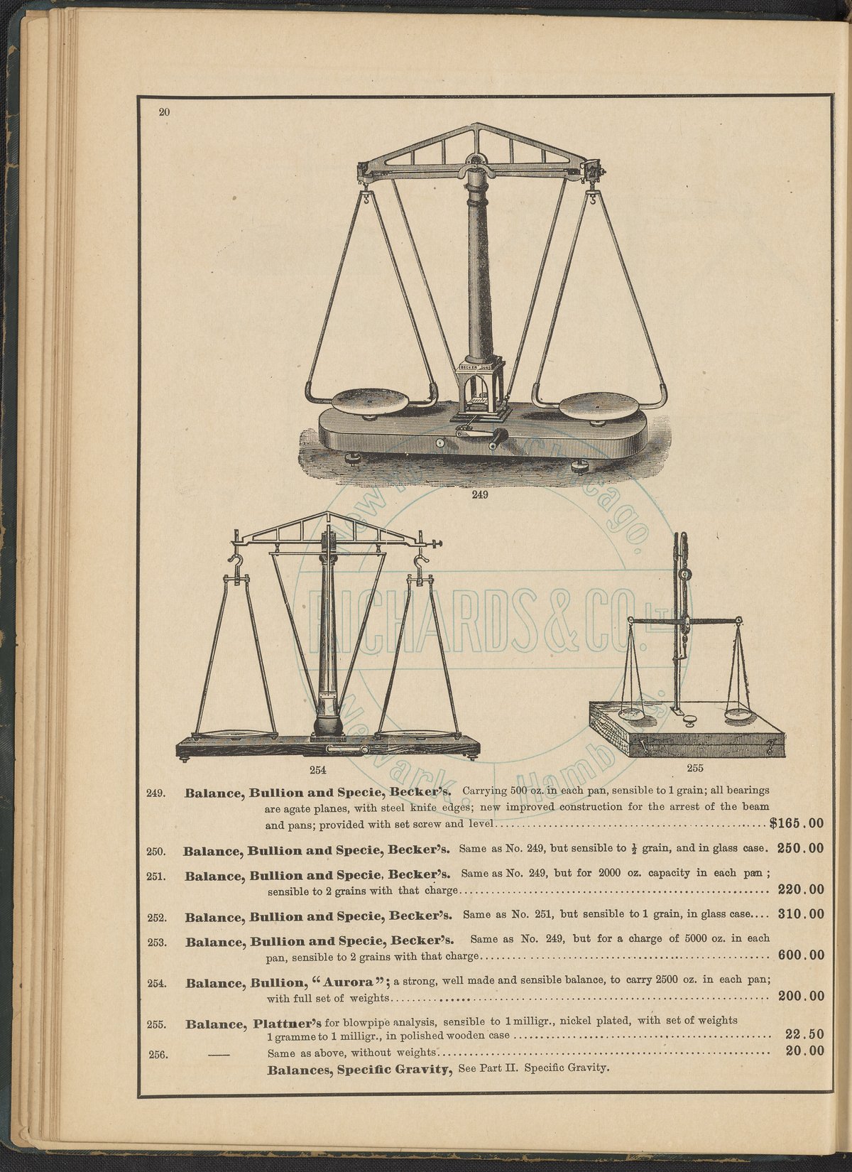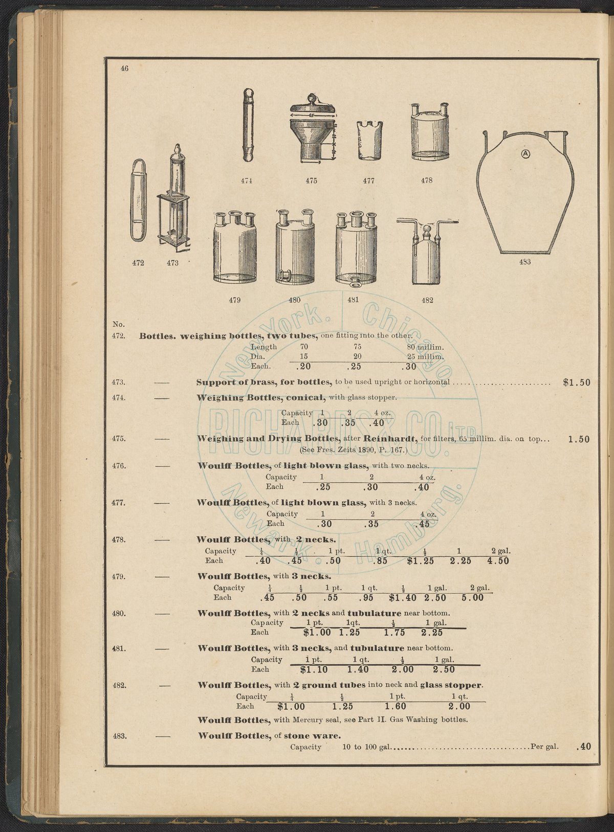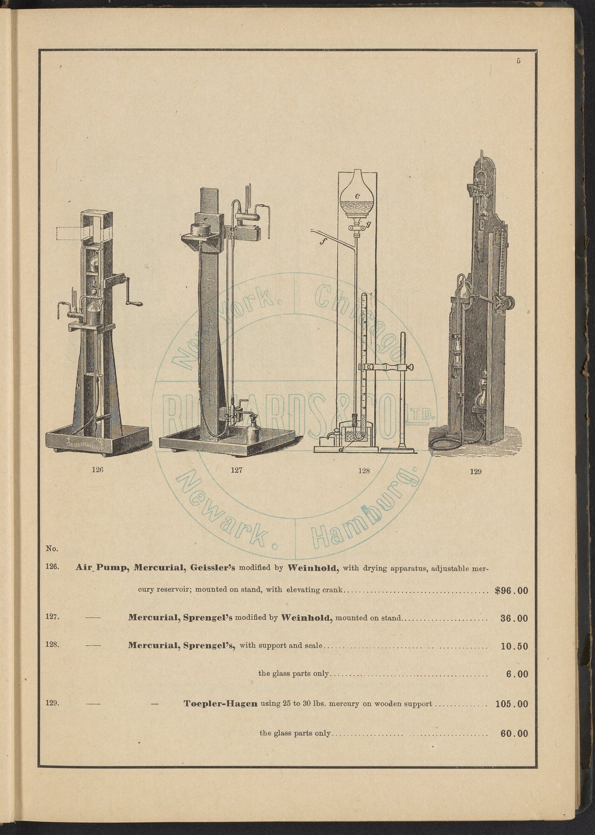 Richards & Co. (New York, N.Y.). “Illustrated Catalogue of Chemical and Physical Apparatus and Assay Goods, Manufactured and Imported by Richards & Co., Limited.” New York, New York: Richards & Co. (New York, N.Y.), 1890–1899. Q184 .R53. Science History Institute. Philadelphia. https://digital.sciencehistory.org/works/ip5xqsz.