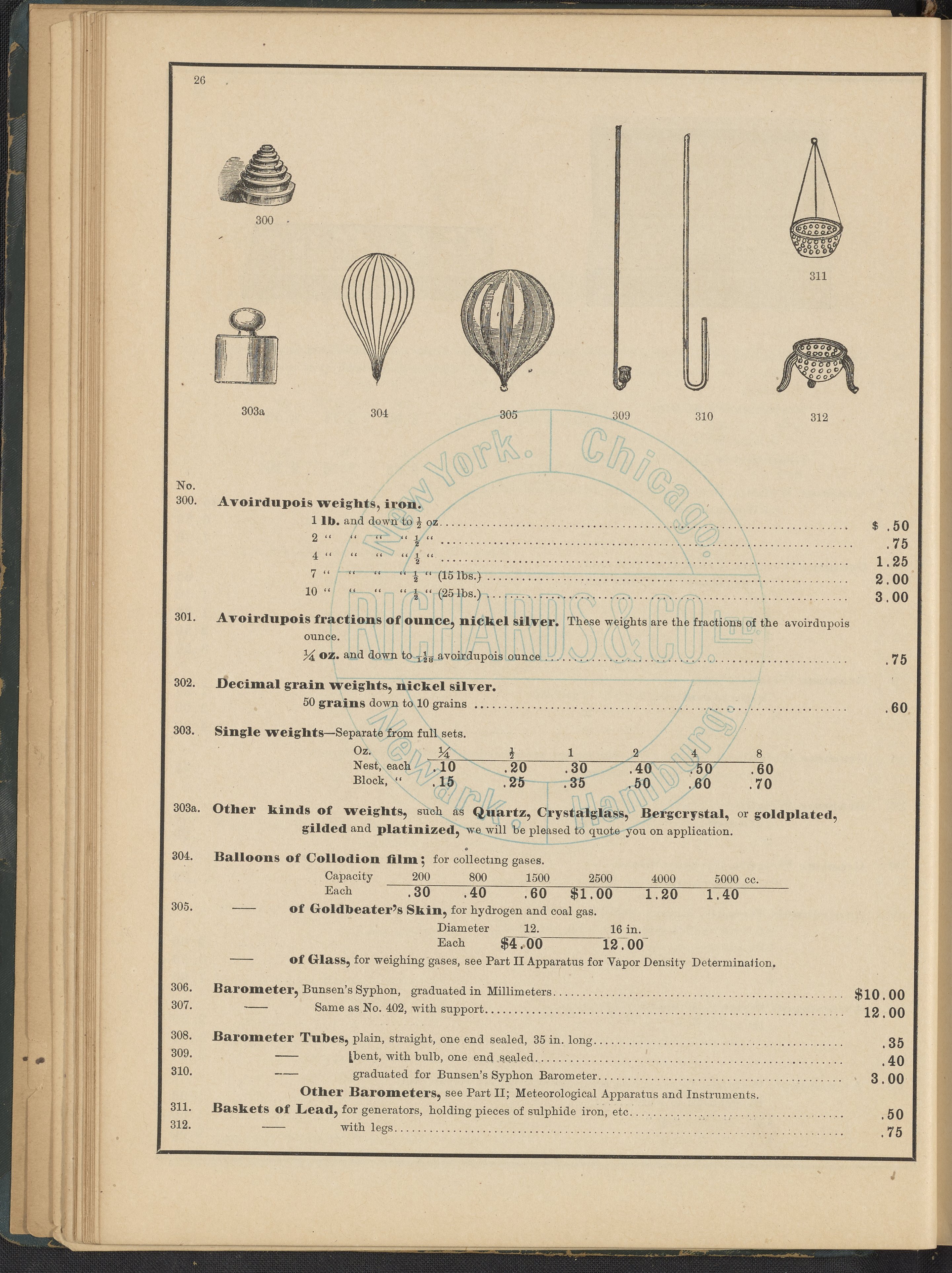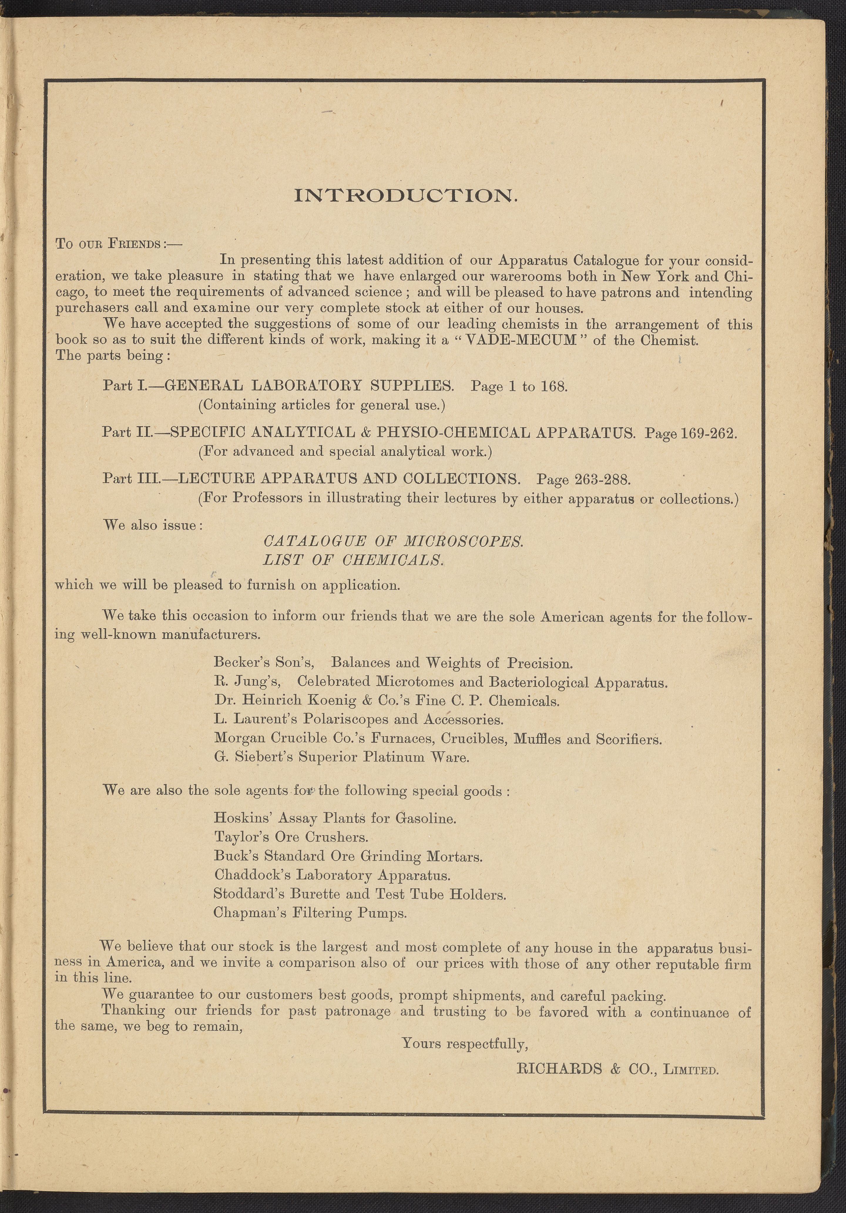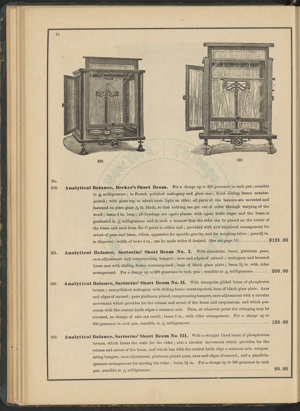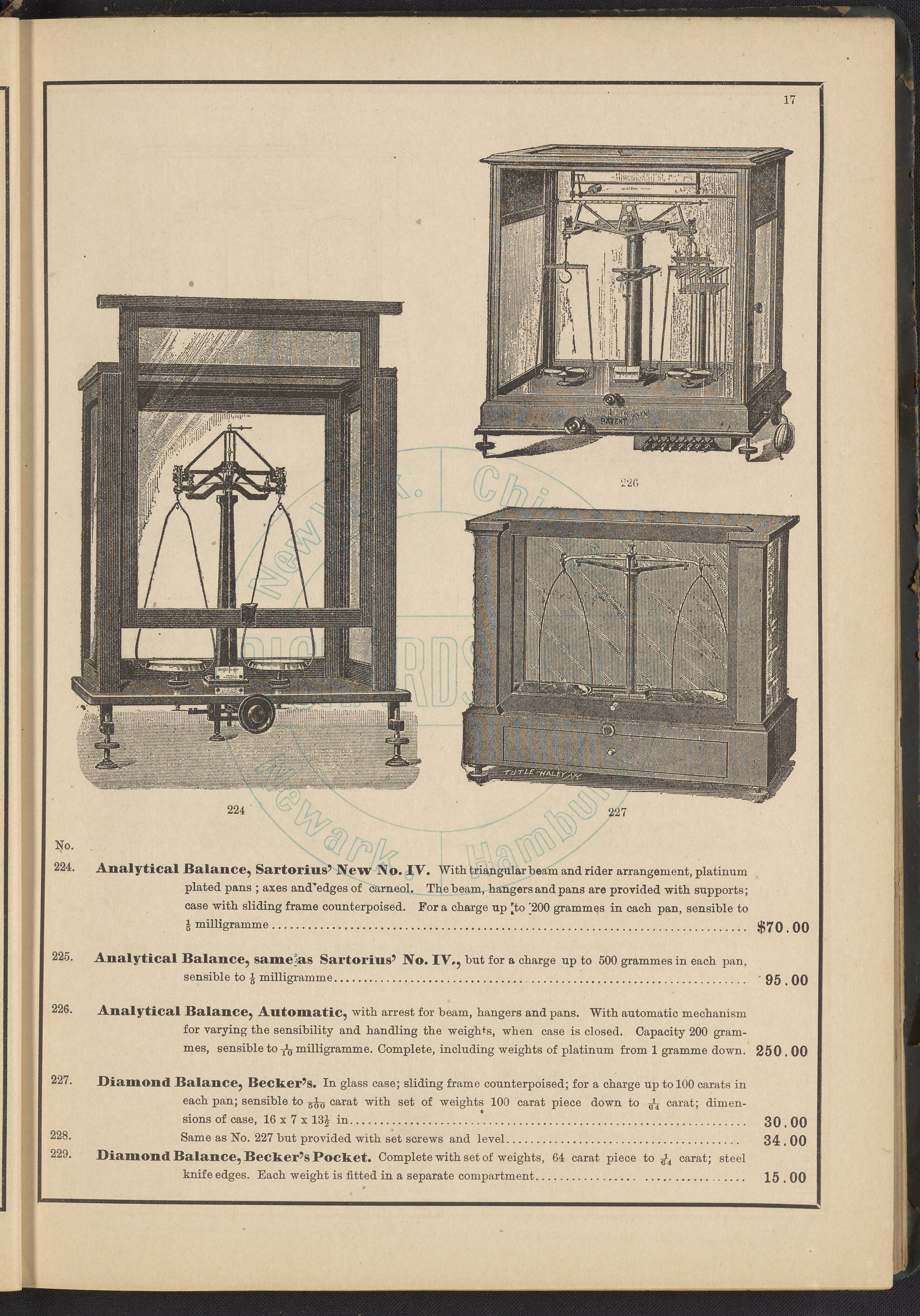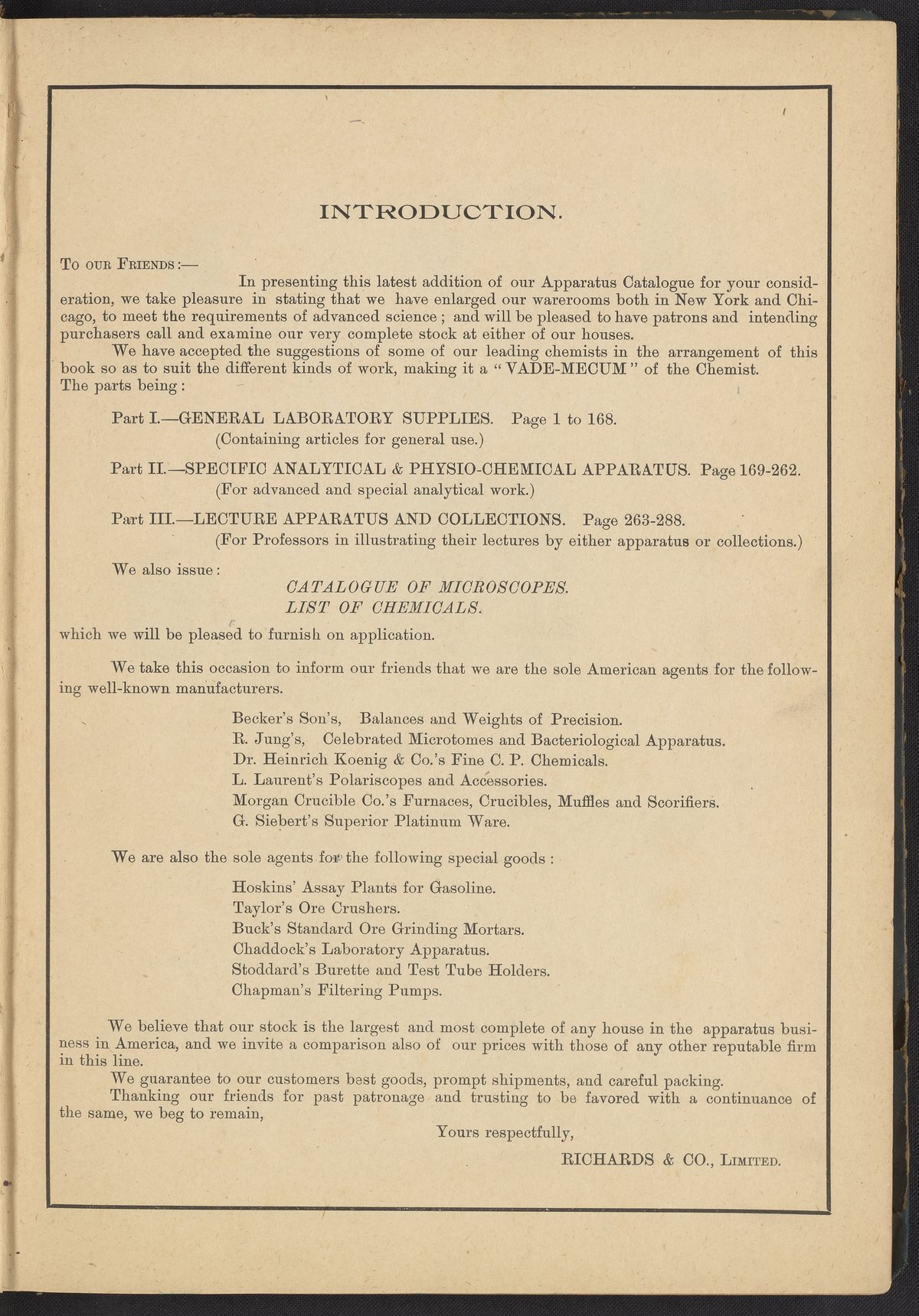 Richards & Co. (New York, N.Y.). “Illustrated Catalogue of Chemical and Physical Apparatus and Assay Goods, Manufactured and Imported by Richards & Co., Limited.” New York, New York: Richards & Co. (New York, N.Y.), 1890–1899. Q184 .R53. Science History Institute. Philadelphia. https://digital.sciencehistory.org/works/ip5xqsz.