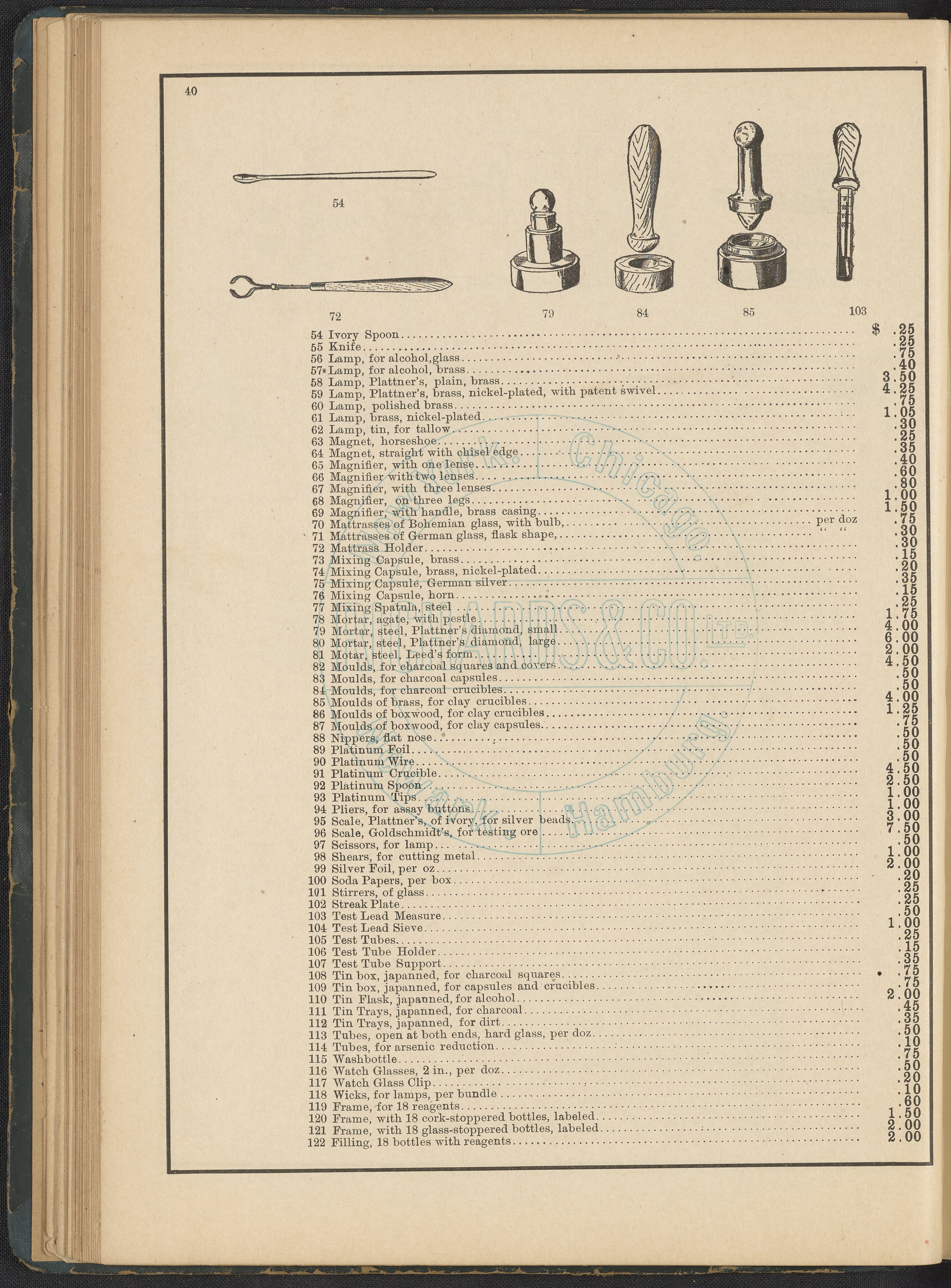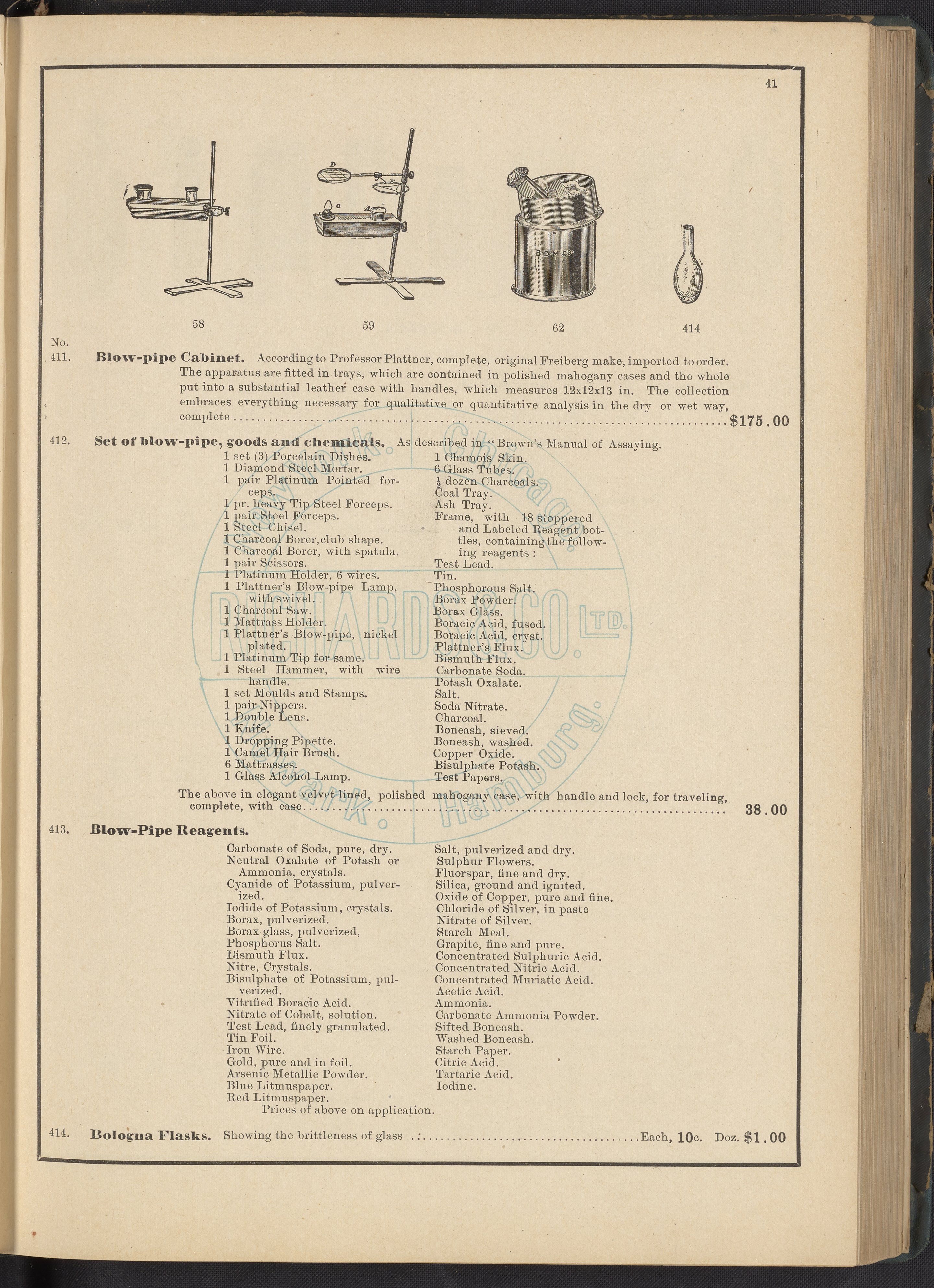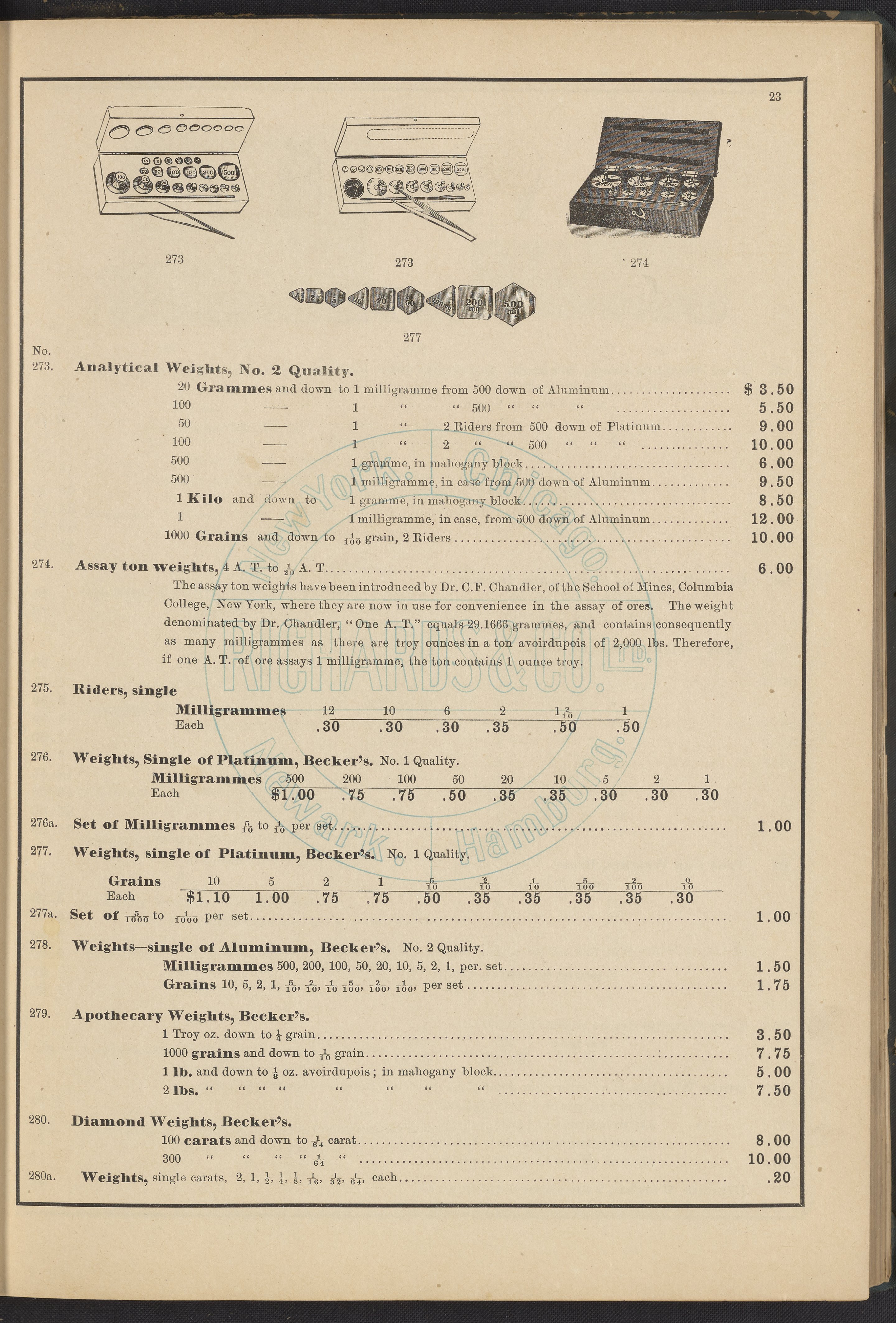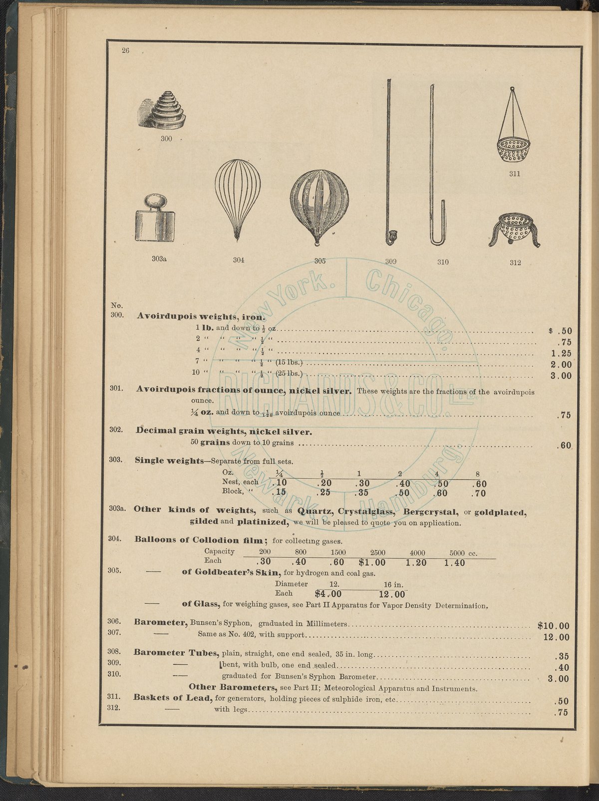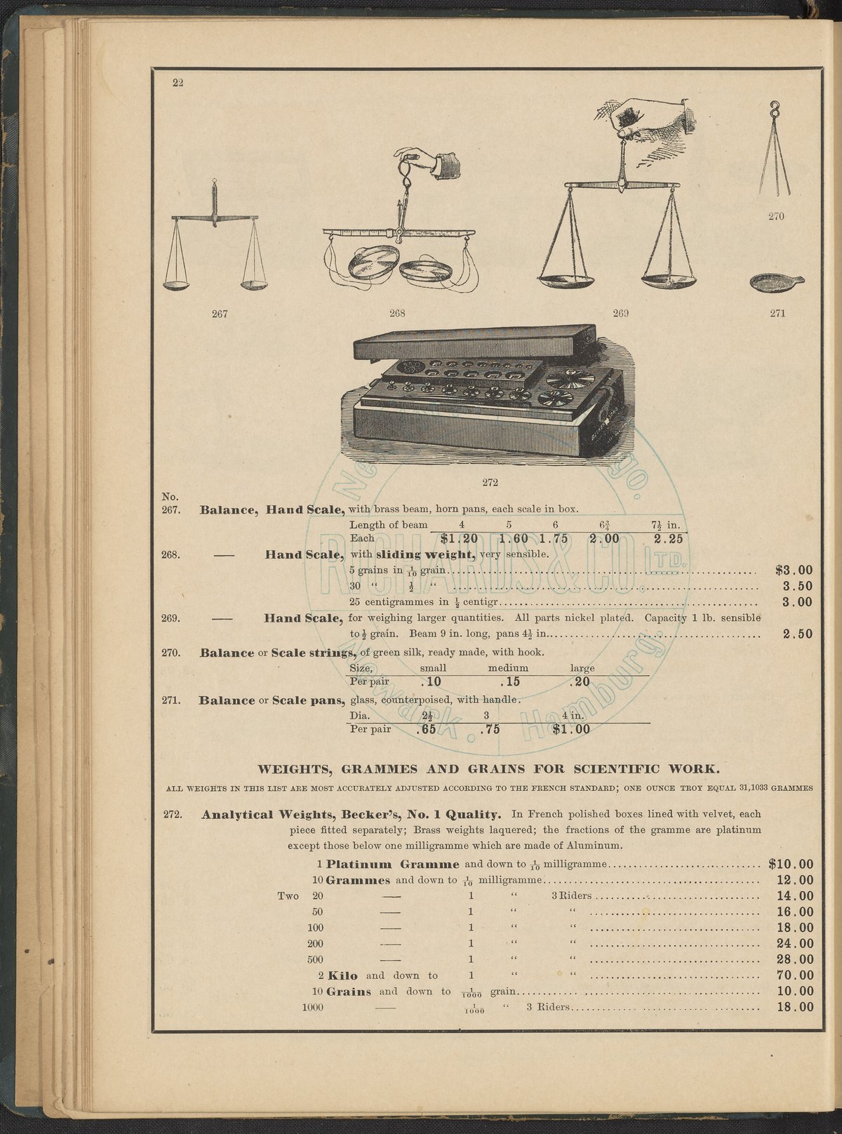 Richards & Co. (New York, N.Y.). “Illustrated Catalogue of Chemical and Physical Apparatus and Assay Goods, Manufactured and Imported by Richards & Co., Limited.” New York, New York: Richards & Co. (New York, N.Y.), 1890–1899. Q184 .R53. Science History Institute. Philadelphia. https://digital.sciencehistory.org/works/ip5xqsz.