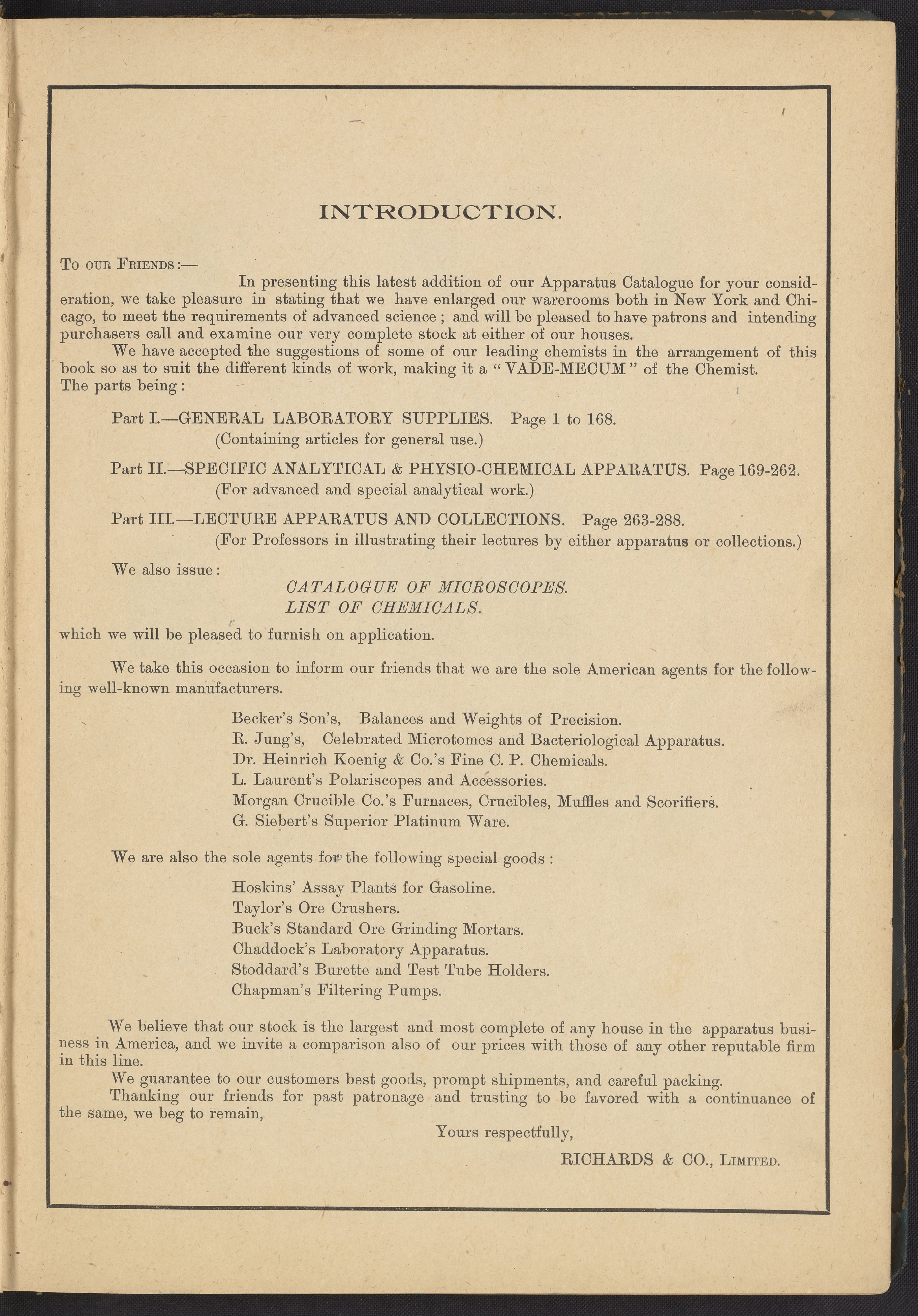 Illustrated Catalogue of Chemical and Physical Apparatus and Assay Goods, Manufactured and Imported by Richards & Co., Limited.