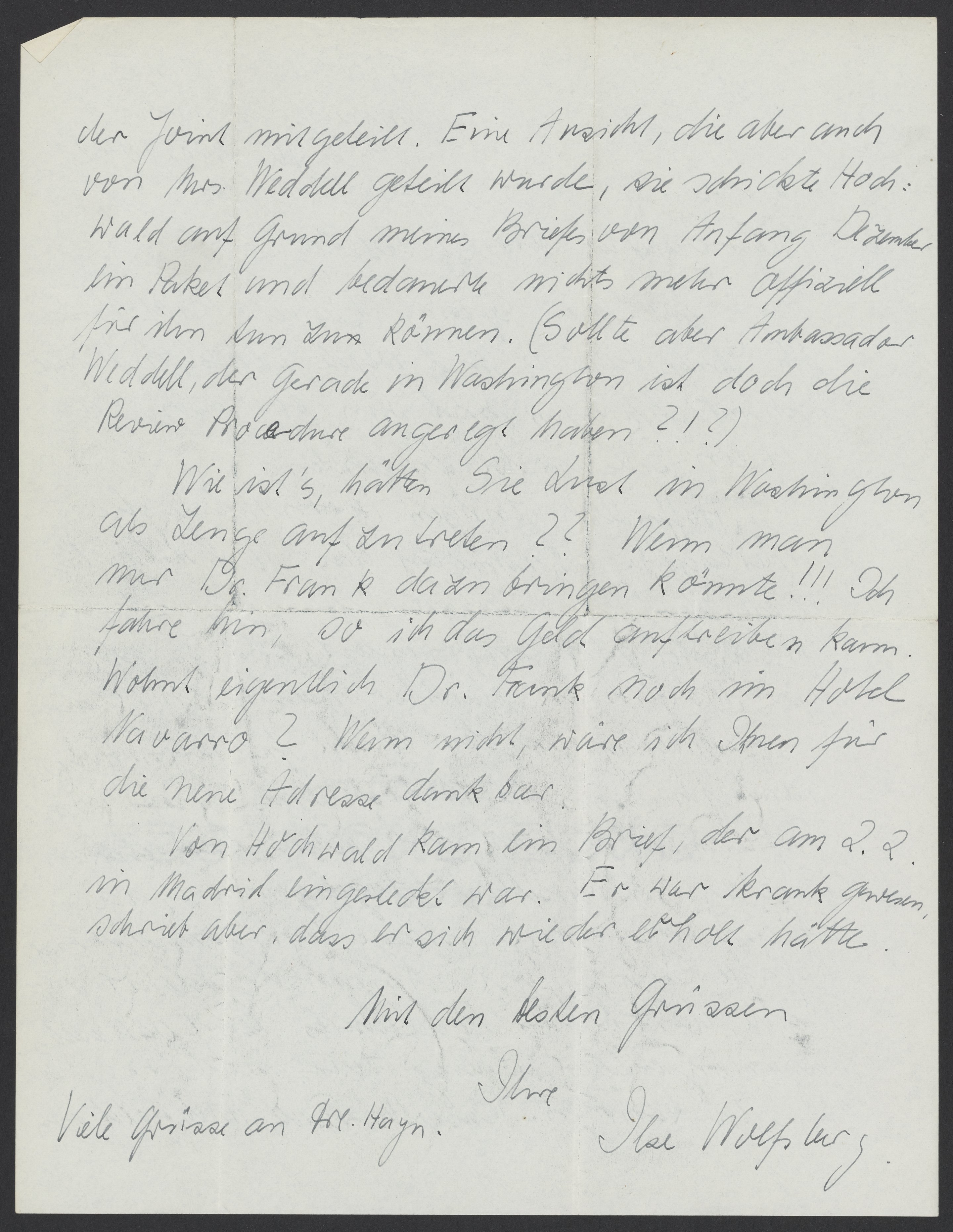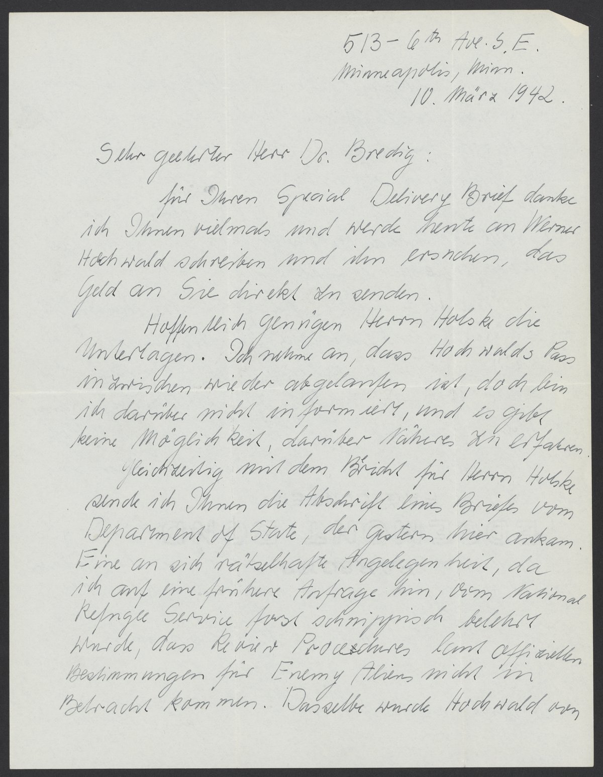 Letter from Ilse Wolfsberg to Max Bredig, March 10, 1942
