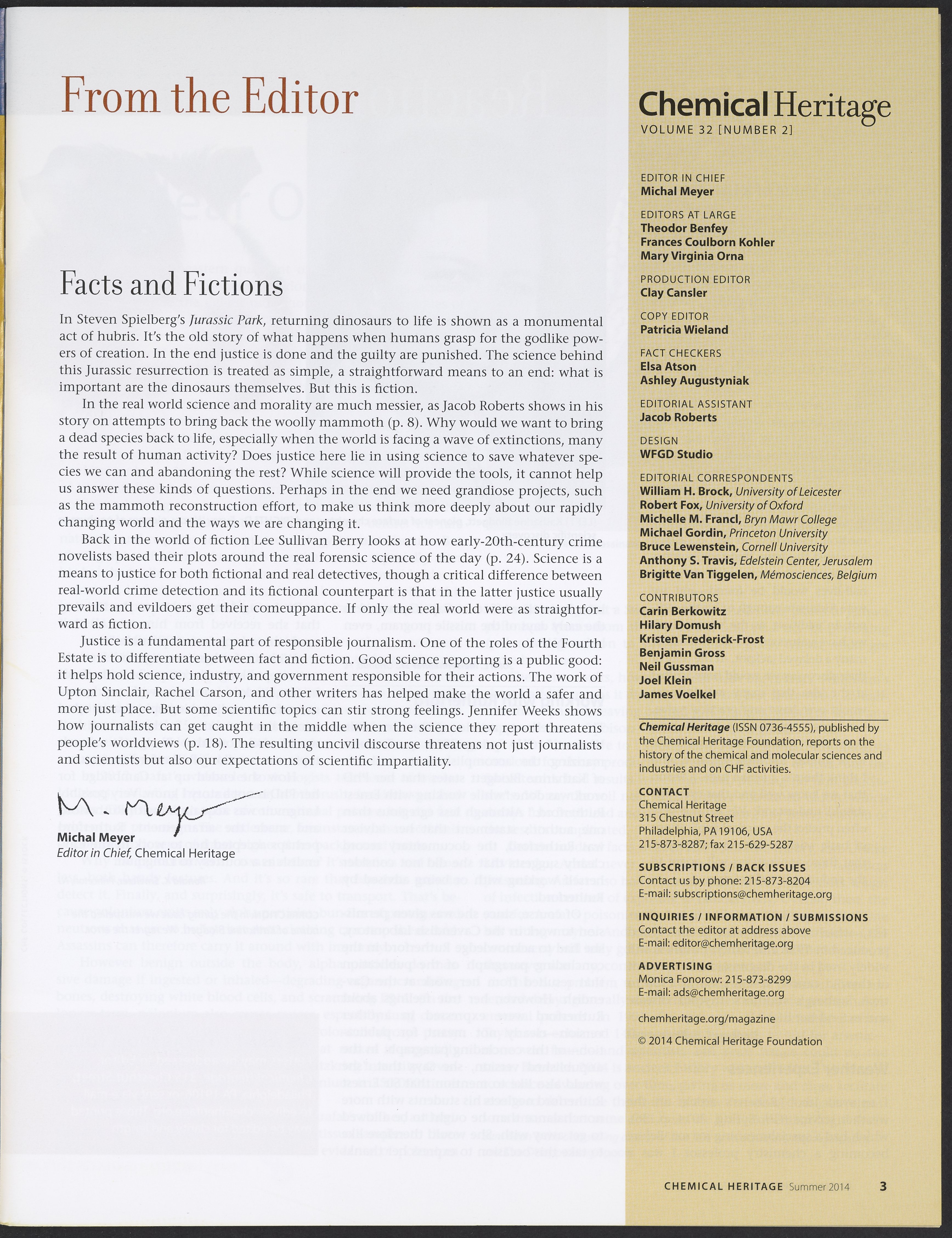 Chemical Heritage, Volume 32 Number 2