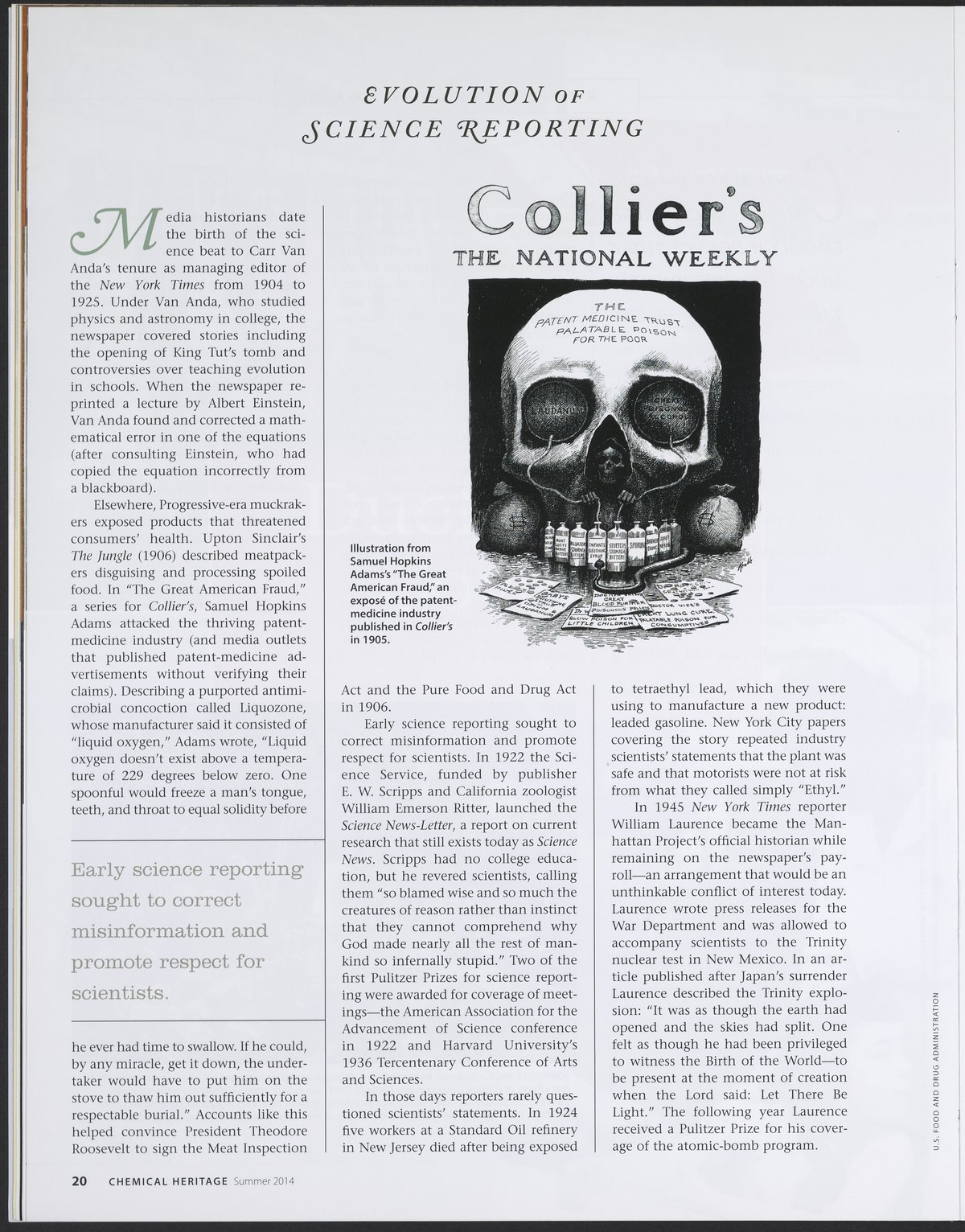 “Chemical Heritage, Volume 32 Number 2.” Philadelphia, Pennsylvania: Chemical Heritage Foundation, 2014. 099C001. Science History Institute. Philadelphia. https://digital.sciencehistory.org/works/j1jmhqy.