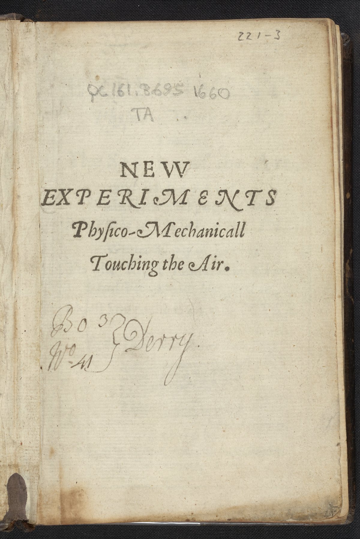 New Experiments Physico-Mechanicall, Touching the Spring of the Air, and its Effects (Made, for the Most Part, in a New Pneumatical Engine)