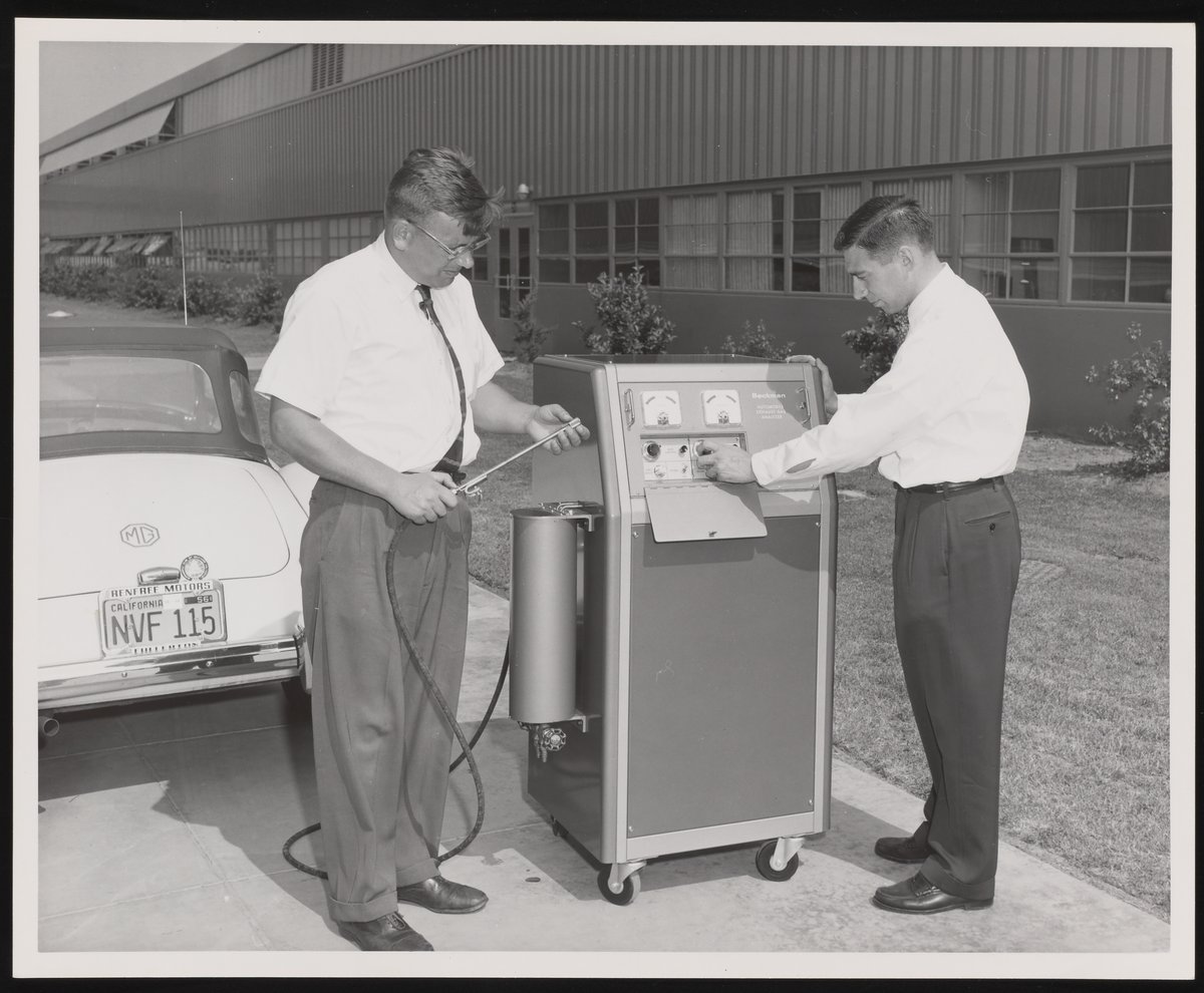 Beckman Instruments, Inc. became interested in measuring, controlling, and fighting air pollution in the late 1940s and early 1950s, when company president Arnold O. Beckman became the scientific adviser to the Los Angeles Chamber of Commerce’s Air Pollution Control Officer. Many of the instruments that were developed by Beckman Instruments in the 1940s and 1950s as standalone items became incorporated into or re-purposed as smog-fighting systems.