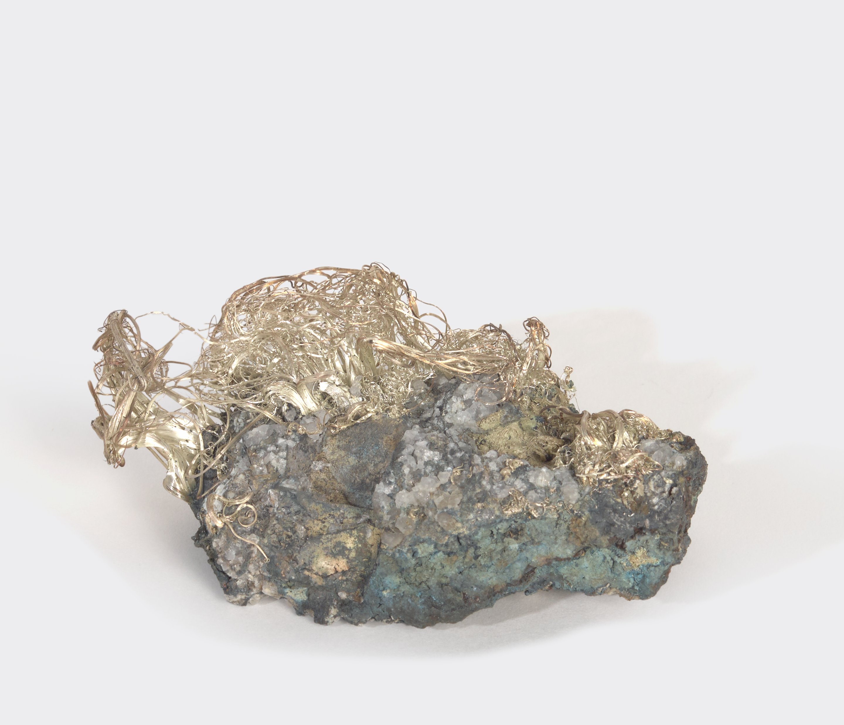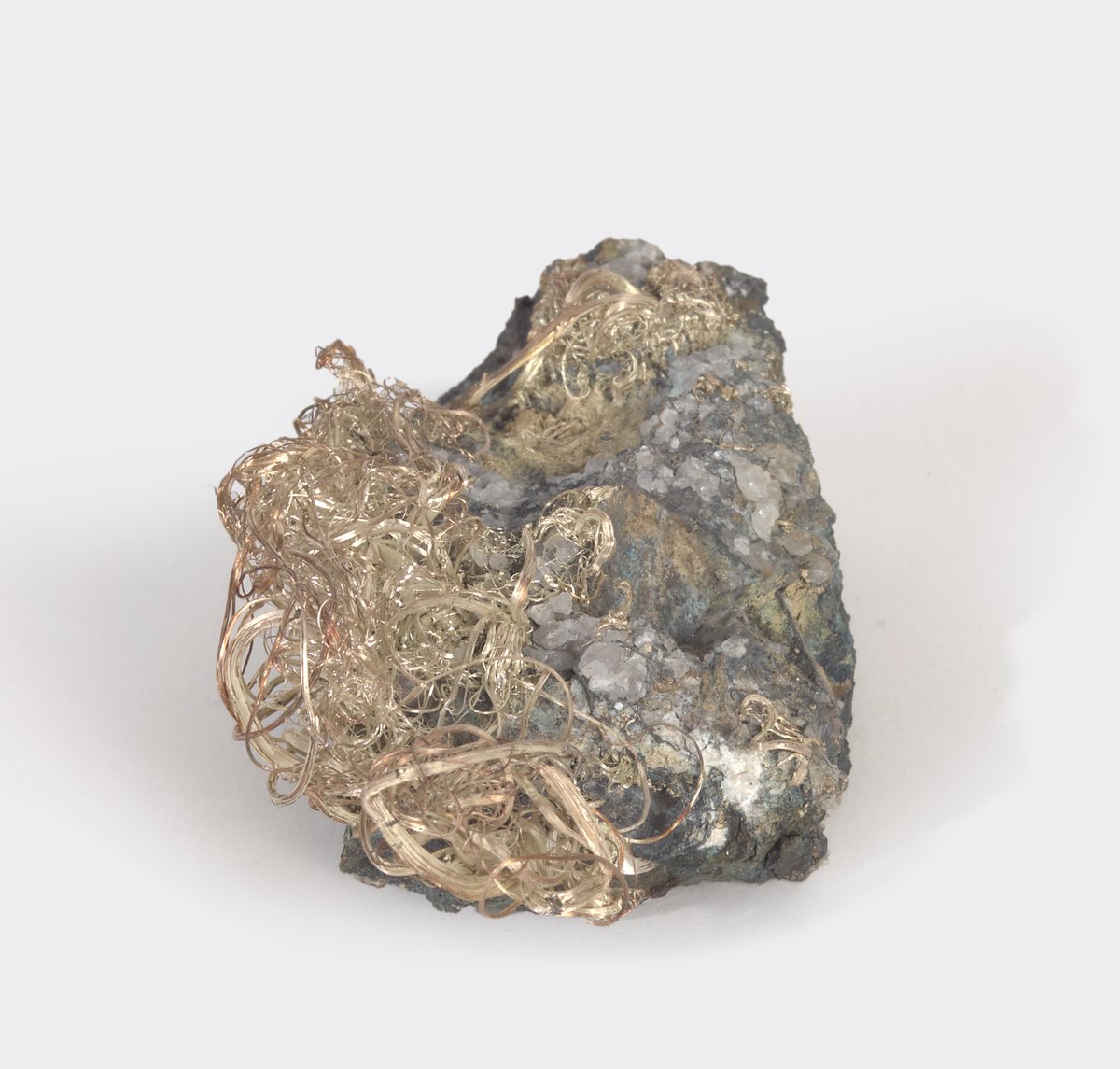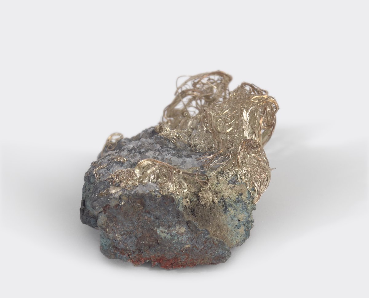 This specimen is an example of how native silver can form in strand-like formations. These formations are found in hydrothermal veins and are referred to as "wire silver" or "hair silver."