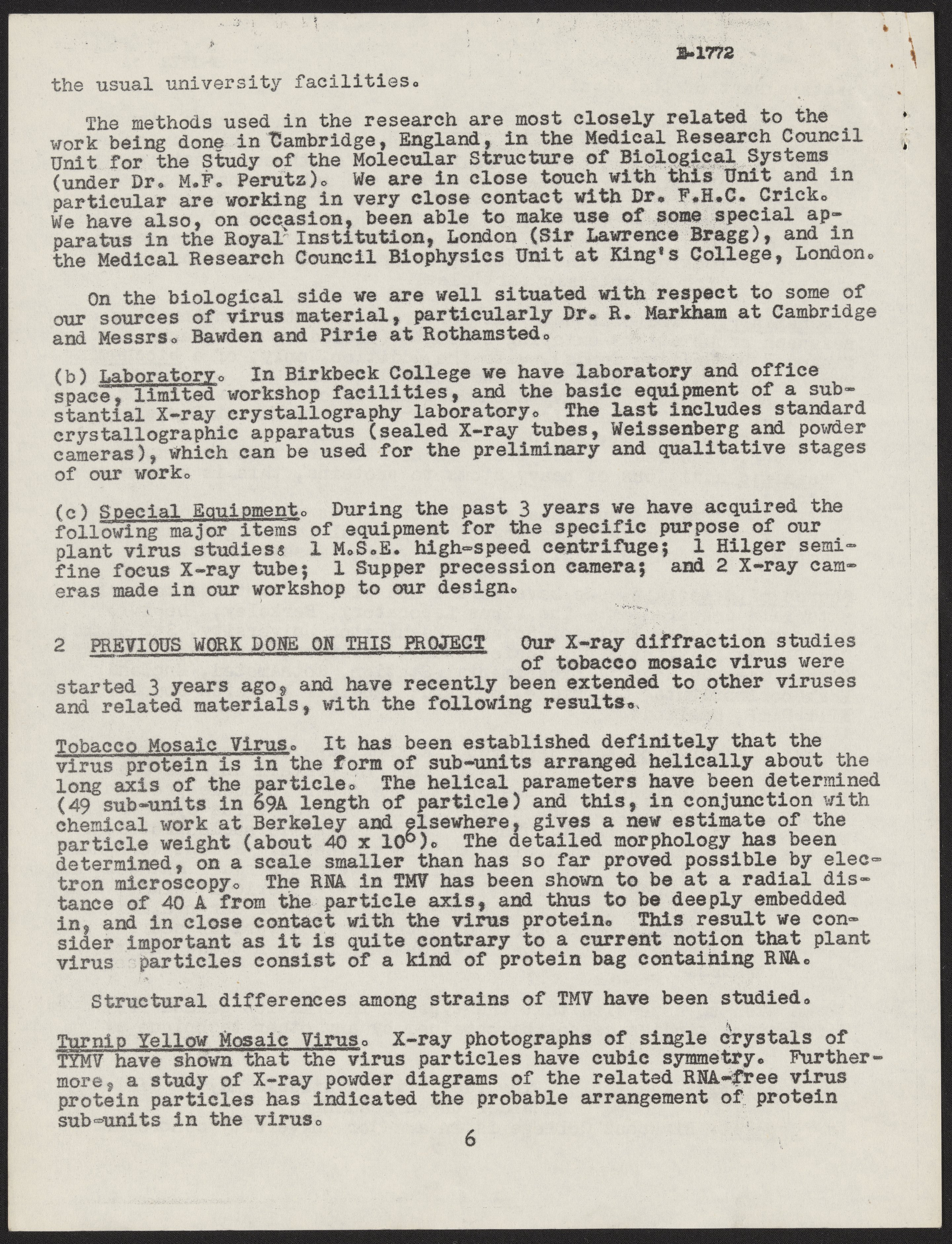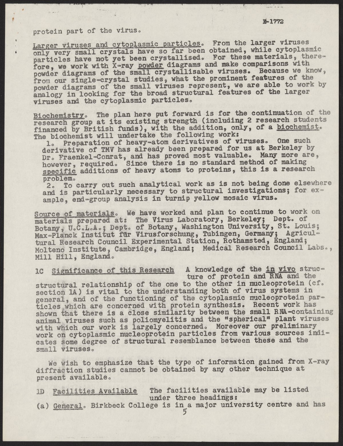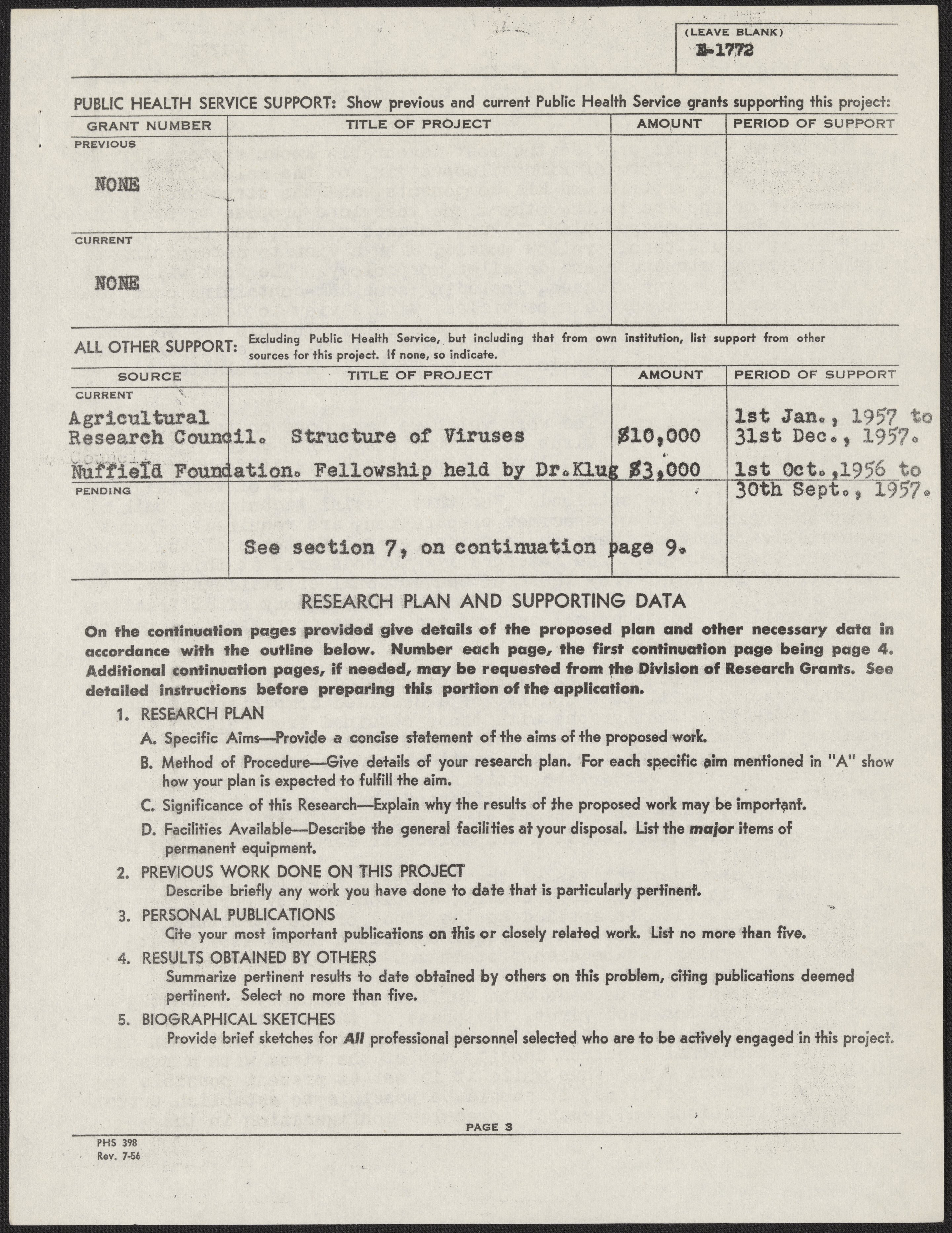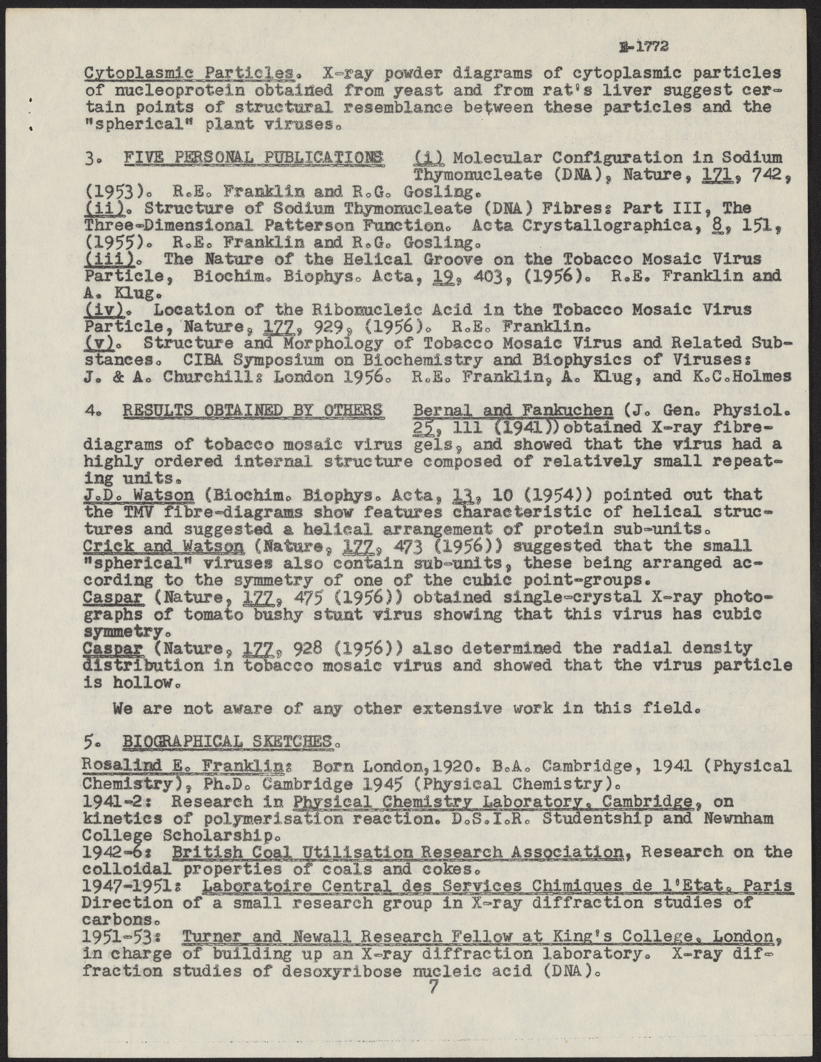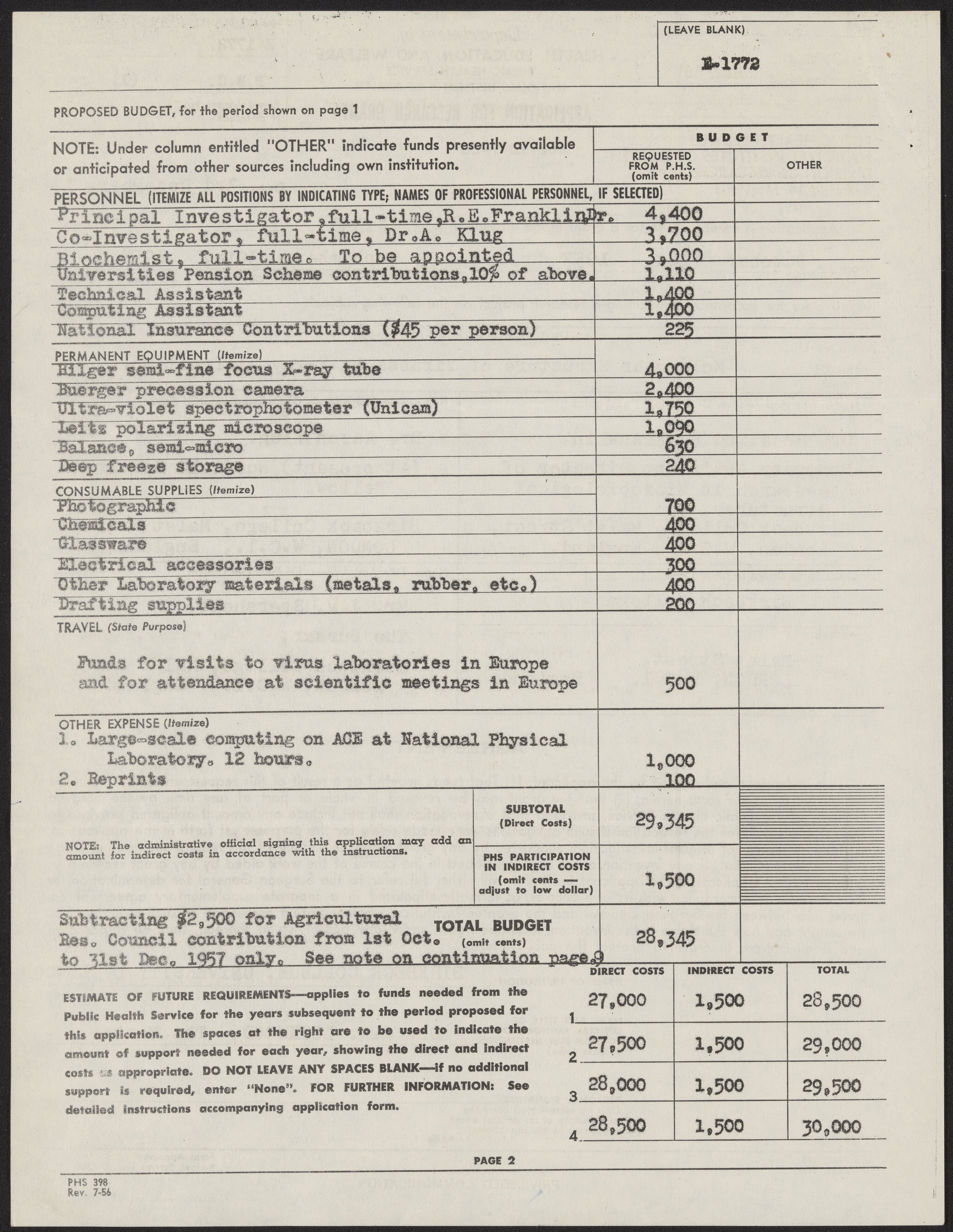 Franklin, Rosalind. “Grant Application to the National Institutes of Health,” 1956–1957. History of Molecular Biology Collection, Box 10, Folder 6. Science History Institute. Philadelphia. https://digital.sciencehistory.org/works/jl32vxp.