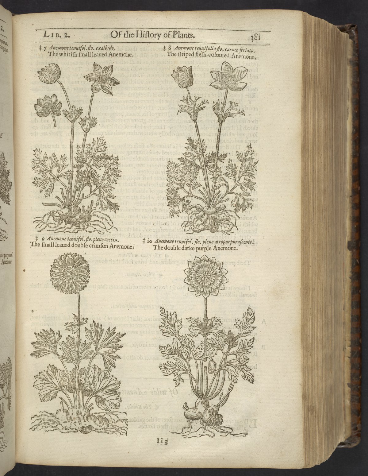 Gerard, John, Rembert Dodoens, and Iacobus Theodorus. “Various Floral Species of the Genus Anemone : White Small-Leaved, Striped Flesh-Colored, Small-Leaved Double Crimson, and Double Dark Purple Anemone.” In The Herball, or, Generall Historie of Plantes. London, England: Thomas Johnson, 1633. https://digital.sciencehistory.org/works/jloujx4.