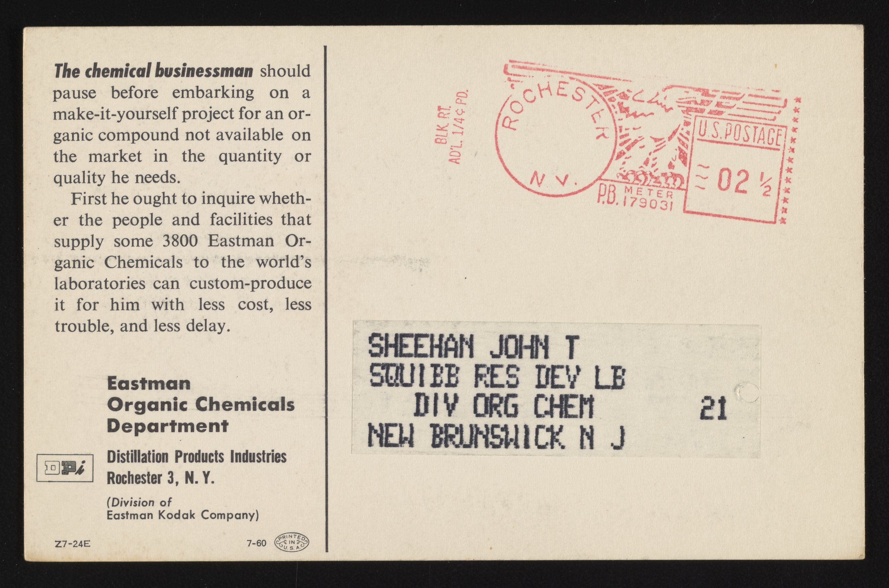 Eastman Kodak Company. “Sometimes It's Better to Let Eastman Make It.” Rochester, New York, 1950–1959. John C. Sheehan Collection of Chemical Advertisements, Box 1. Science History Institute. Philadelphia. https://digital.sciencehistory.org/works/jocpe3p.