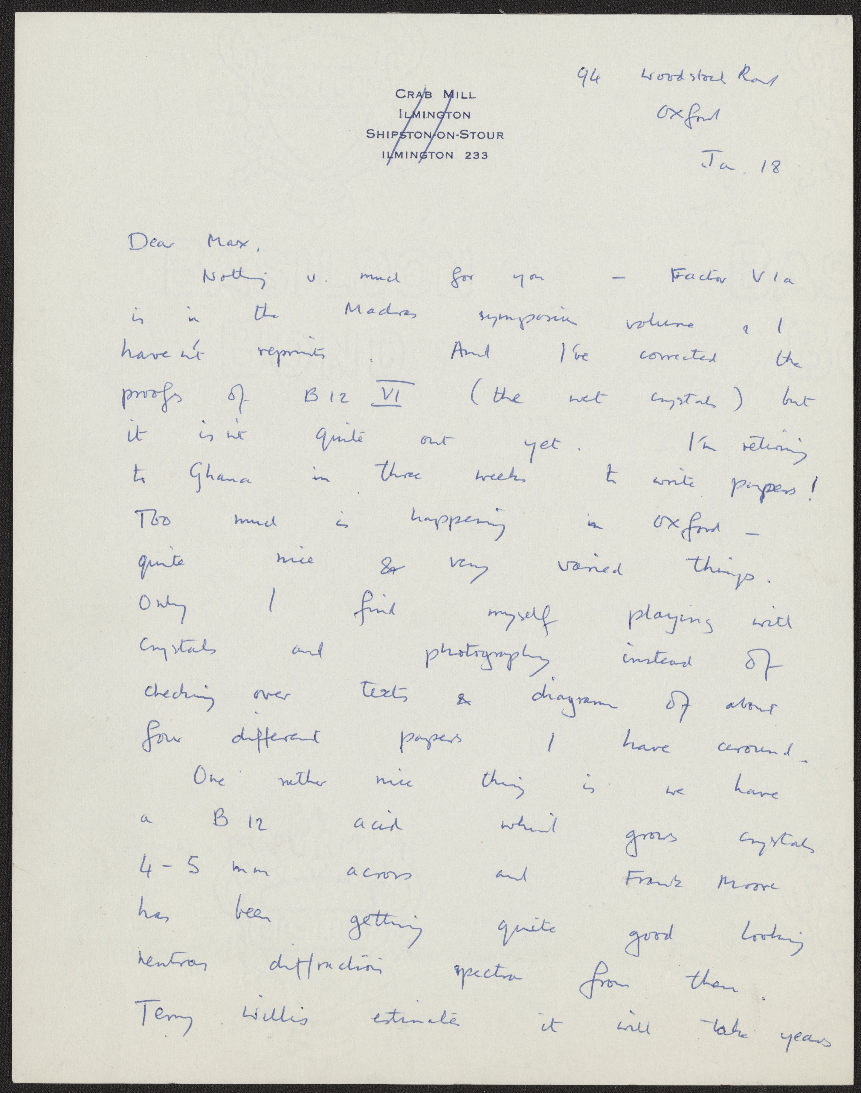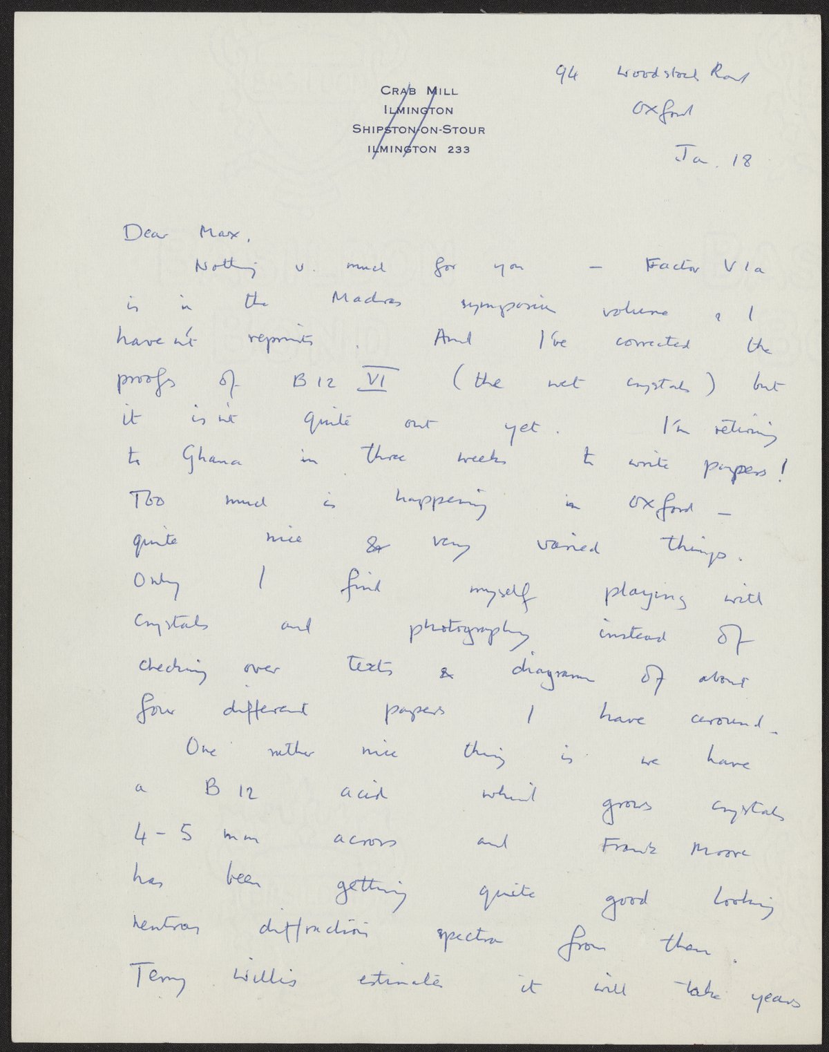 Letter from Dorothy Hodgkin to Max Perutz, January 18