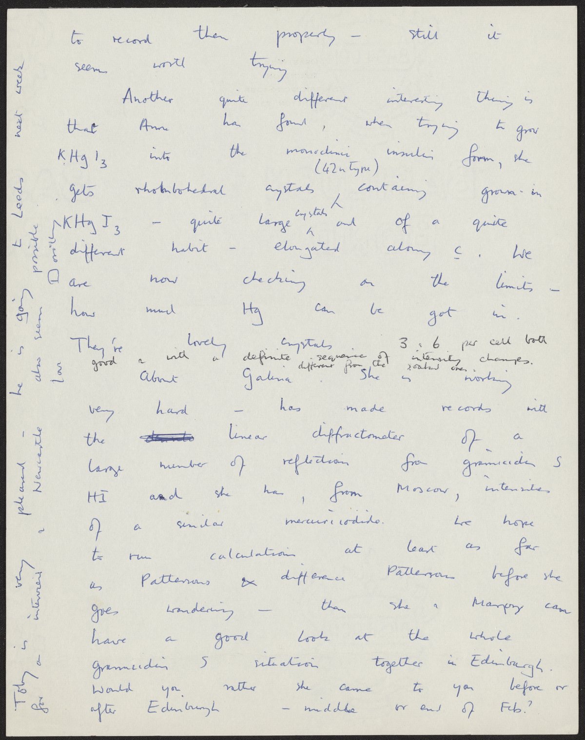 Hodgkin, Dorothy. “Letter from Dorothy Hodgkin to Max Perutz, January 18,” 1960–1969. History of Molecular Biology Collection, Box 76, Folder 5. Science History Institute. Philadelphia. https://digital.sciencehistory.org/works/jpt88db.