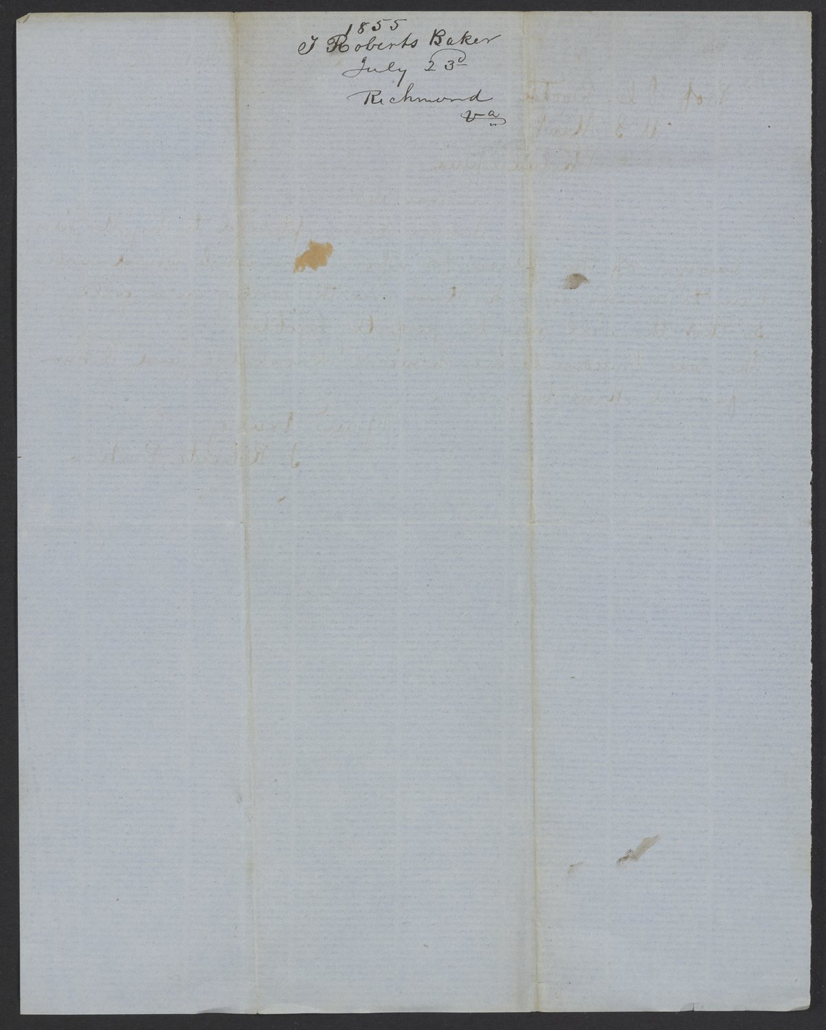 Letter from T. Roberts Baker to James Curtis Booth, July 23, 1855
