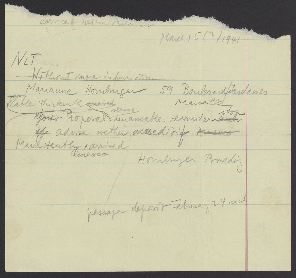 Homburger, Marianne, and Viktor Homburger. “Copy of a Telegram from Marianne and Viktor Homburger, March 14, 1941,” March 14, 1941. Papers of Georg and Max Bredig, Box 7, Folder 24. Science History Institute. Philadelphia. https://digital.sciencehistory.org/works/jtaebvl.