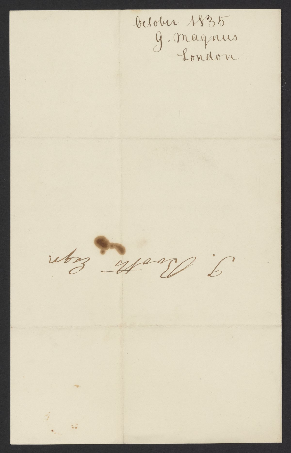 Letter from Professor Gustav Magnus to James Curtis Booth, October 1825