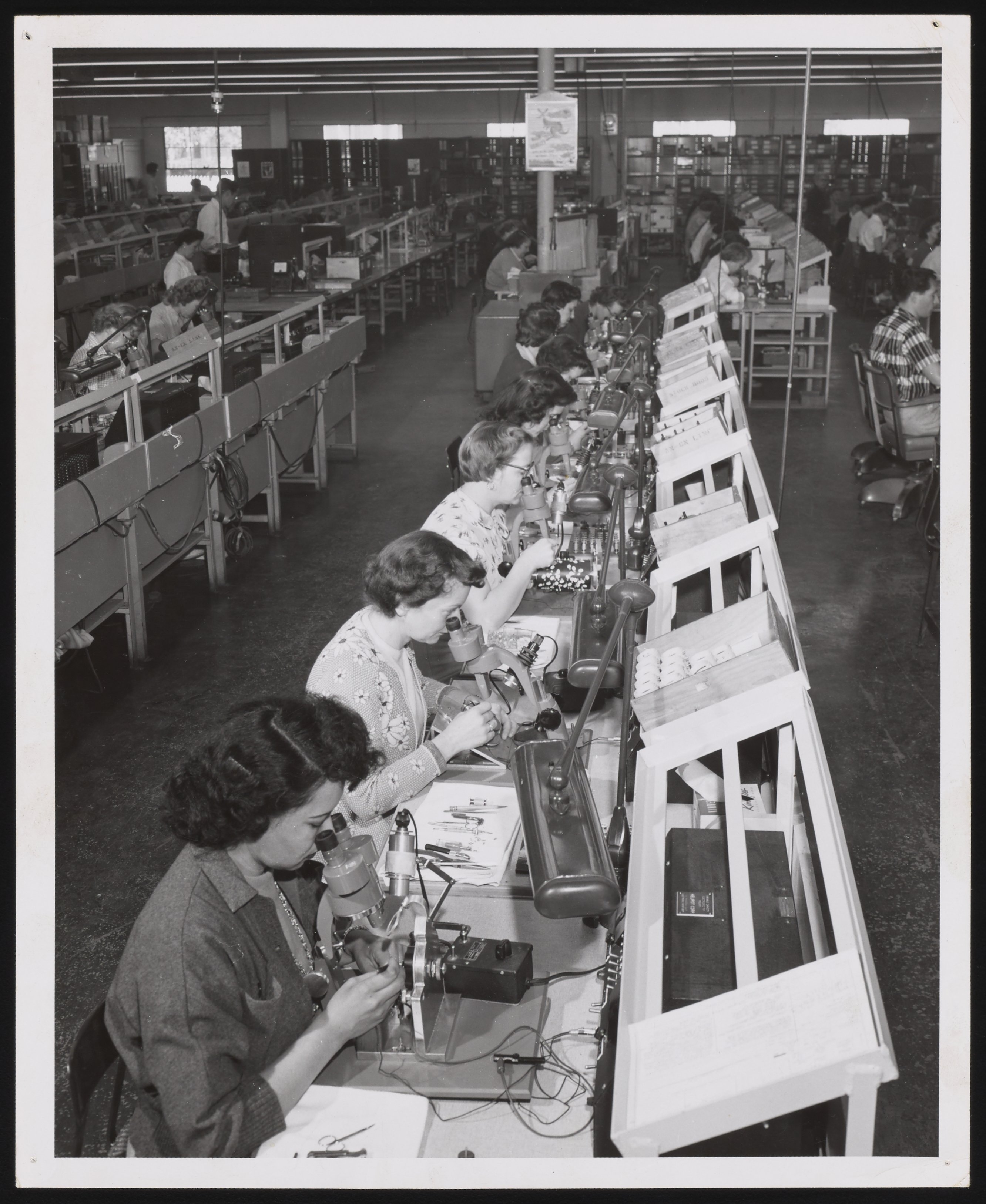“Workshop in an Unidentified Beckman Instruments Plant,” 1950–1959. Beckman Historical Collection, Box 56, Folder 20. Science History Institute. Philadelphia. https://digital.sciencehistory.org/works/k0698755v.