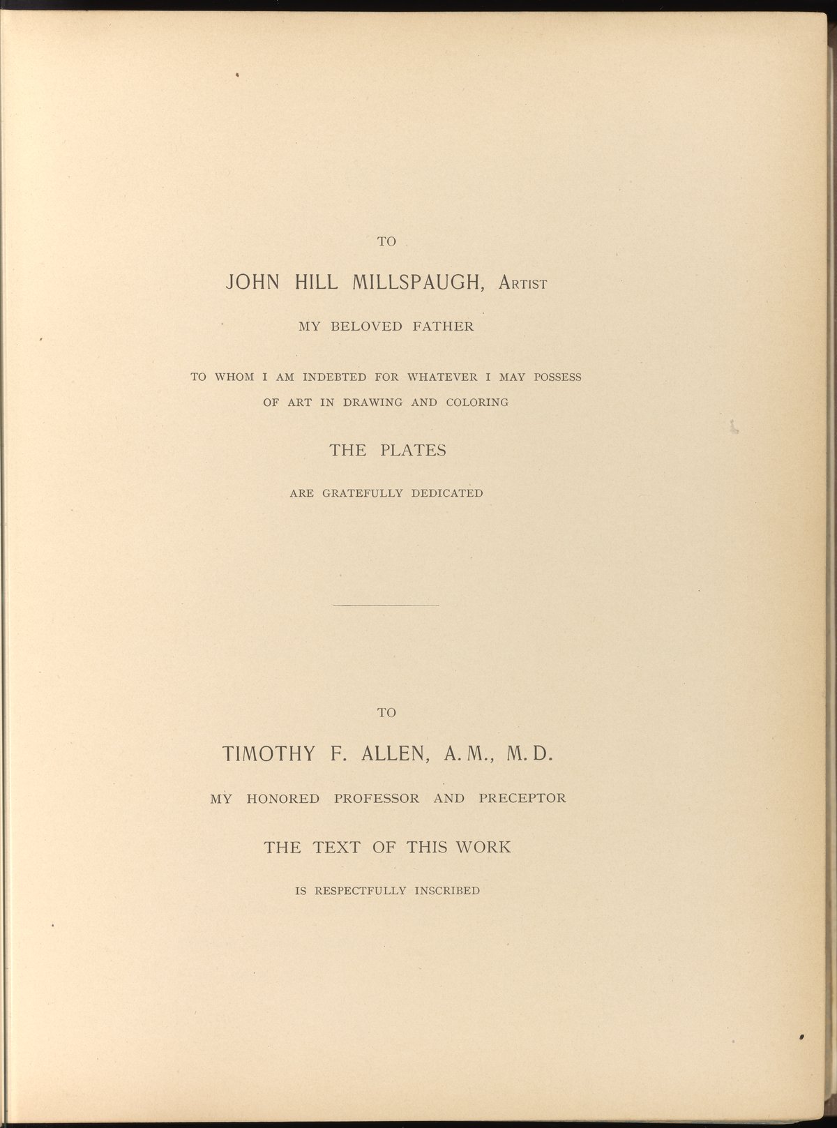 The work's author, Charles Frederick Millspaugh (1854-1923), was an American physician and botanist. While practicing medicine in the early 1880s, Millspaugh developed a keen interest in plants. This interest led him to publish American Medicinal Plants in 1887 and later, to become a professor of botany at West Virginia University in 1891. By 1894, Millspaugh was appointed as the first curator of botany at the Field Museum in Chicago, a position he held until his death in 1923. From 1897 to 1923 he was also a professor of medical botany at the Chicago Homeopathic Medical College and lectured on botany at the University of Chicago.